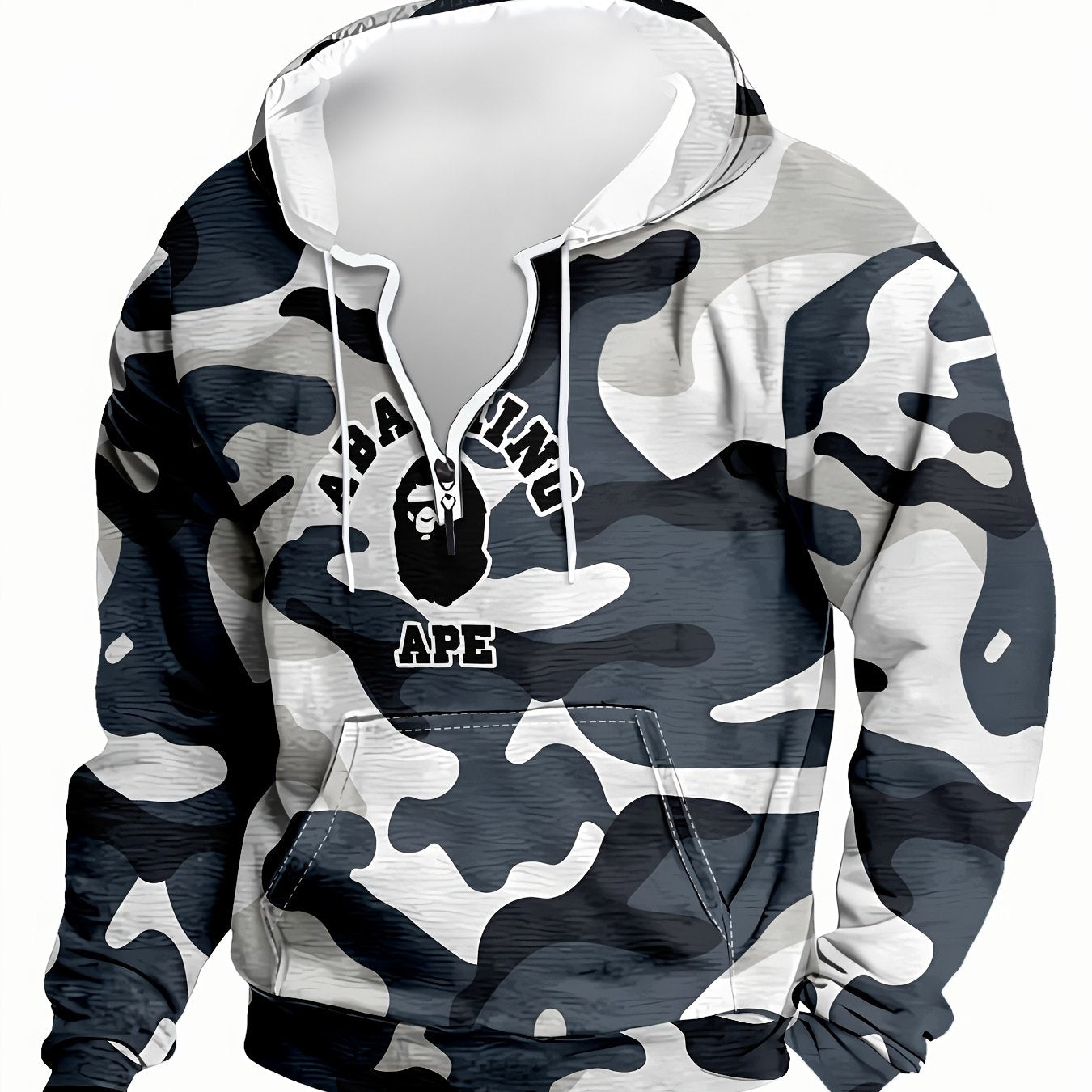 Gray Camo Hoodie with Zipper for Men | Casual Pullover Hooded Sweatshirt