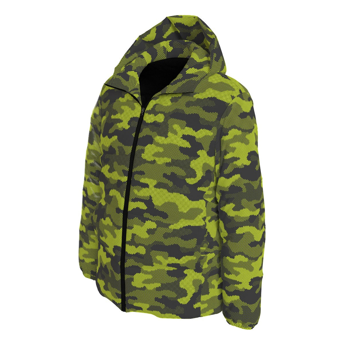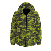 Green Down Jacket | Dotted Camo Hooded Puffer