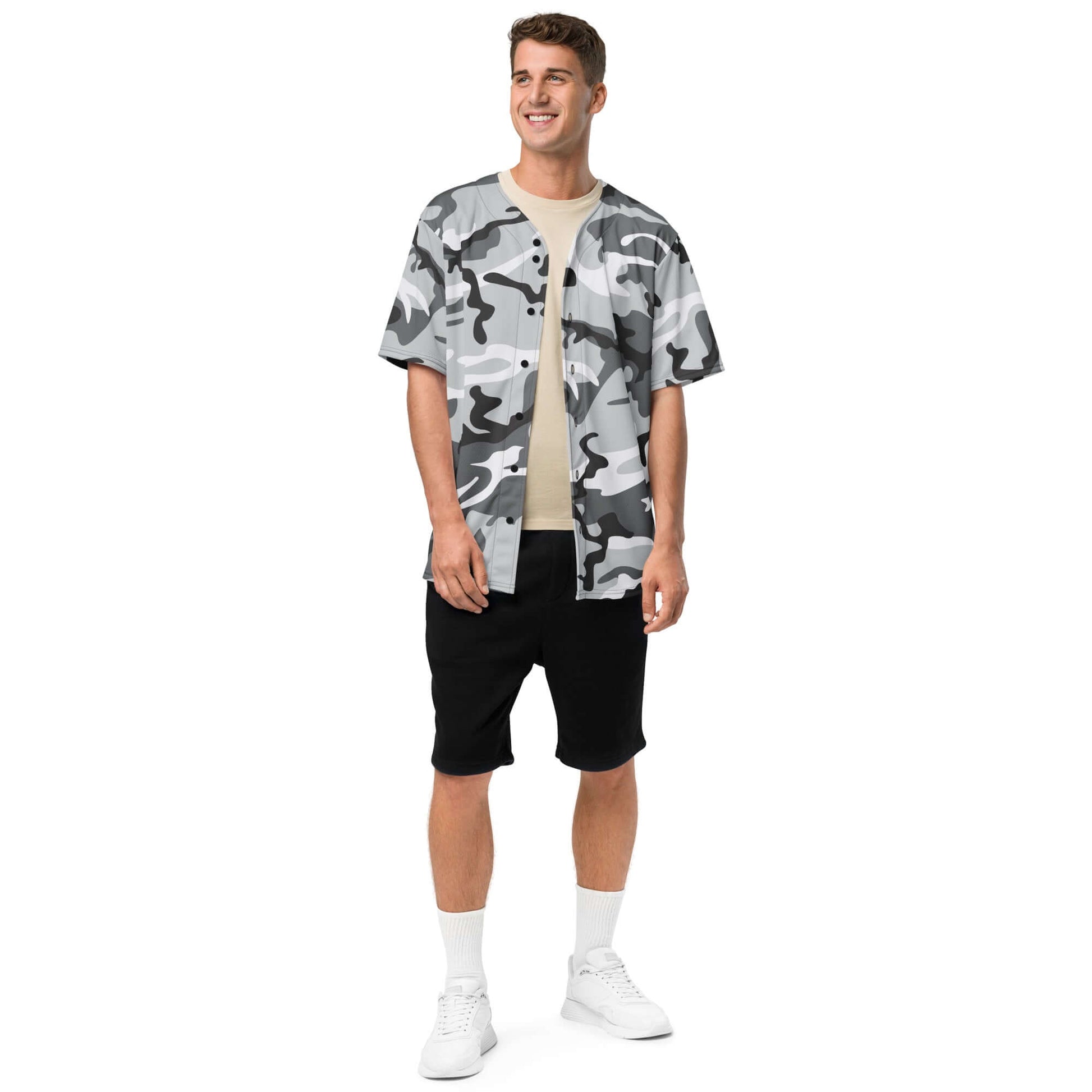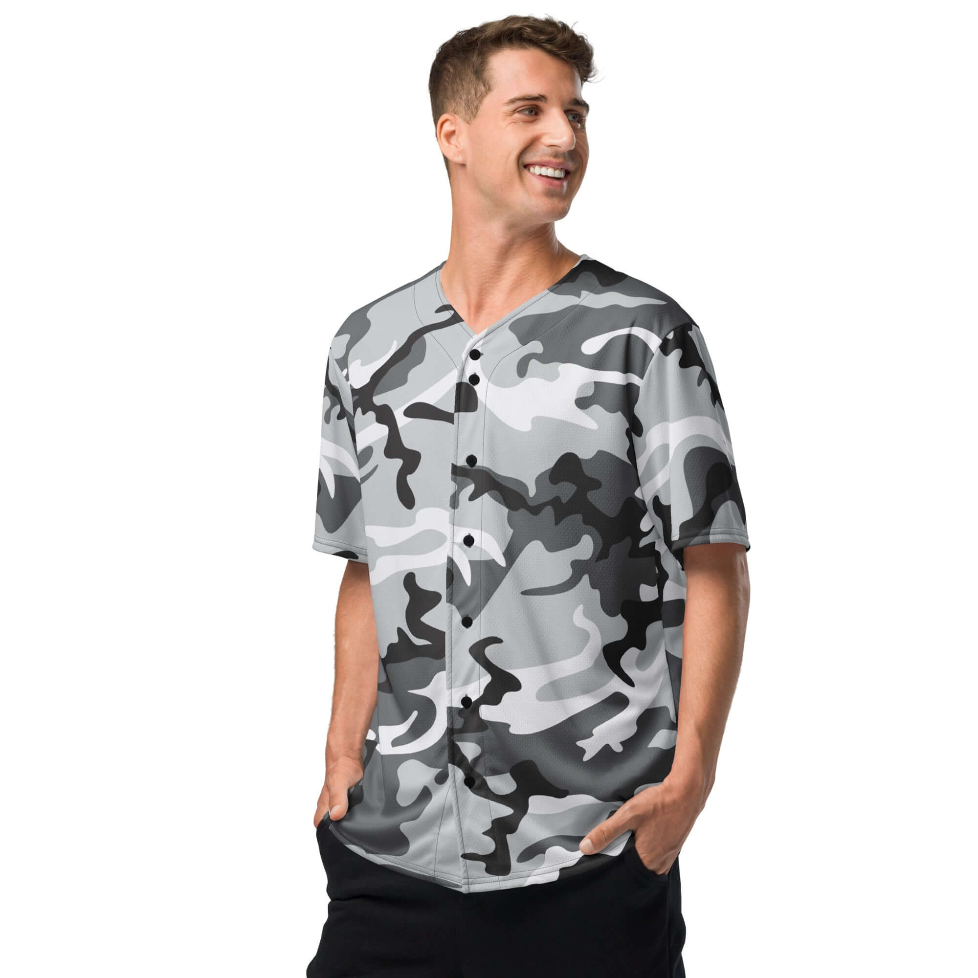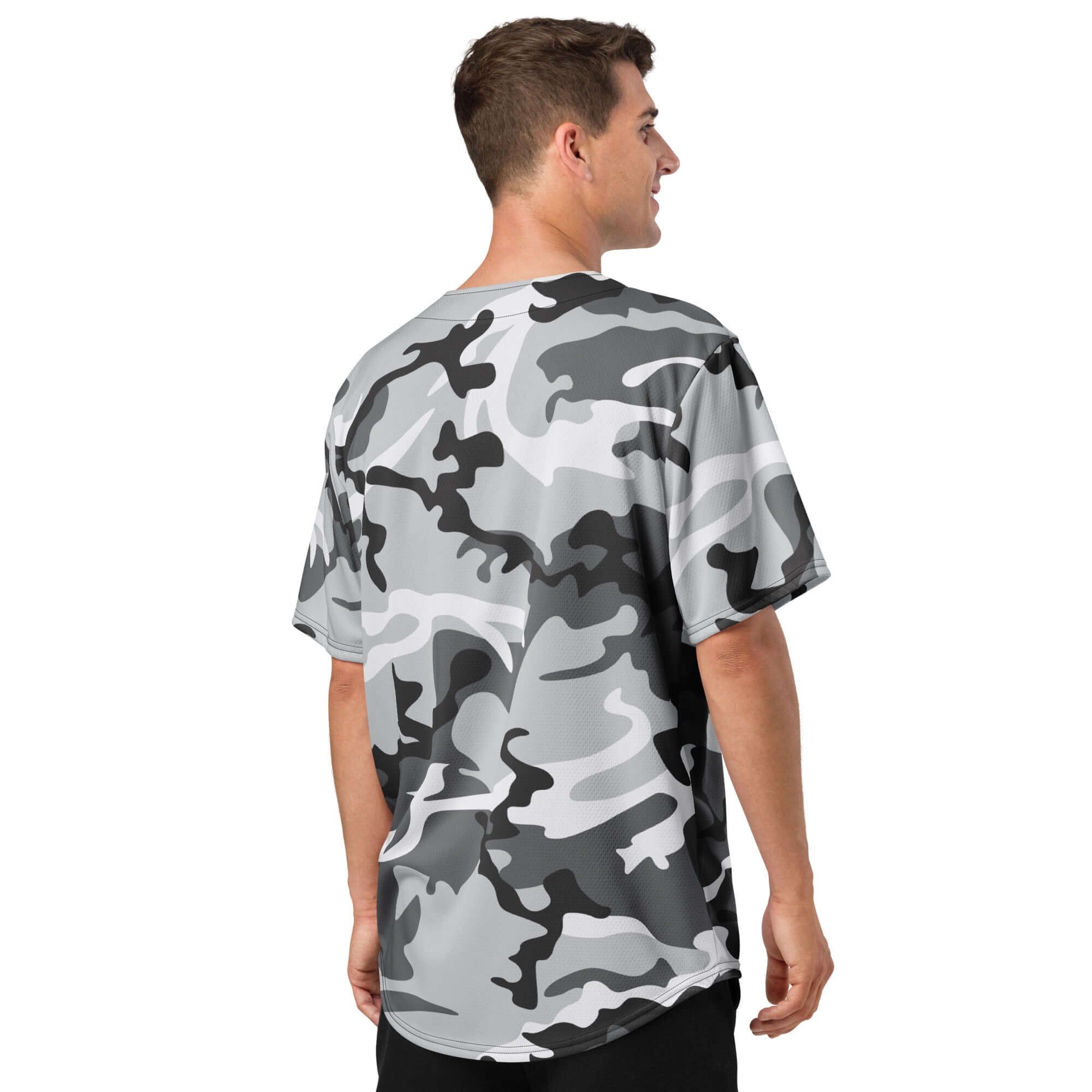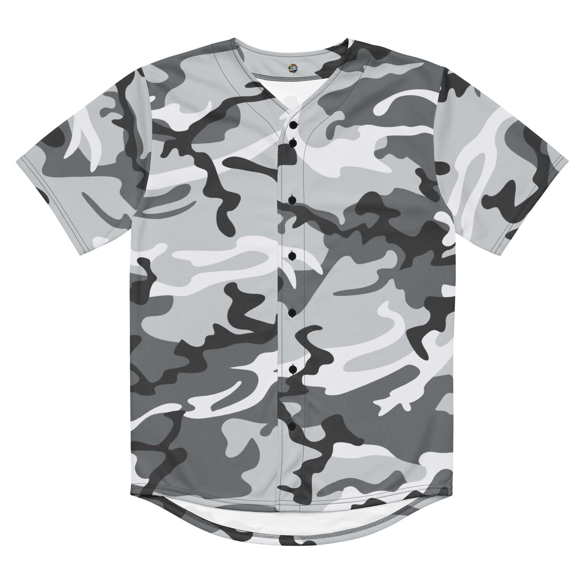 Grey White Camo Print Baseball Jersey