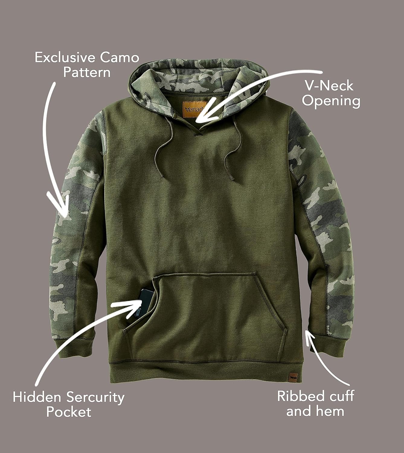 Heavyweight Camo Hoodie for Men | Hidden Pocket | V-Neck