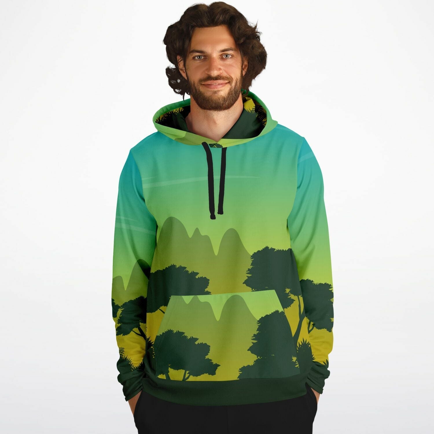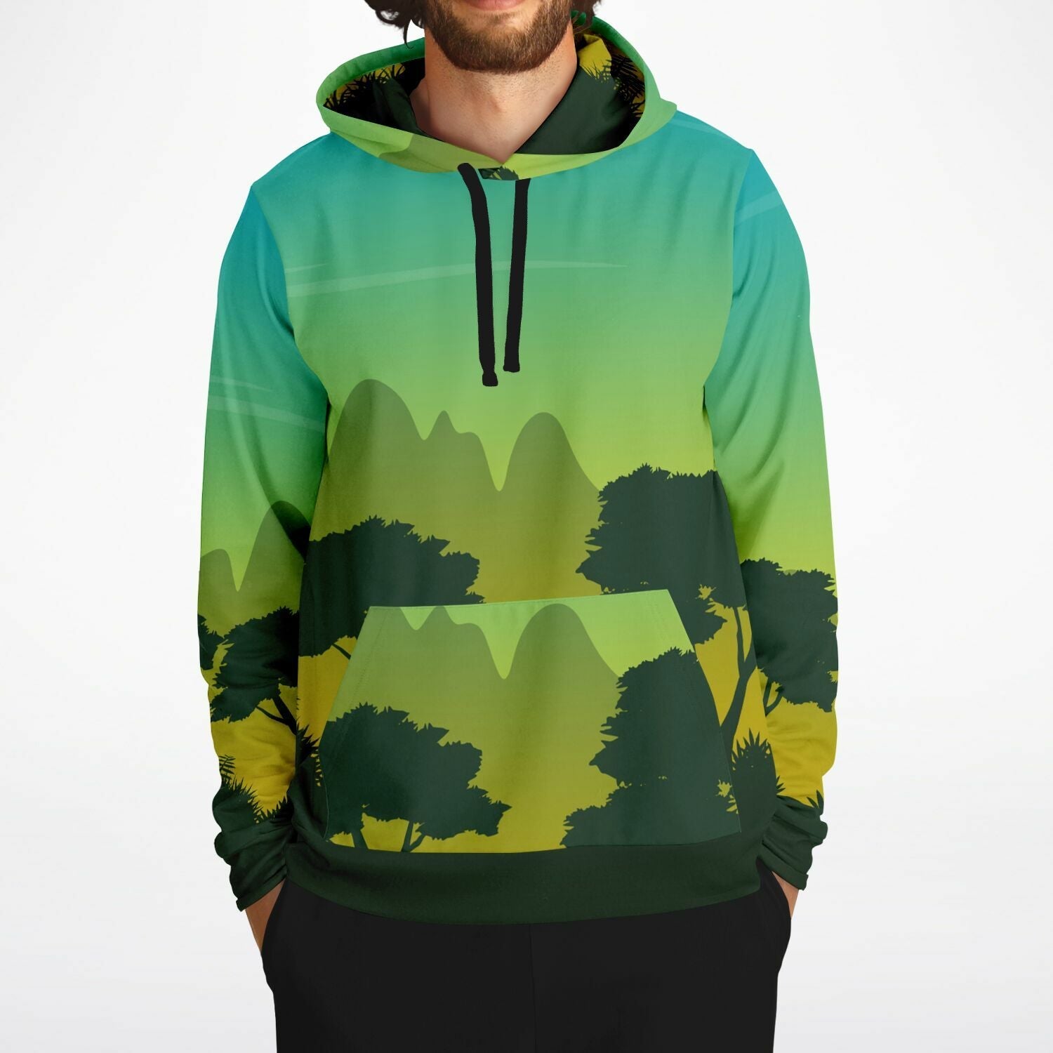 Elevate your style with our Jungle Forest Hoodie featuring a stunning Sunset Beauty design in Yellow and Blue. Made with high-quality materials, this hoodie provides both comfort and fashion for a truly unique look. Perfect for any outdoor adventure or casual day out.
