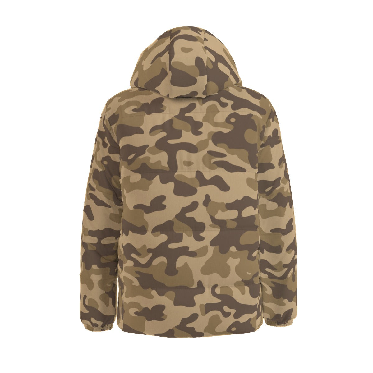 Khaki Down Jacket | Classic Sand Camo Hooded Puffer