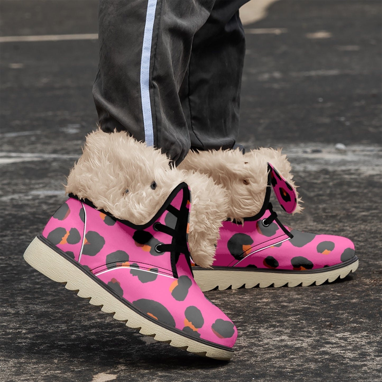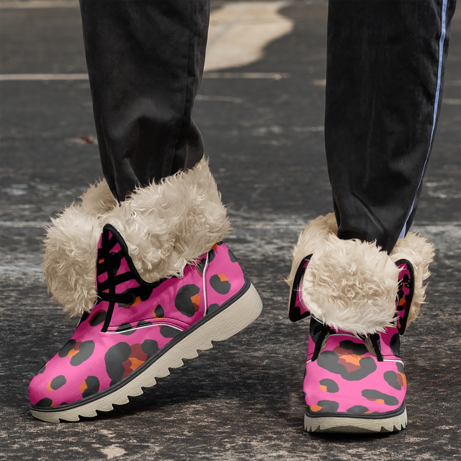 Leopard Boots | Cotton-Pad Fur Lining | Pink, Orange & Black