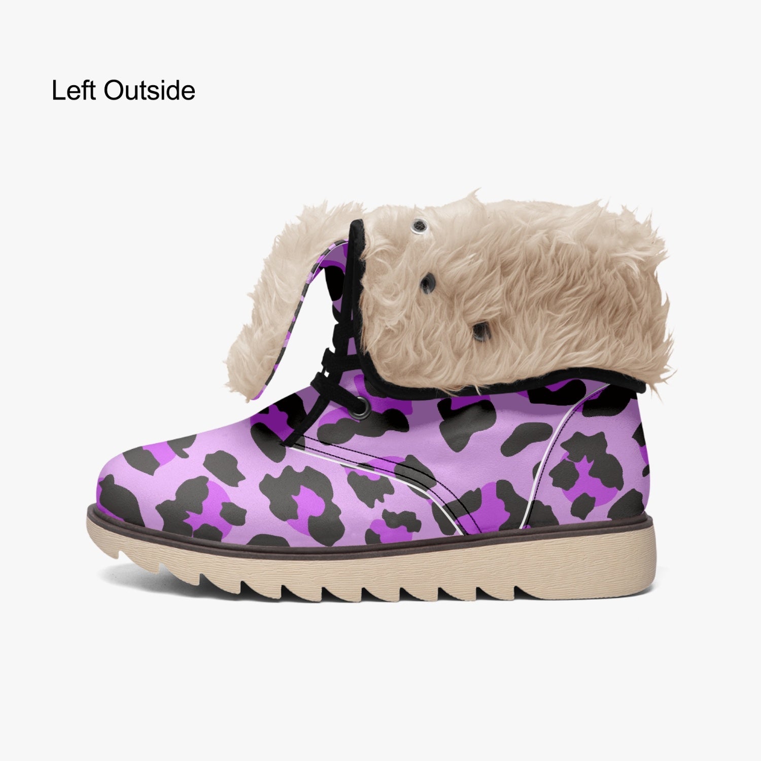 Leopard Boots | Cotton-Pad Fur Lining | Purple, Blue and Black