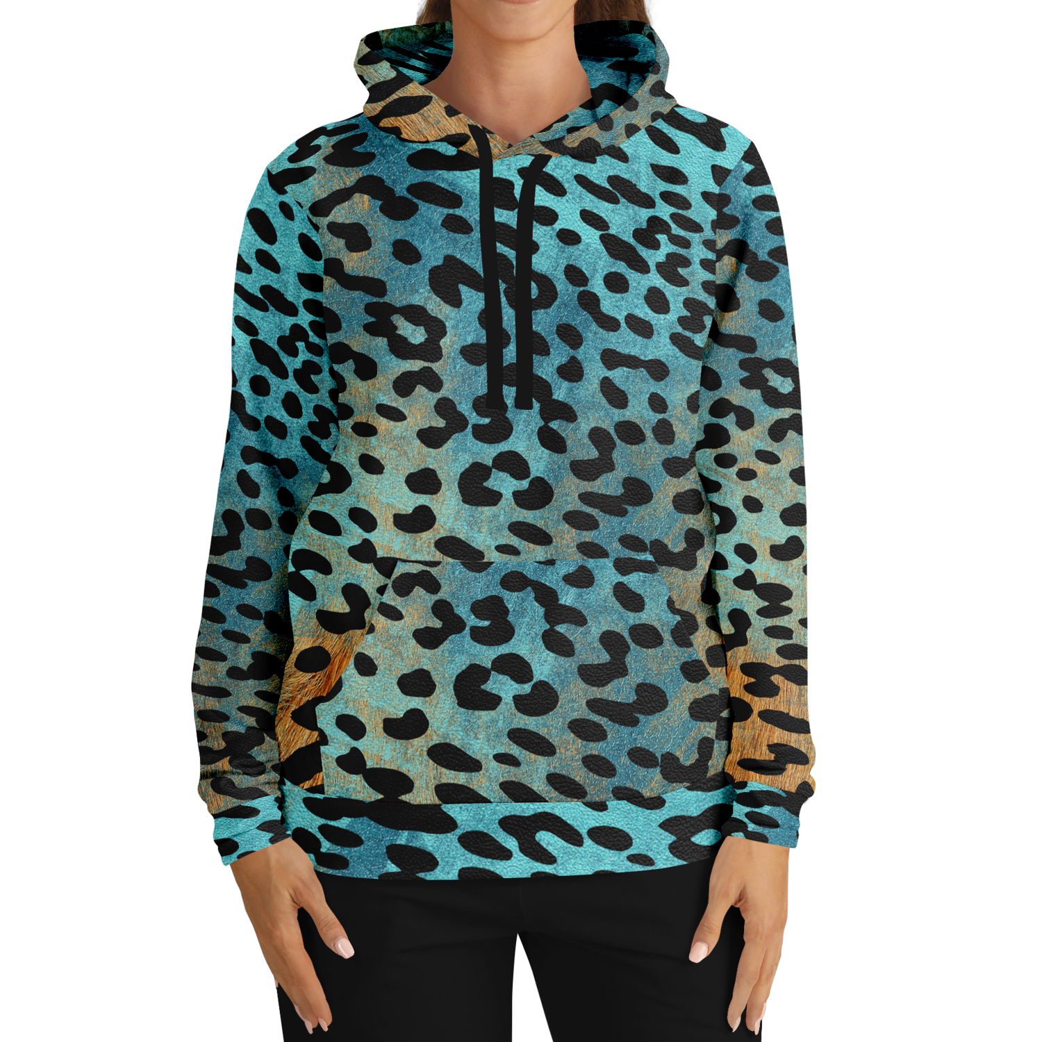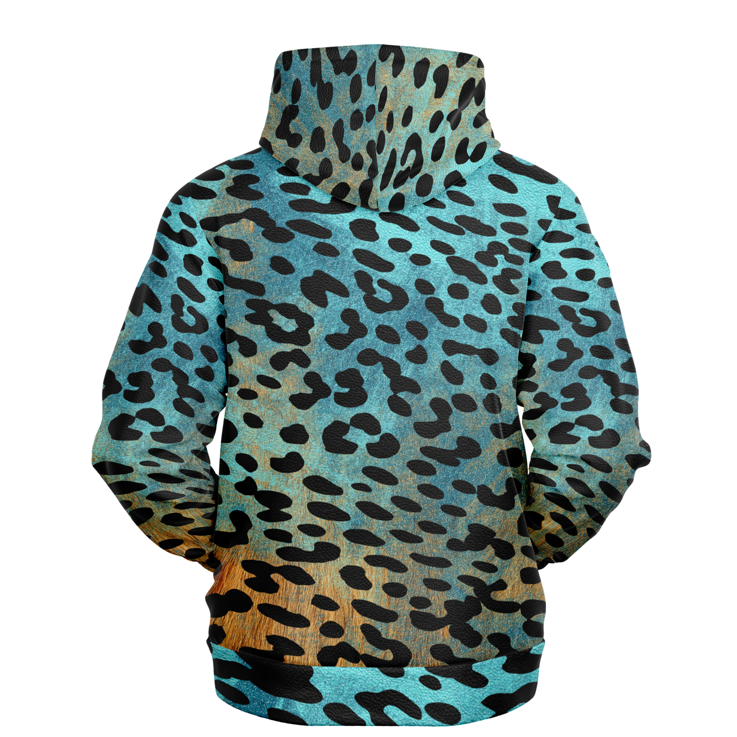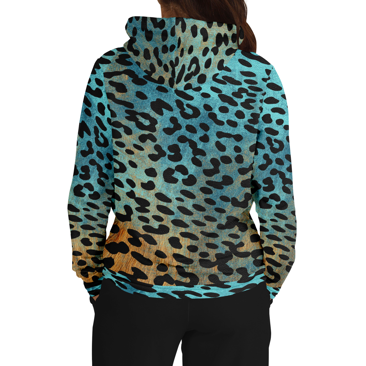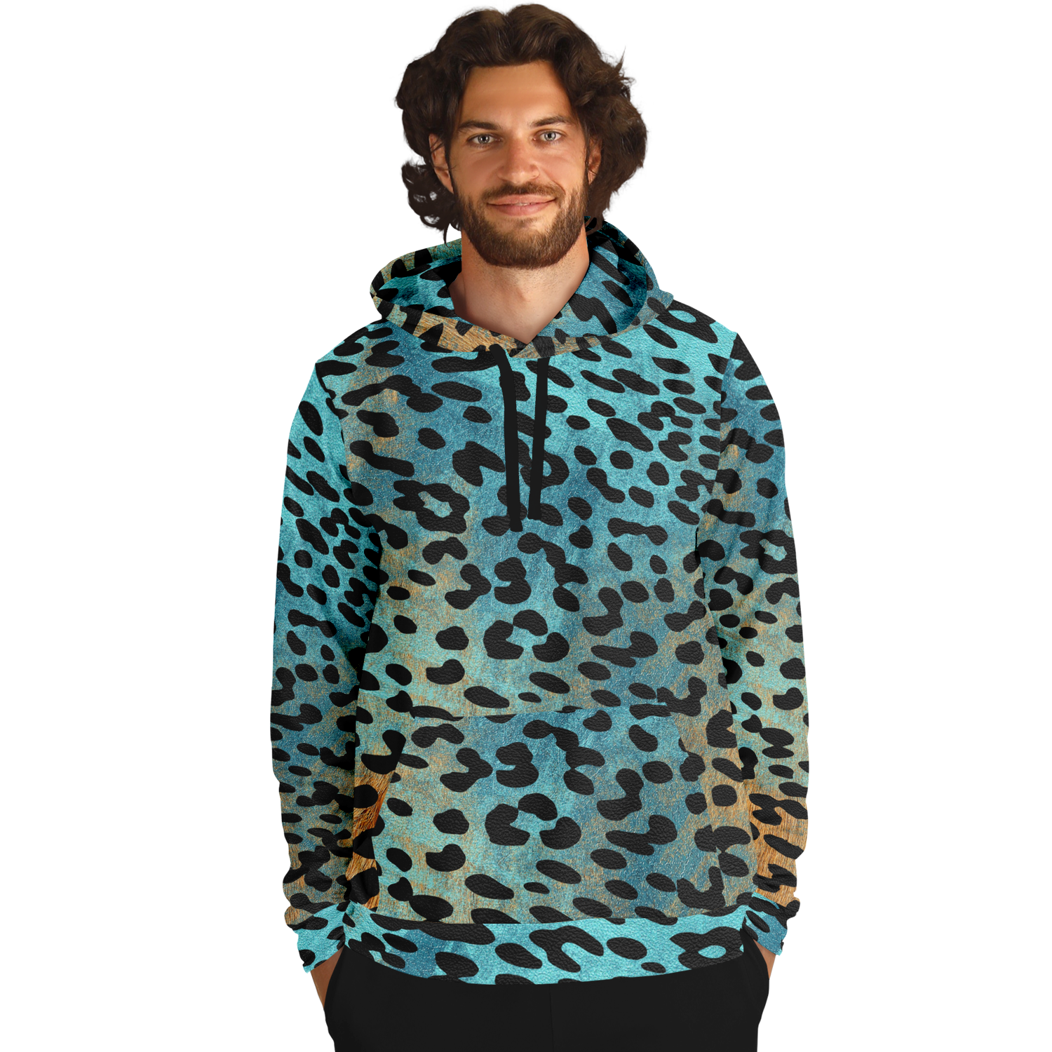 This leopard hoodie features a unique blue and orange safari pattern, perfect for the fashion-forward individual. The soft material and comfortable fit provide both style and comfort while adding a touch of adventure to any outfit.