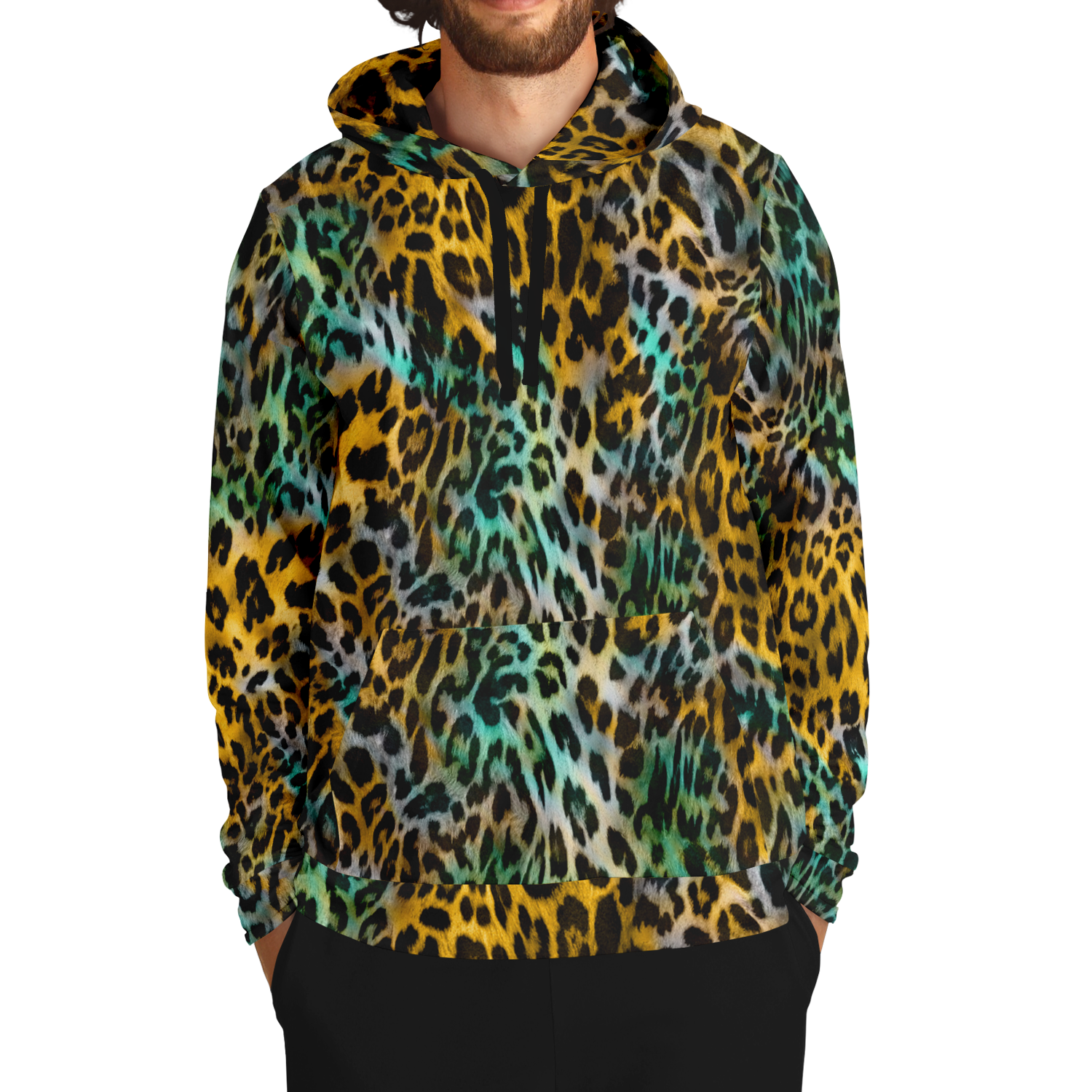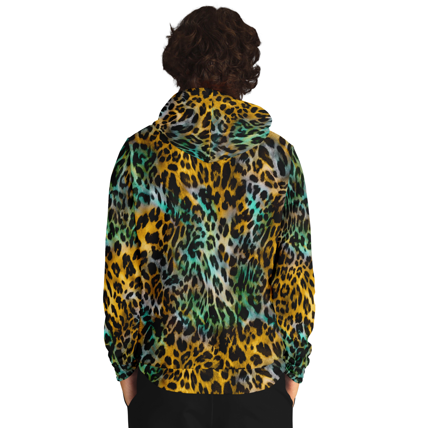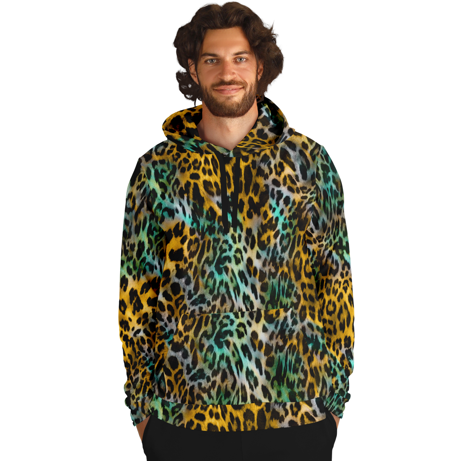 Stay warm and stylish with our Leopard Hoodie in a unique Yellow and Blue Abstract Pattern. Made with cozy material, it's perfect for chilly days. Show off your wild side and make a statement with this bold piece.
