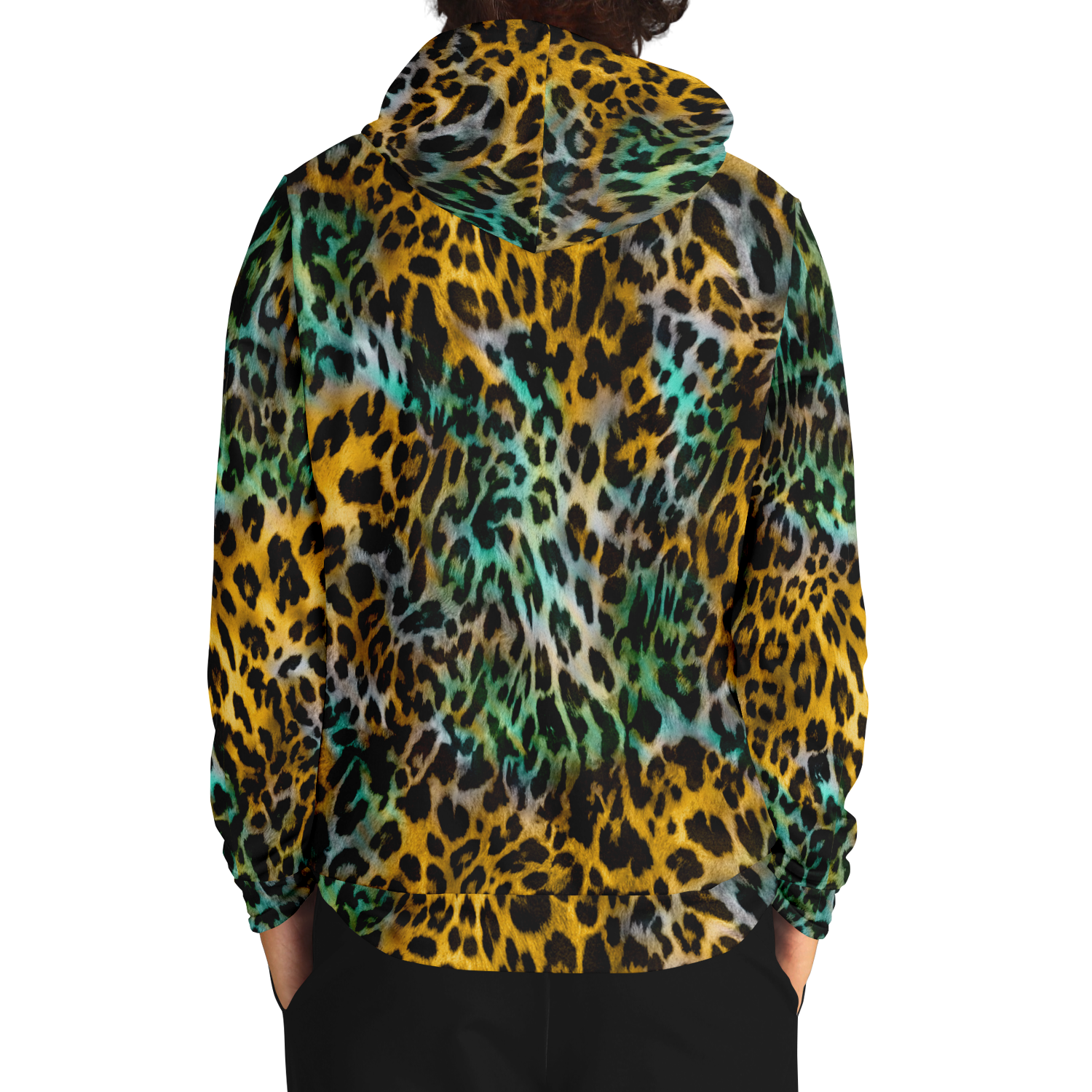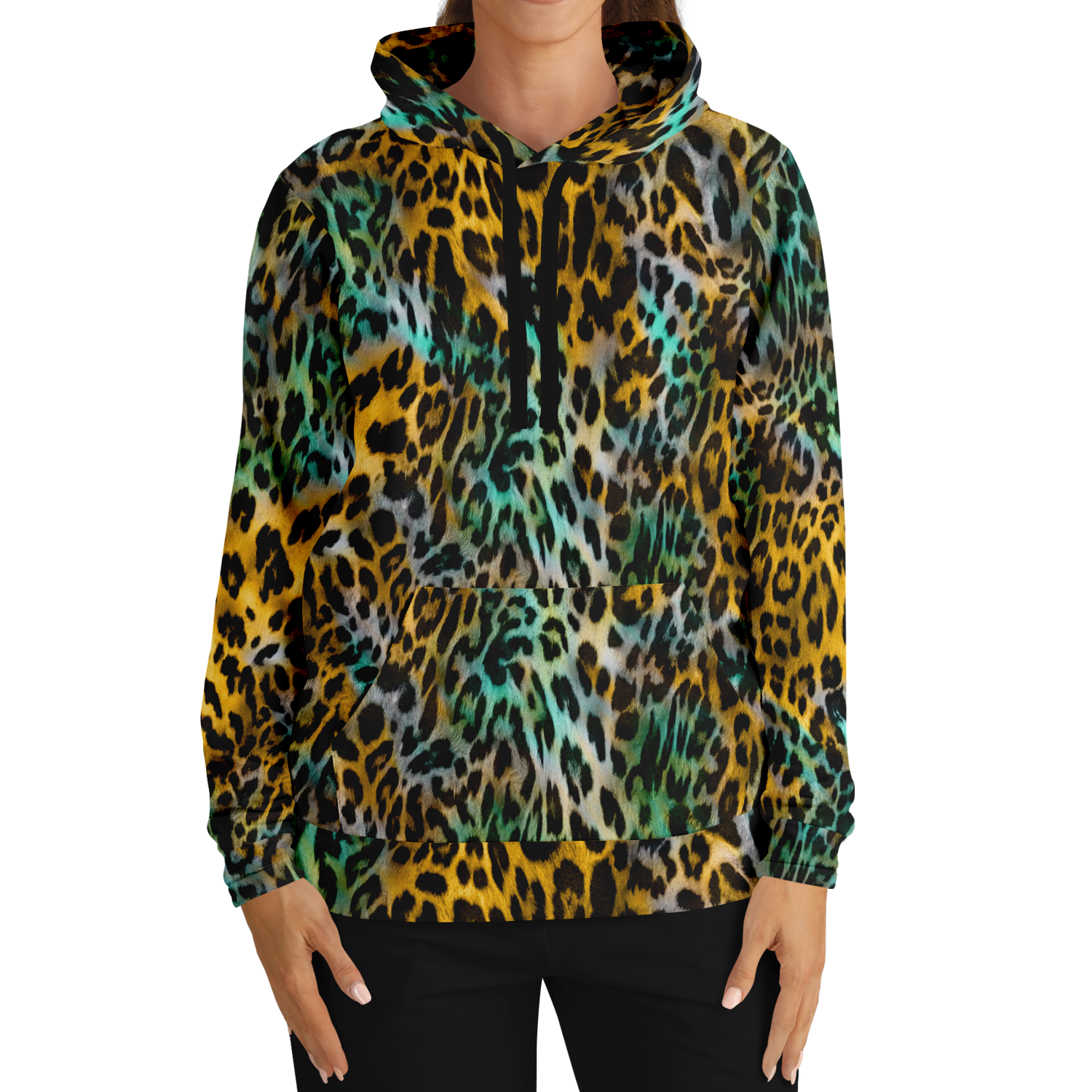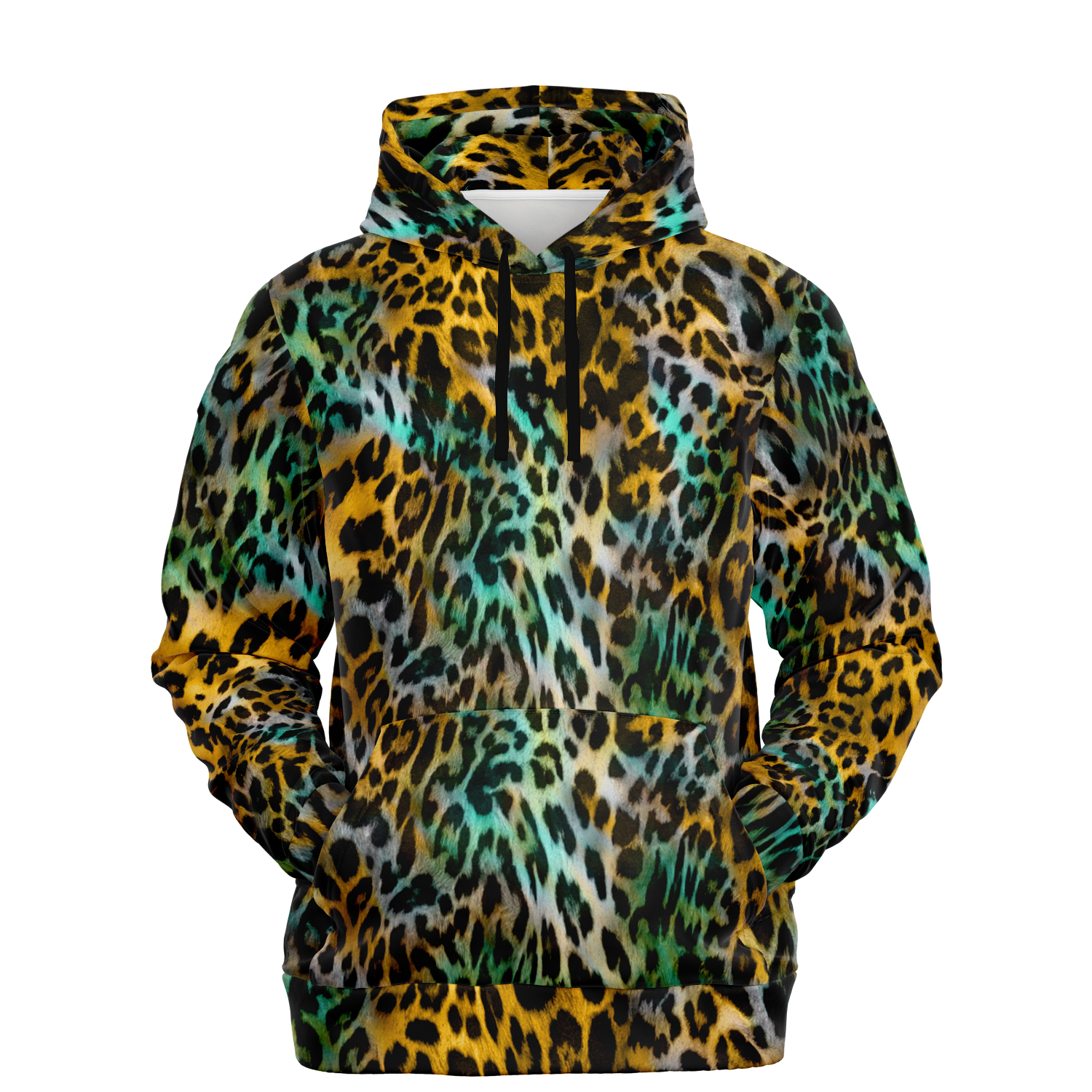 Stay warm and stylish with our Leopard Hoodie in a unique Yellow and Blue Abstract Pattern. Made with cozy material, it's perfect for chilly days. Show off your wild side and make a statement with this bold piece.