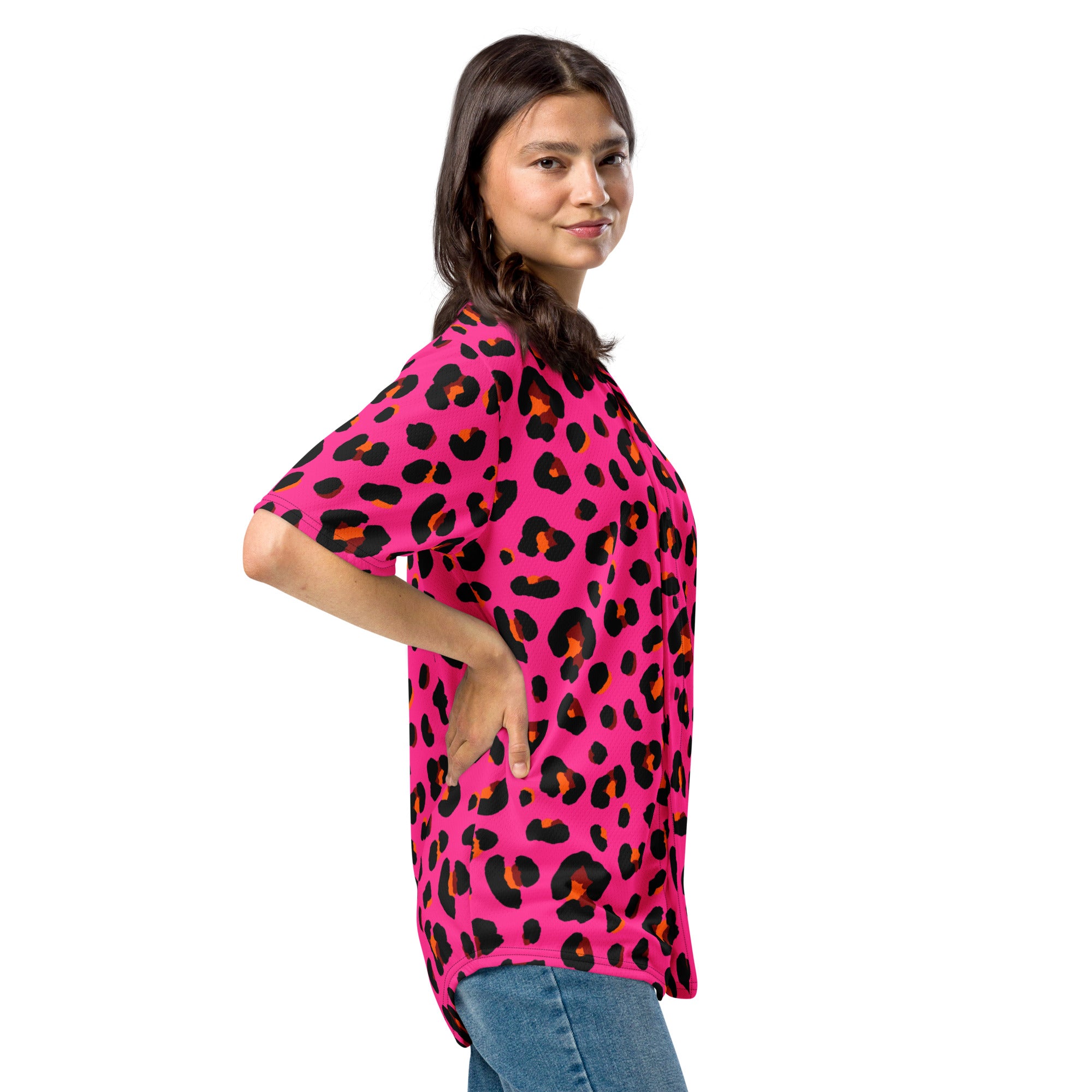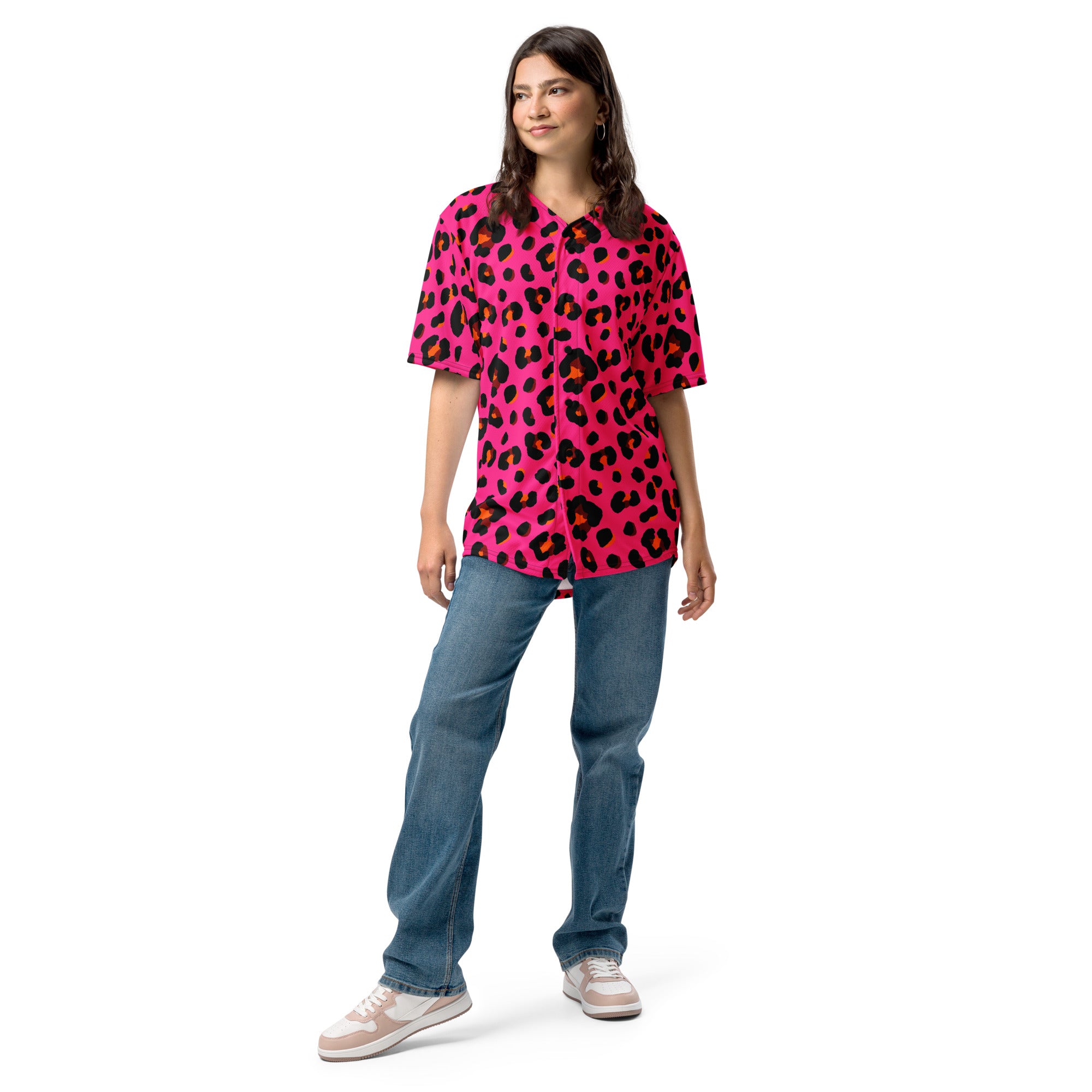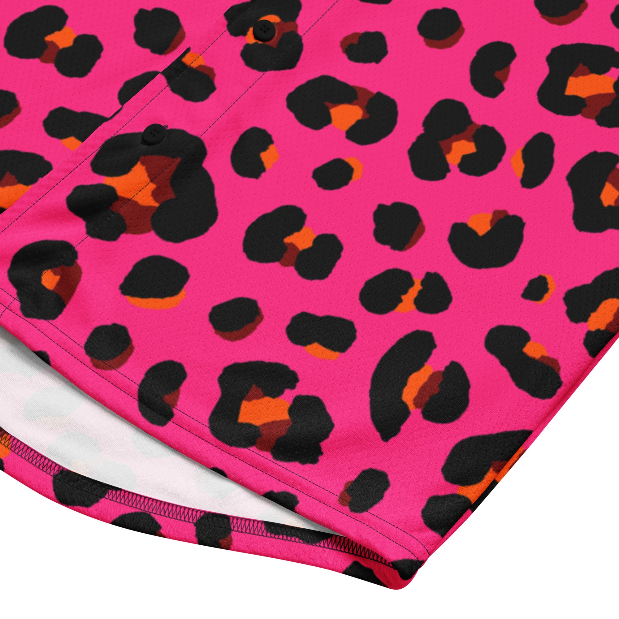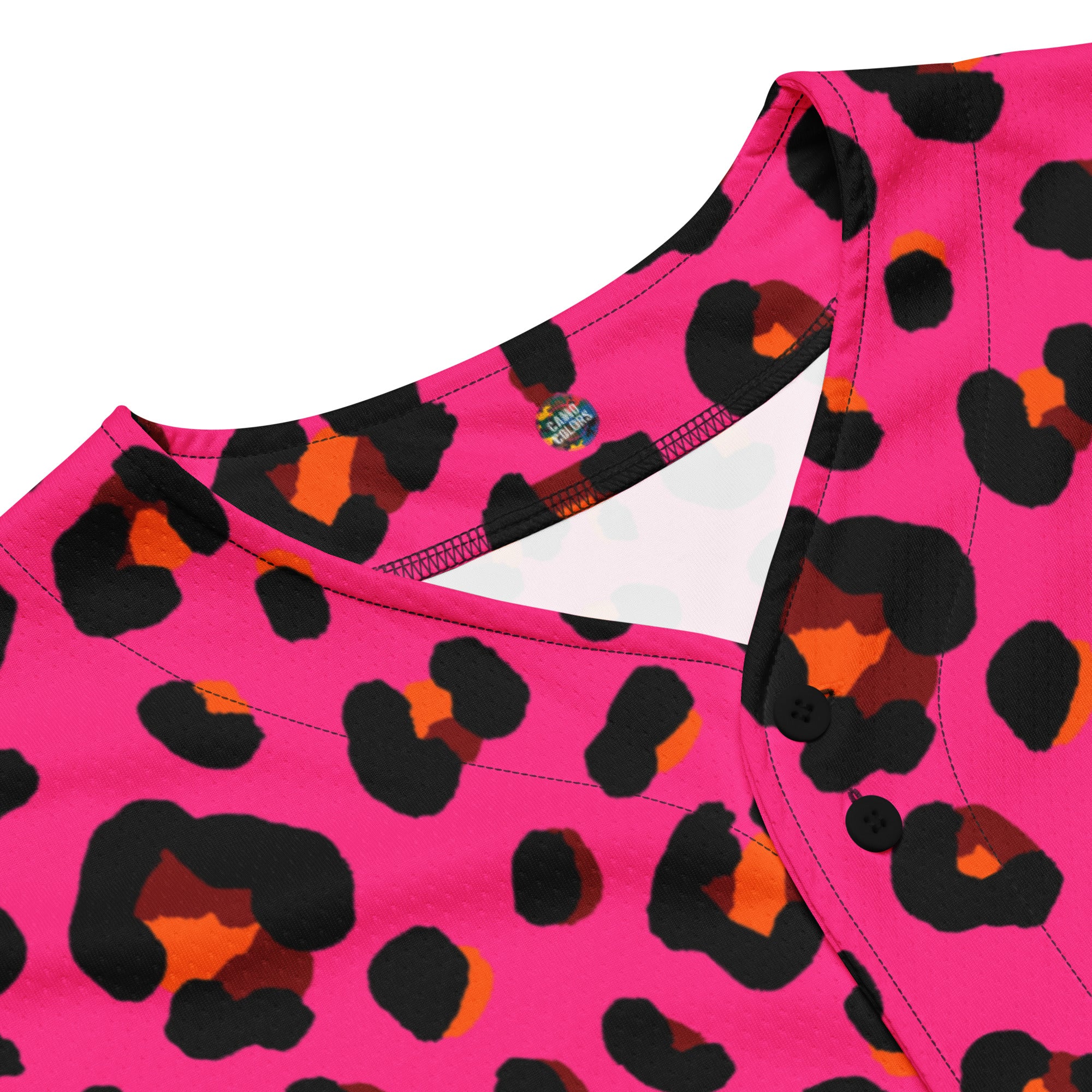 Discover the wild side of fashion with our Leopard Jersey in Cerise Pink, Orange, and Black. Made with a fierce leopard print, this jersey adds a bold touch to any outfit. Unleash your inner style with the perfect combination of color and pattern.