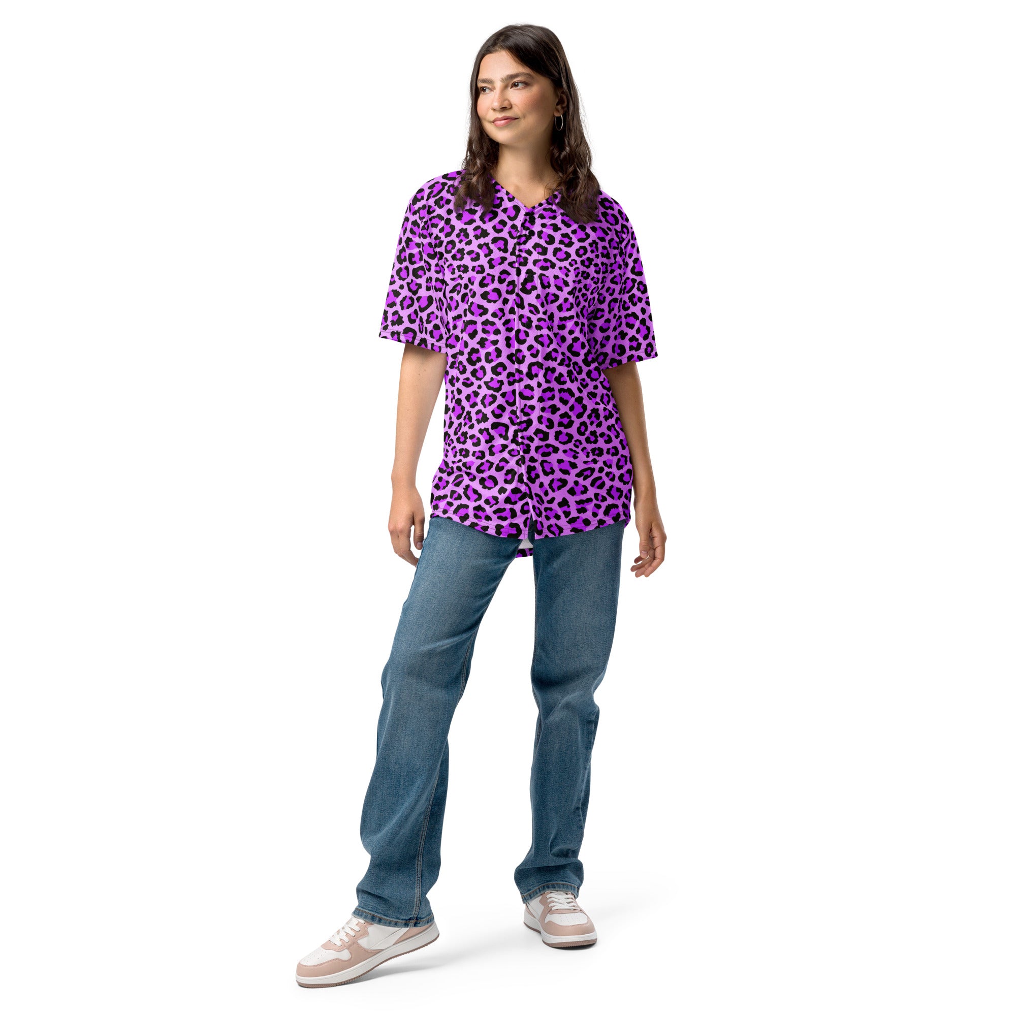 Expertly crafted and designed with a unique purple, blue, and black leopard pattern, our Leopard Jersey offers both style and functionality. Made with high-quality materials, this jersey provides comfort and durability for any athletic or casual setting. Elevate your wardrobe and stand out with this one-of-a-kind piece.