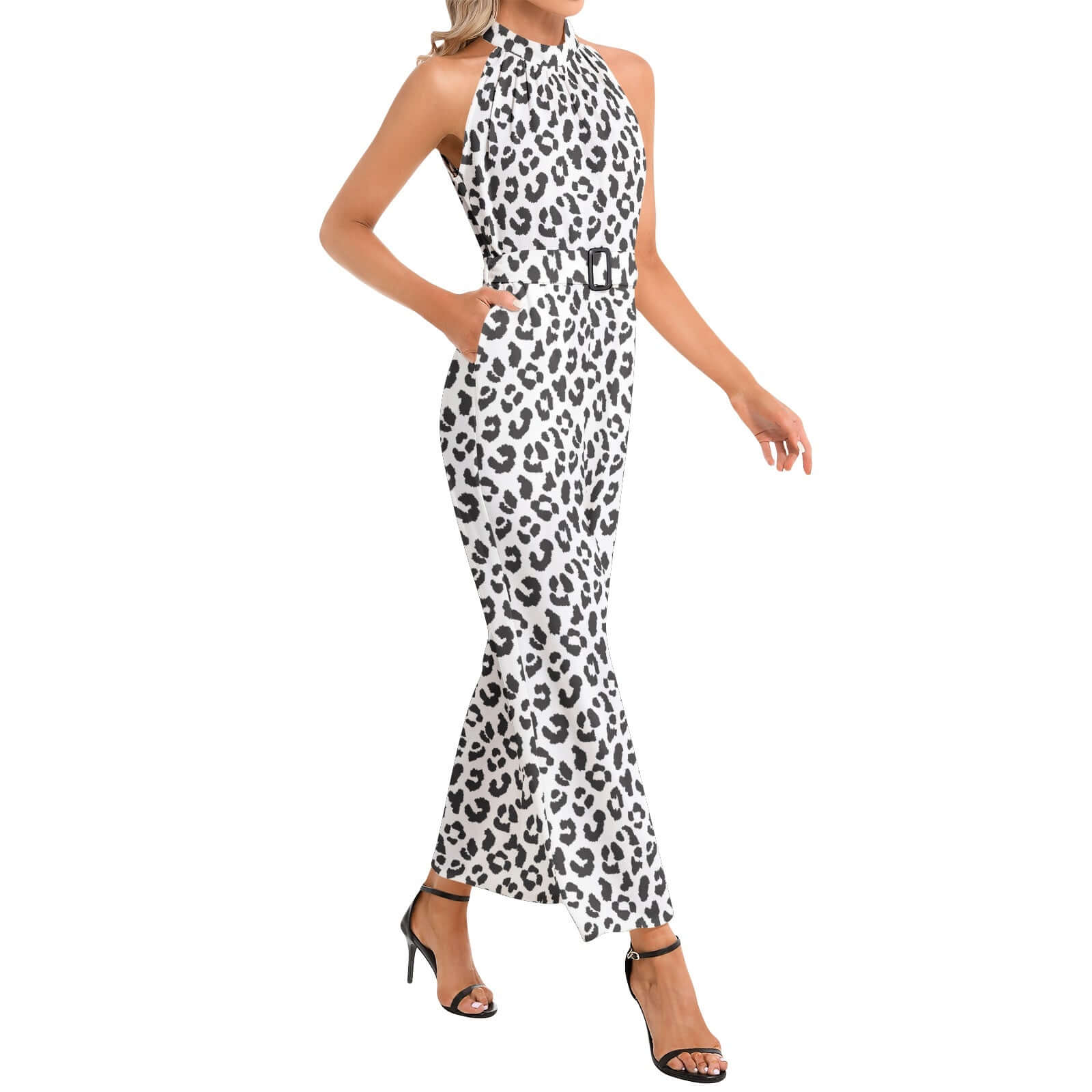 Leopard Jumpsuit | Belted Halter Neck | Black and White