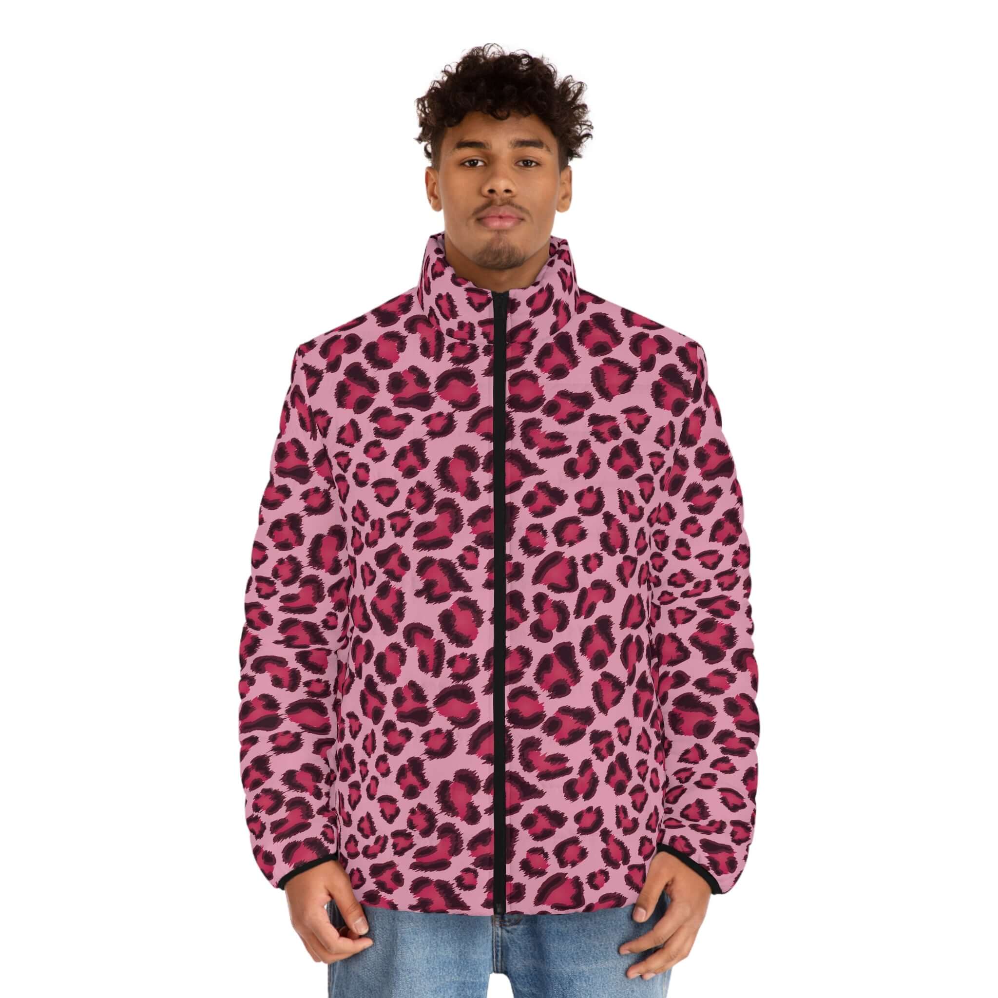 Leopard Puffer Jacket For Men | Pink, Cherry & Black