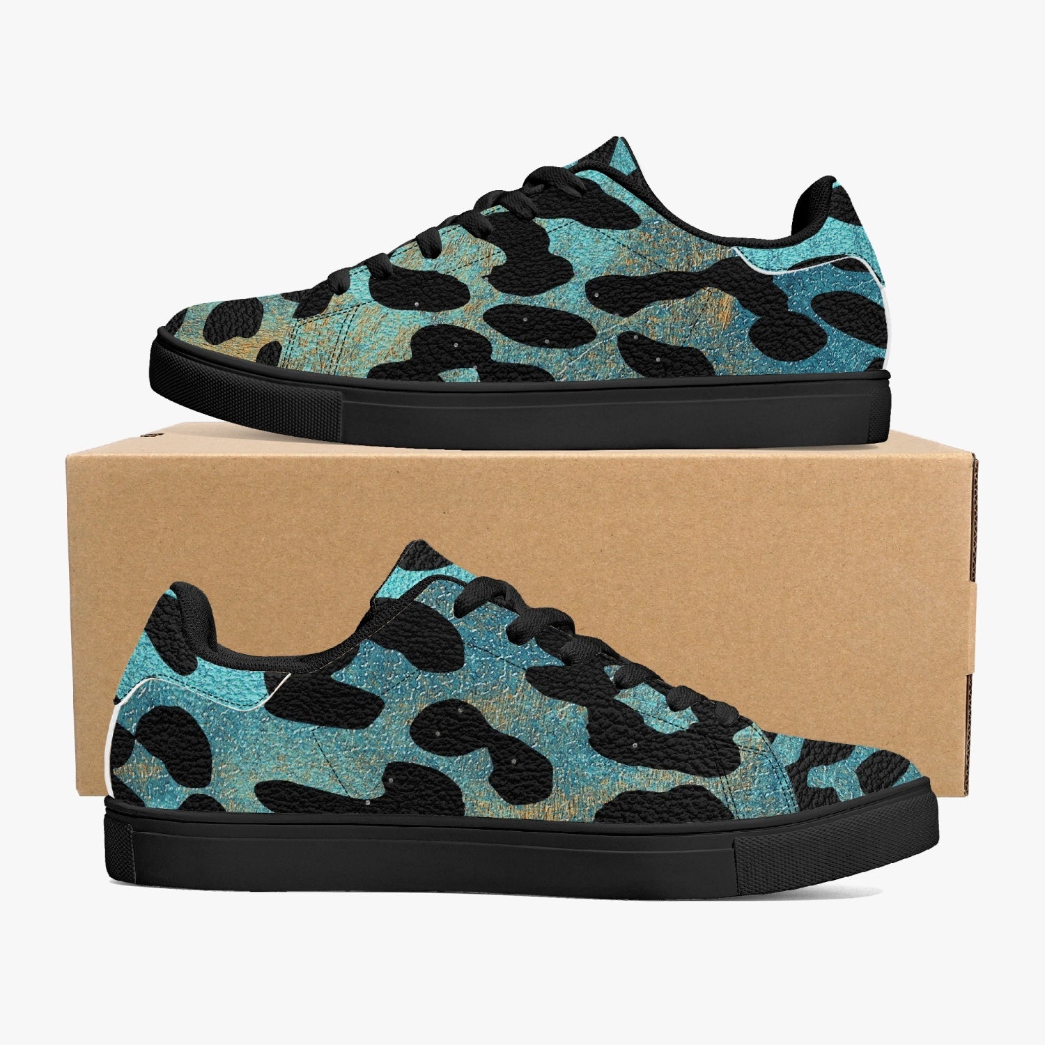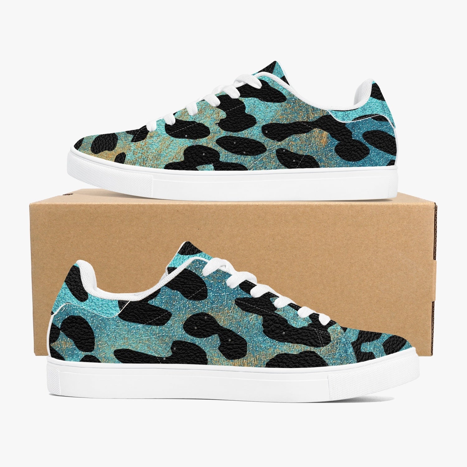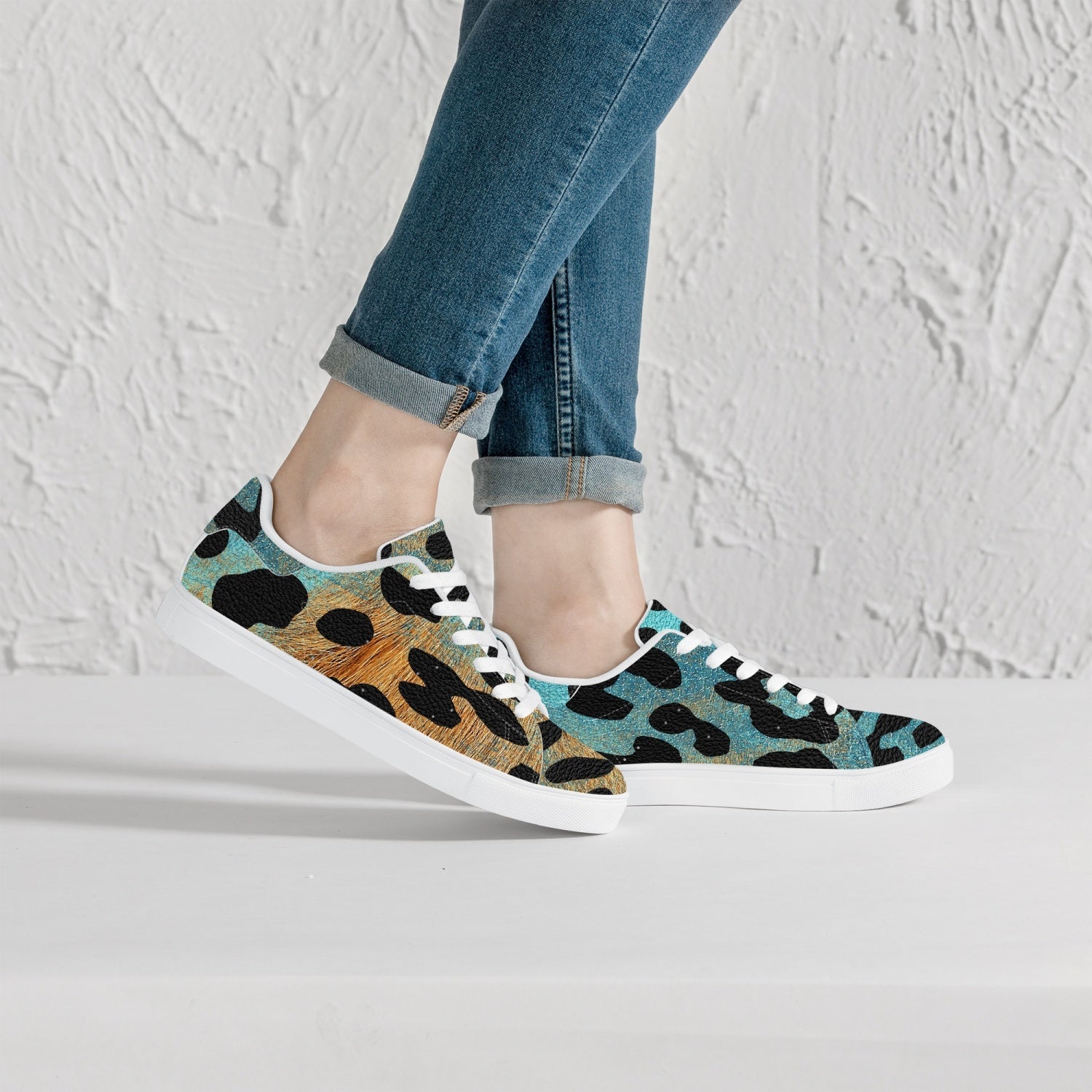 Leopard Sneakers | Classic Low-Top | Blue and Orange Safari Pattern