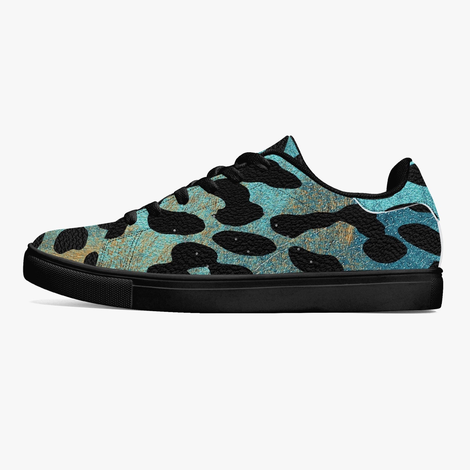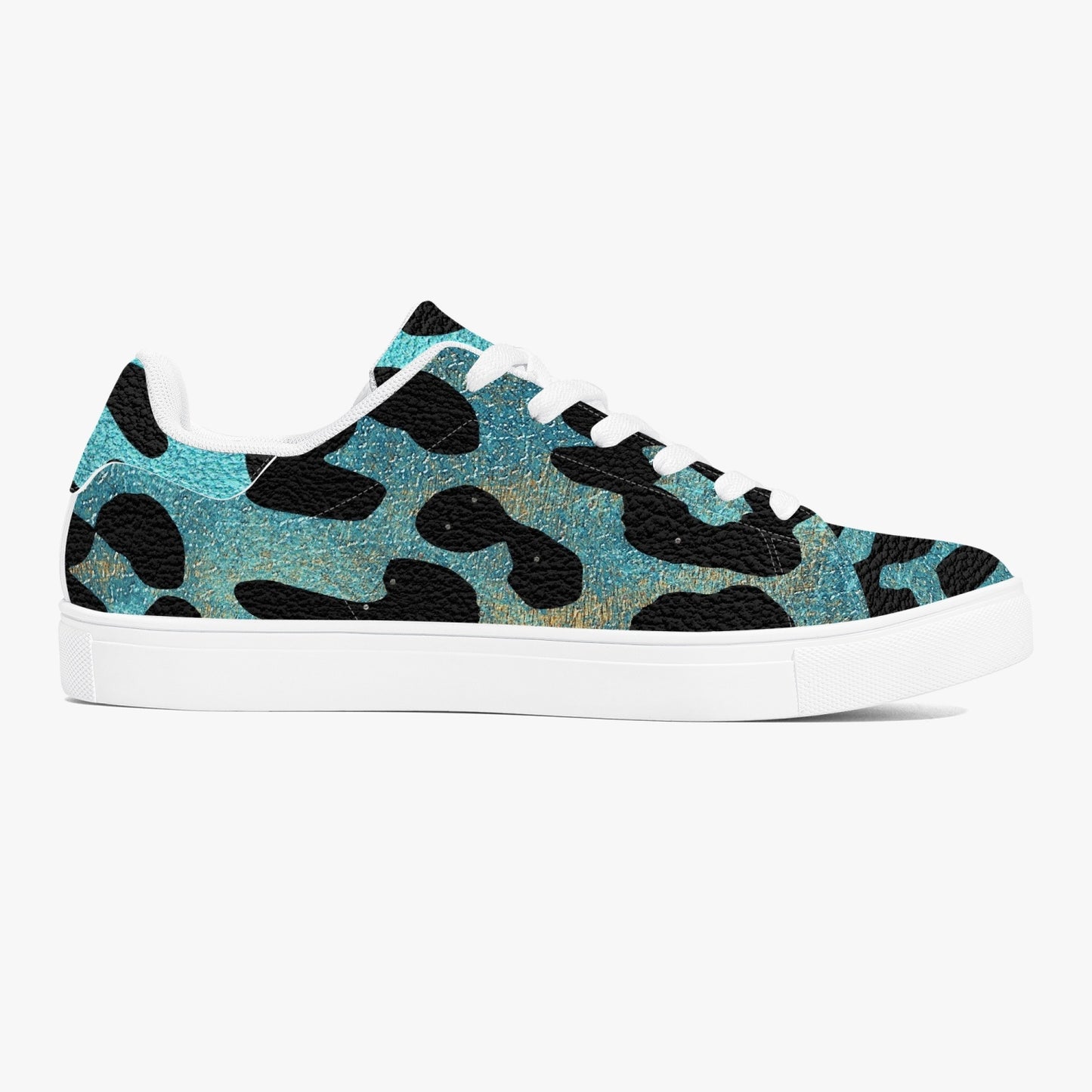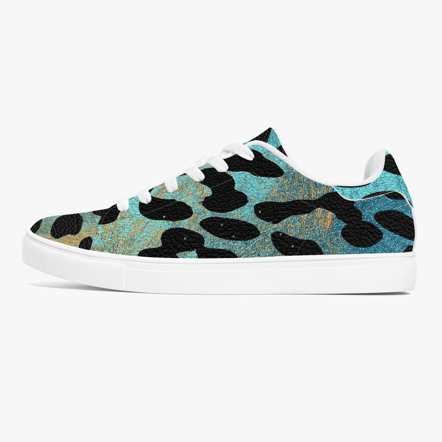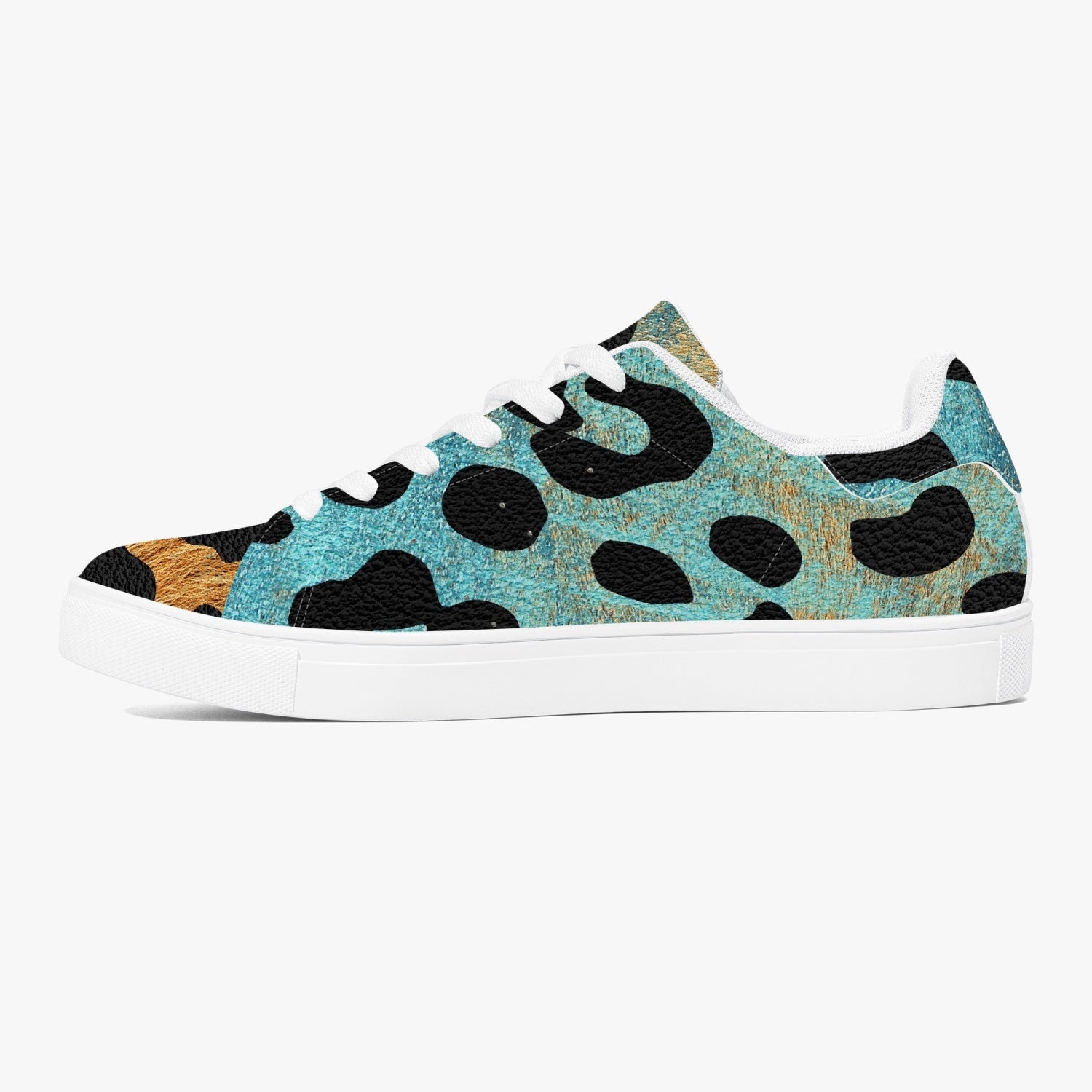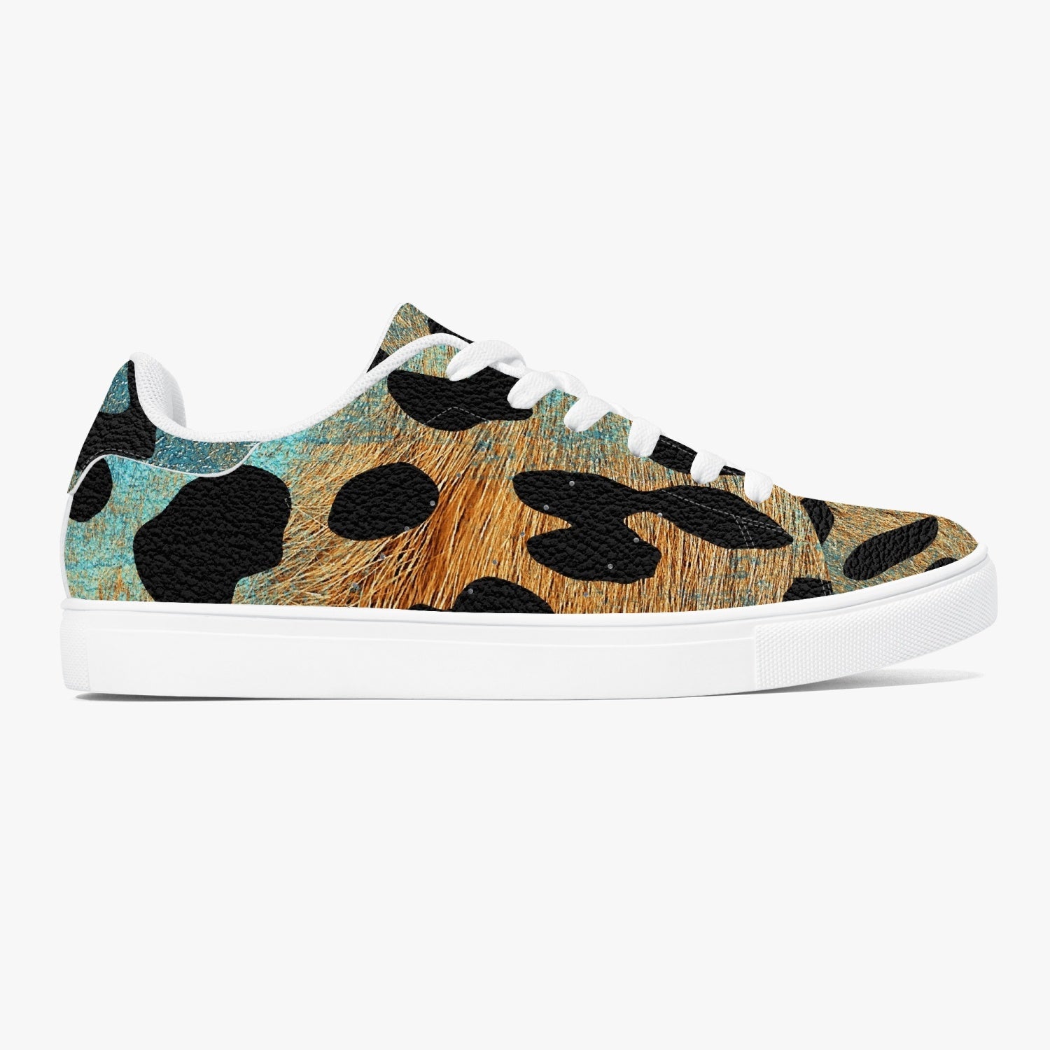 These Leopard Sneakers feature a classic low-top design with a unique blue and orange safari pattern. Made with high-quality materials, these sneakers provide comfort and style for any occasion. Stand out from the crowd with these trendy and eye-catching shoes.