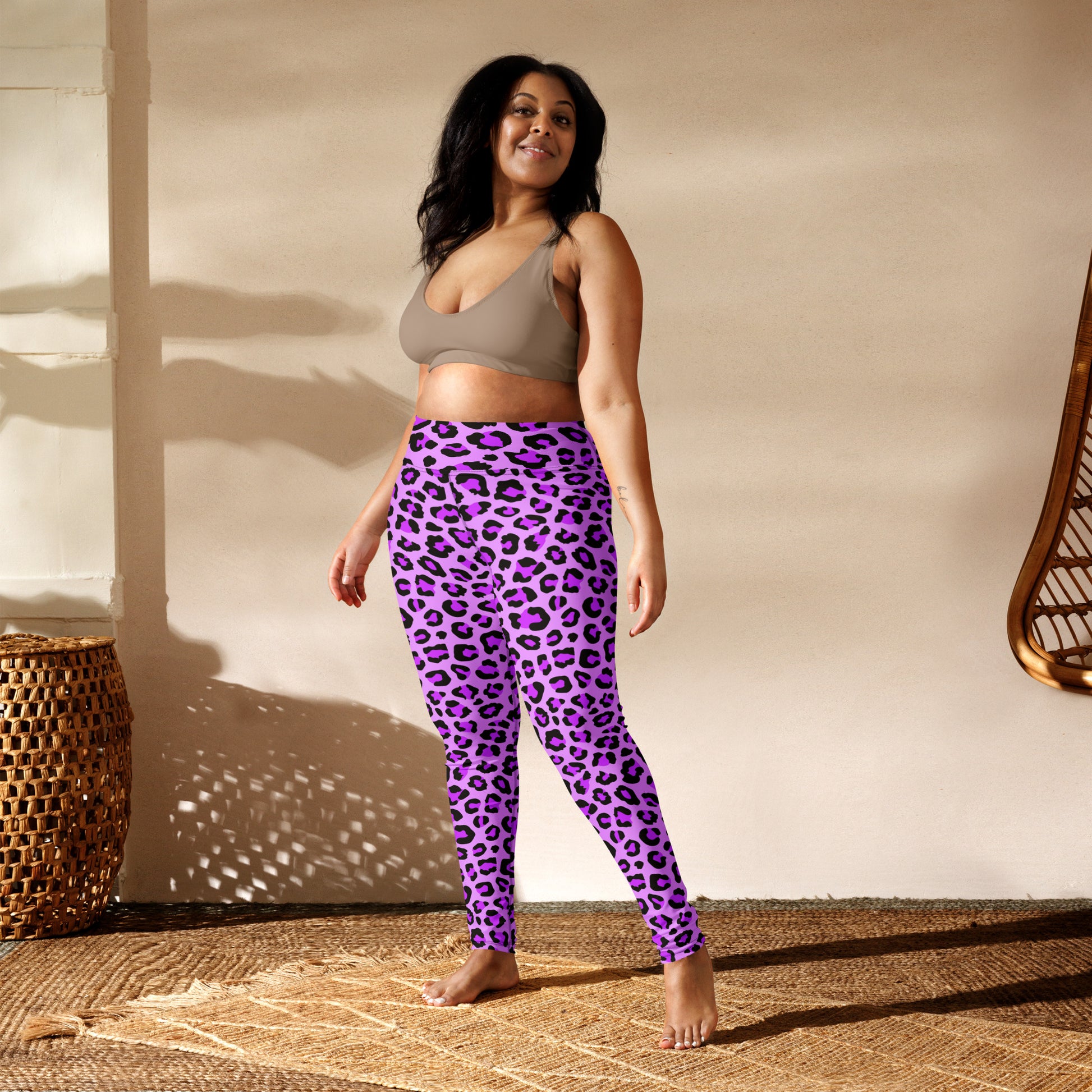 These leopard yoga pants come in beautiful shades of purple, blue, and black, making them a stylish and versatile choice for any yoga enthusiast. With their comfortable fit and eye-catching design, you'll feel confident and empowered during your practice. Made with high-quality materials, these pants offer both style and functionality.