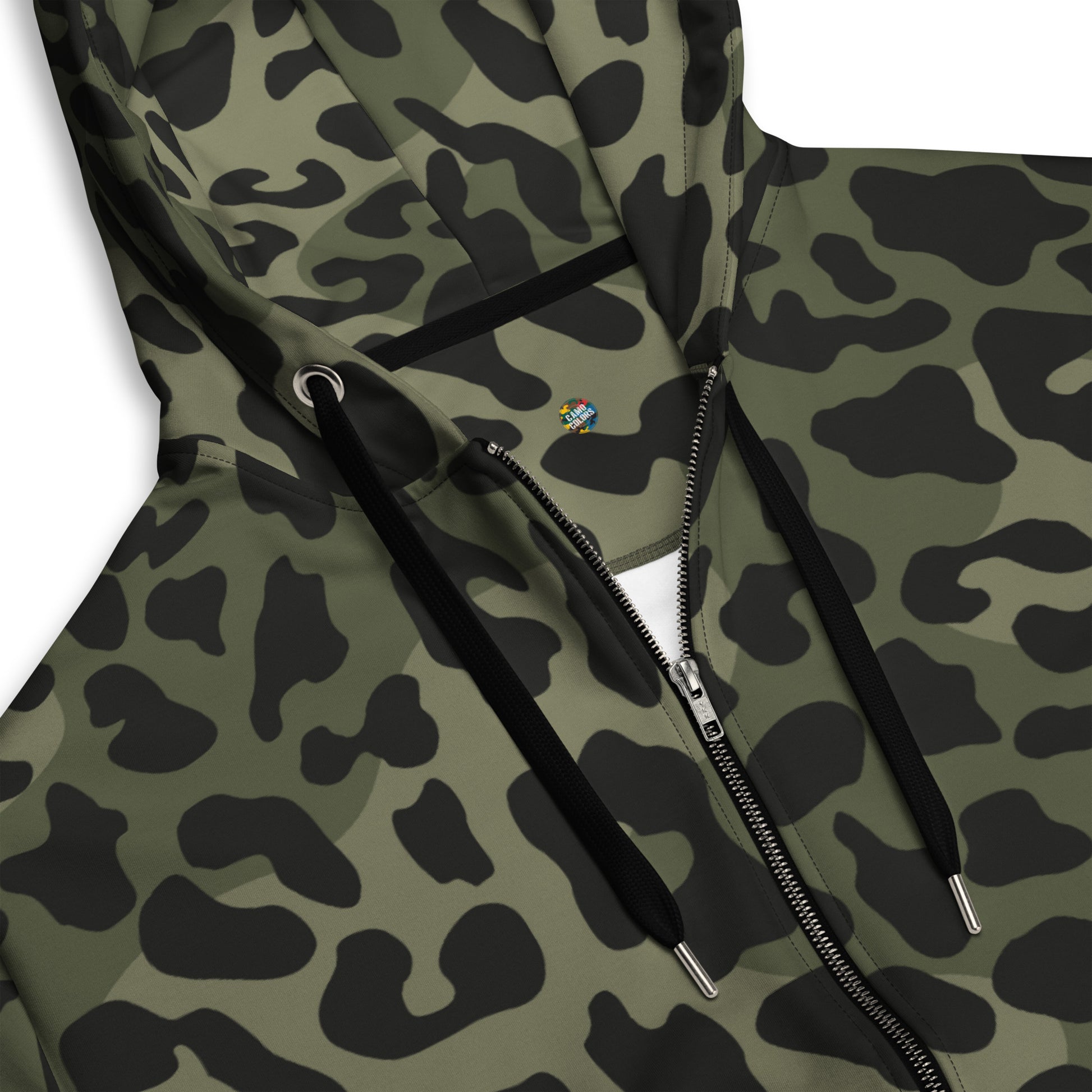 Leopard Jungle Zip Hoodie – Earthy Browns with Green Accents