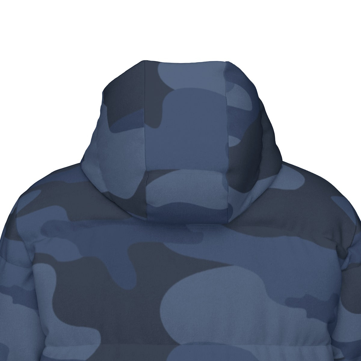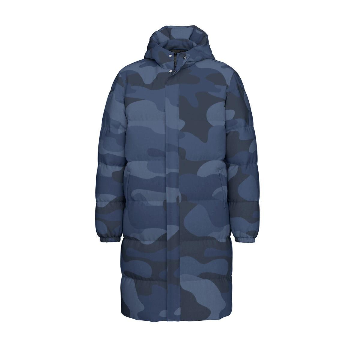 Long Puffer Coat | Unisex | Deep Blue Camouflage