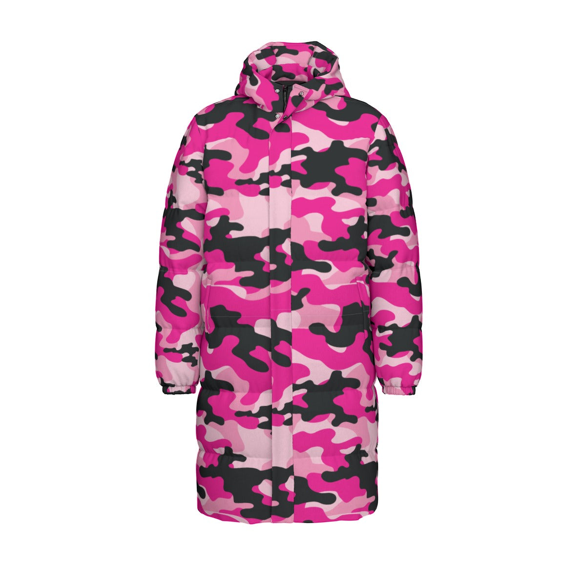 Long Puffer Coat | Unisex | Pink, Candy and Black Camouflage