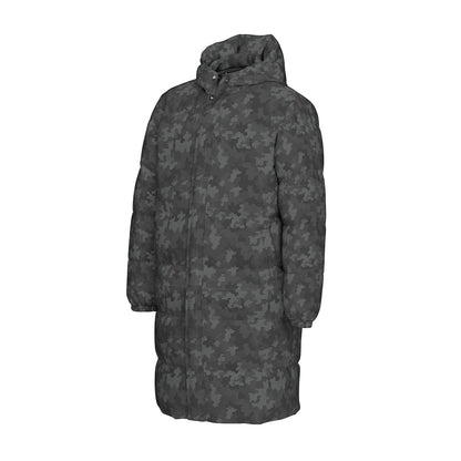 Long Puffer Coat | Unisex | Stylish Black Camouflage