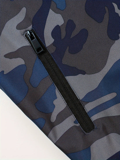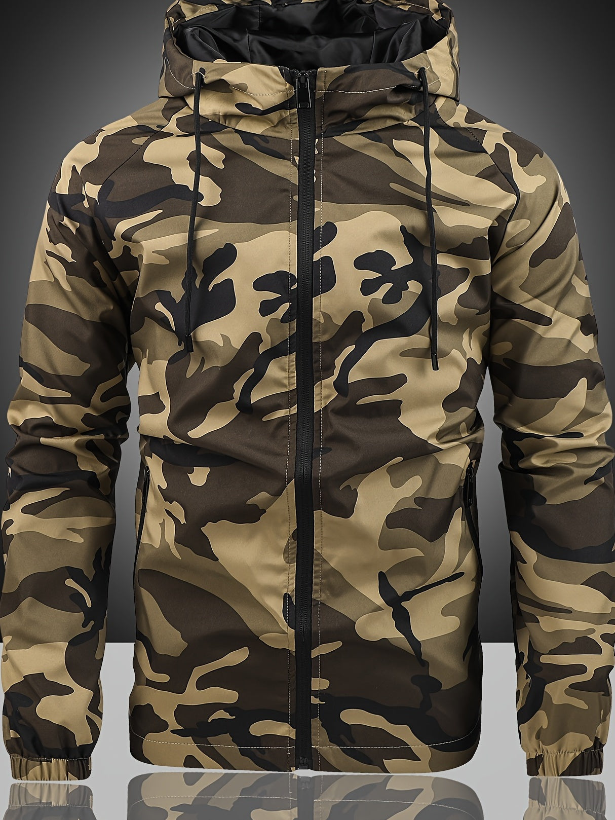 Stay warm and stylish with our Long Sleeve Hooded Zipper Jacket for Men. Made from 100% polyester, this non-stretch jacket features a camo pattern and raglan sleeves for a sporty look. The hooded collar and placket zipper add functionality while the machine washable fabric makes it easy to care for.