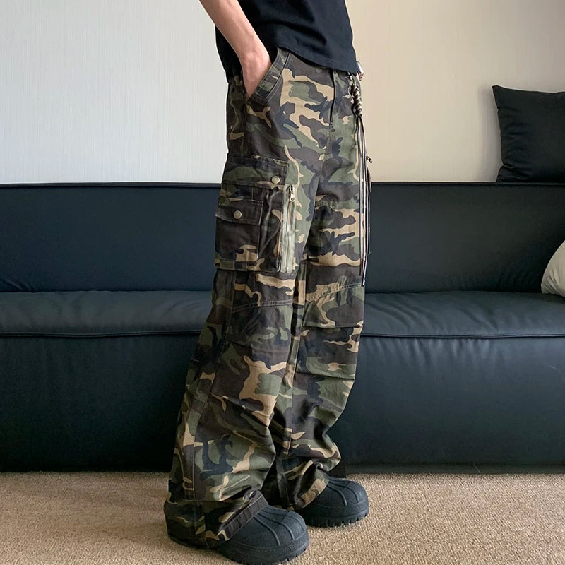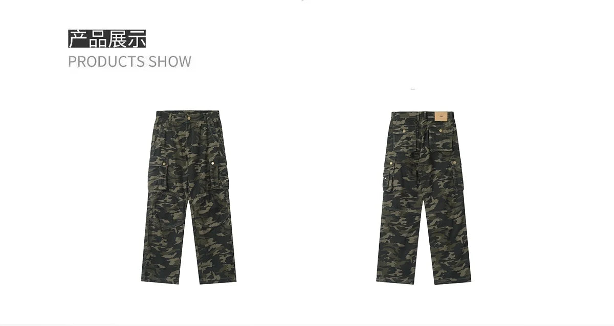 Blend practicality and style with these Loose Straight Camo Workwear Pants. Designed with a high-waist fit for comfort and support, these pants offer a relaxed straight-leg silhouette that’s perfect for all-day wear. The bold camouflage pattern adds a rugged, trendy vibe to your wardrobe, while the large, functional pockets provide ample storage for your essentials. Durable and versatile, these pants are ideal for outdoor adventures, workwear, or streetwear looks. Pair them with a simple tee or a utility jacket to complete the effortlessly cool aesthetic.