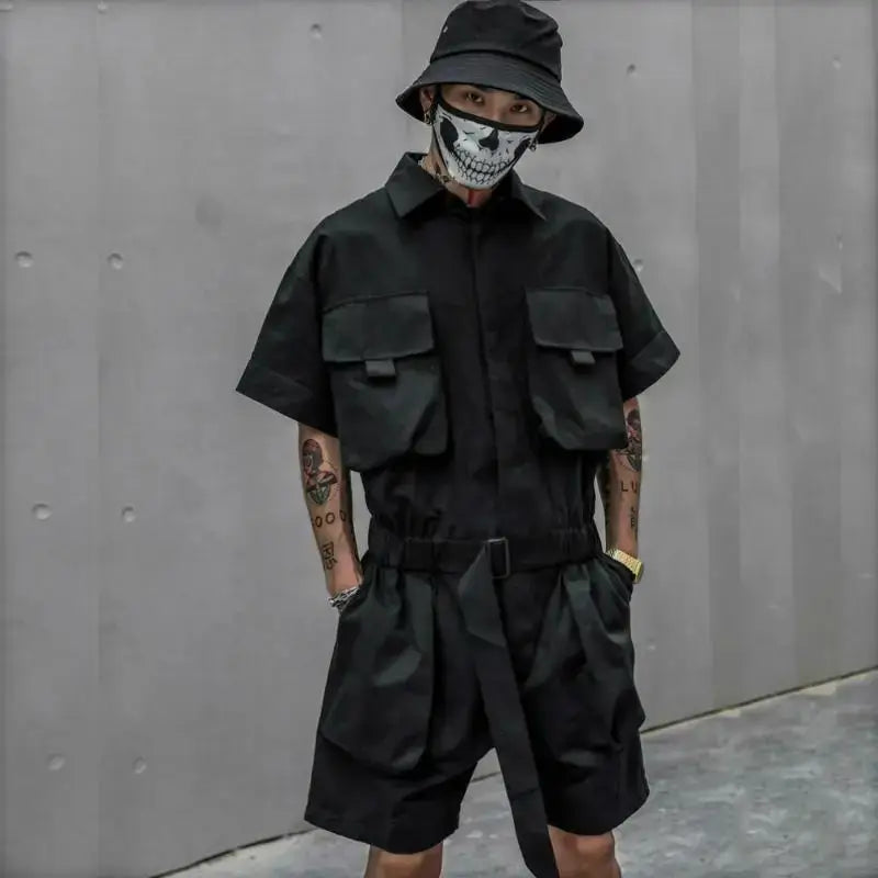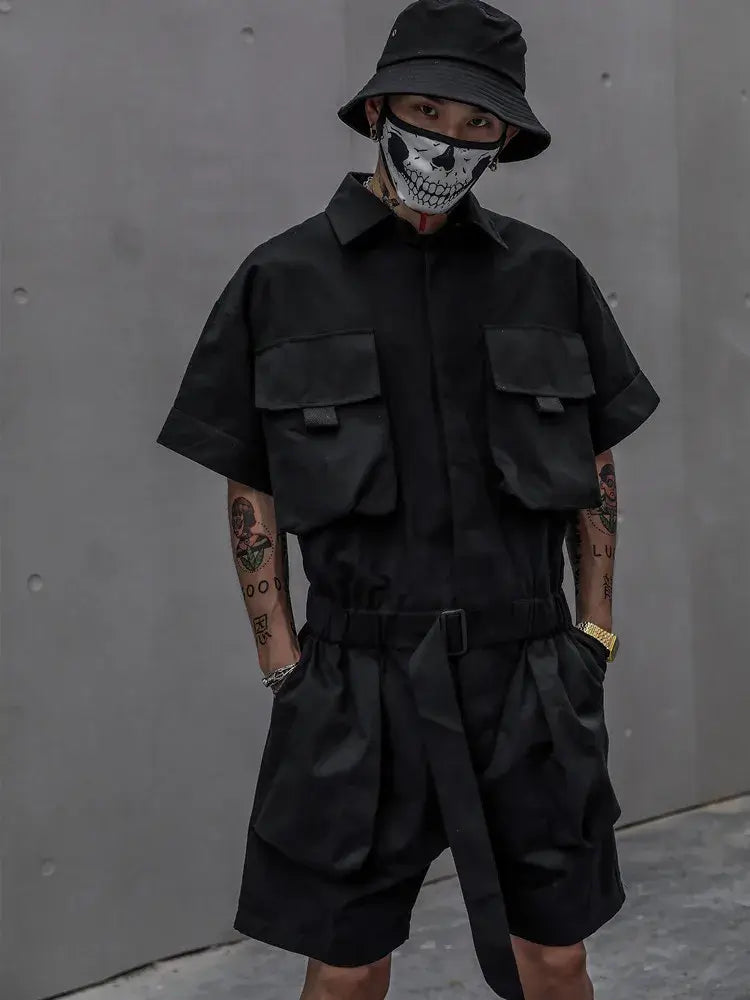 Upgrade your streetwear game with these Men’s Black Cargo Overalls, a sleek and functional blend of Japanese techwear and classic utility style. Designed for casual summer wear, these overalls feature a relaxed fit, elastic waist for easy movement, and multiple pockets for practicality. Whether you're going for an urban edge or a minimalist aesthetic, these overalls deliver effortless cool.