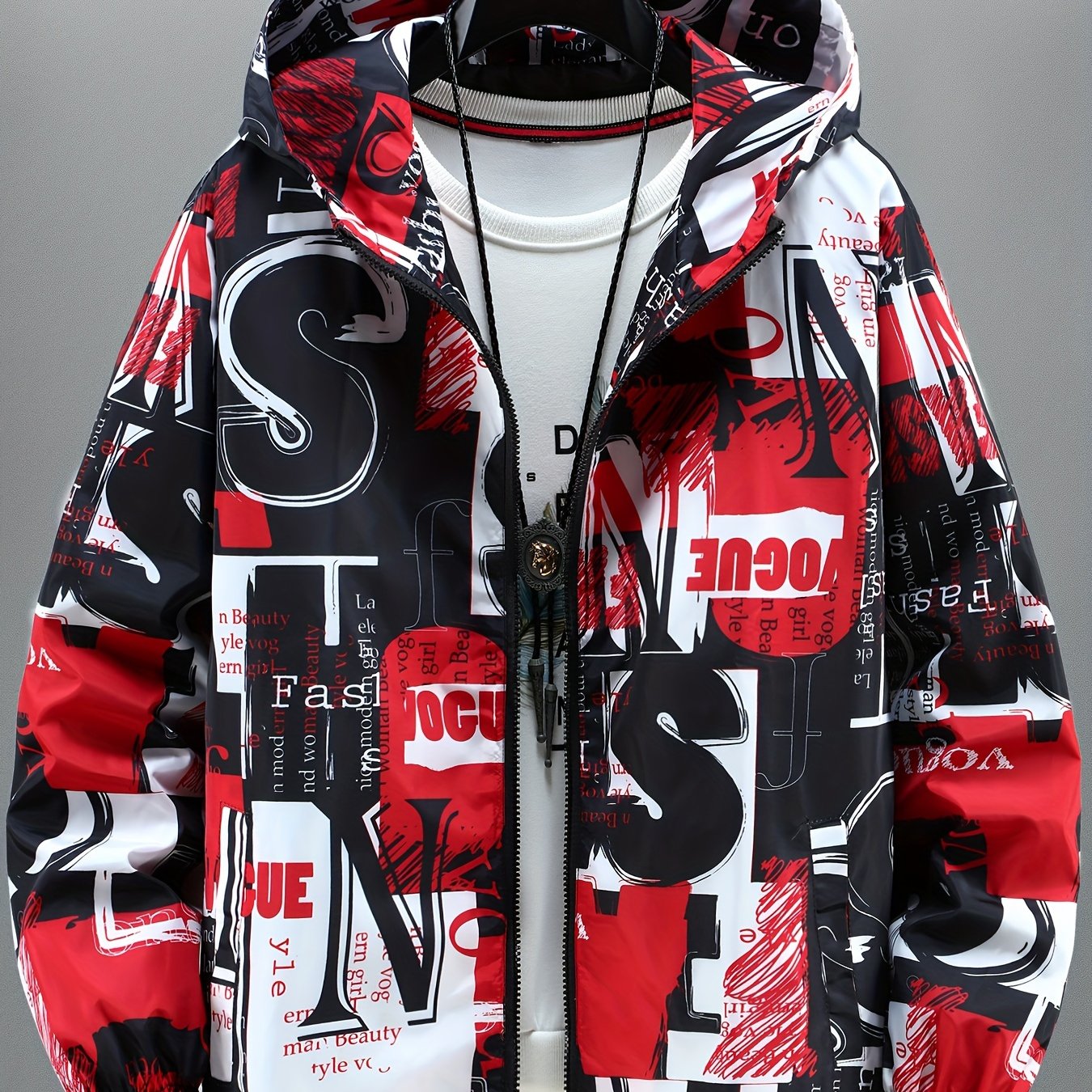 Men’s Red Casual Hooded Camo Jacket | Lightweight Windproof