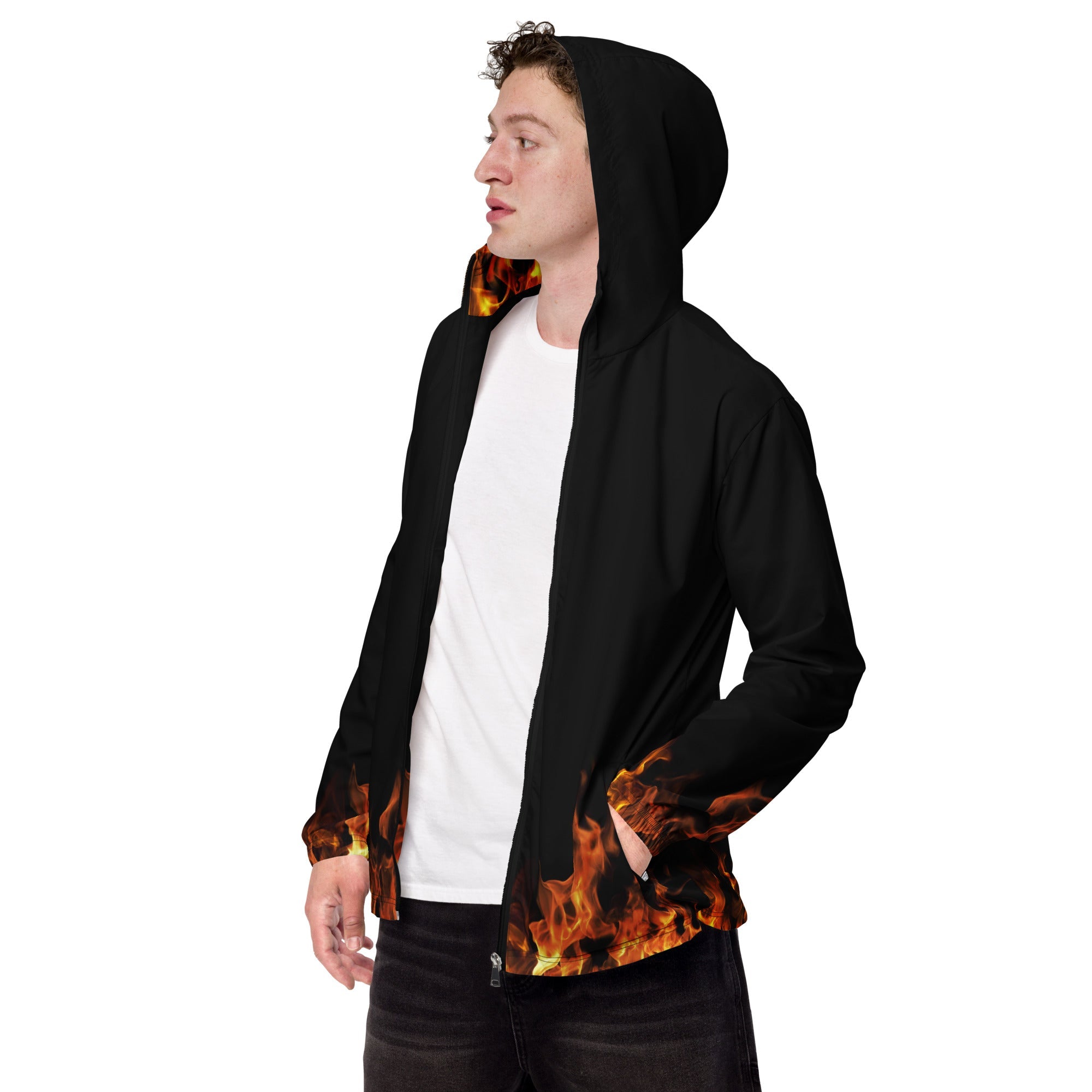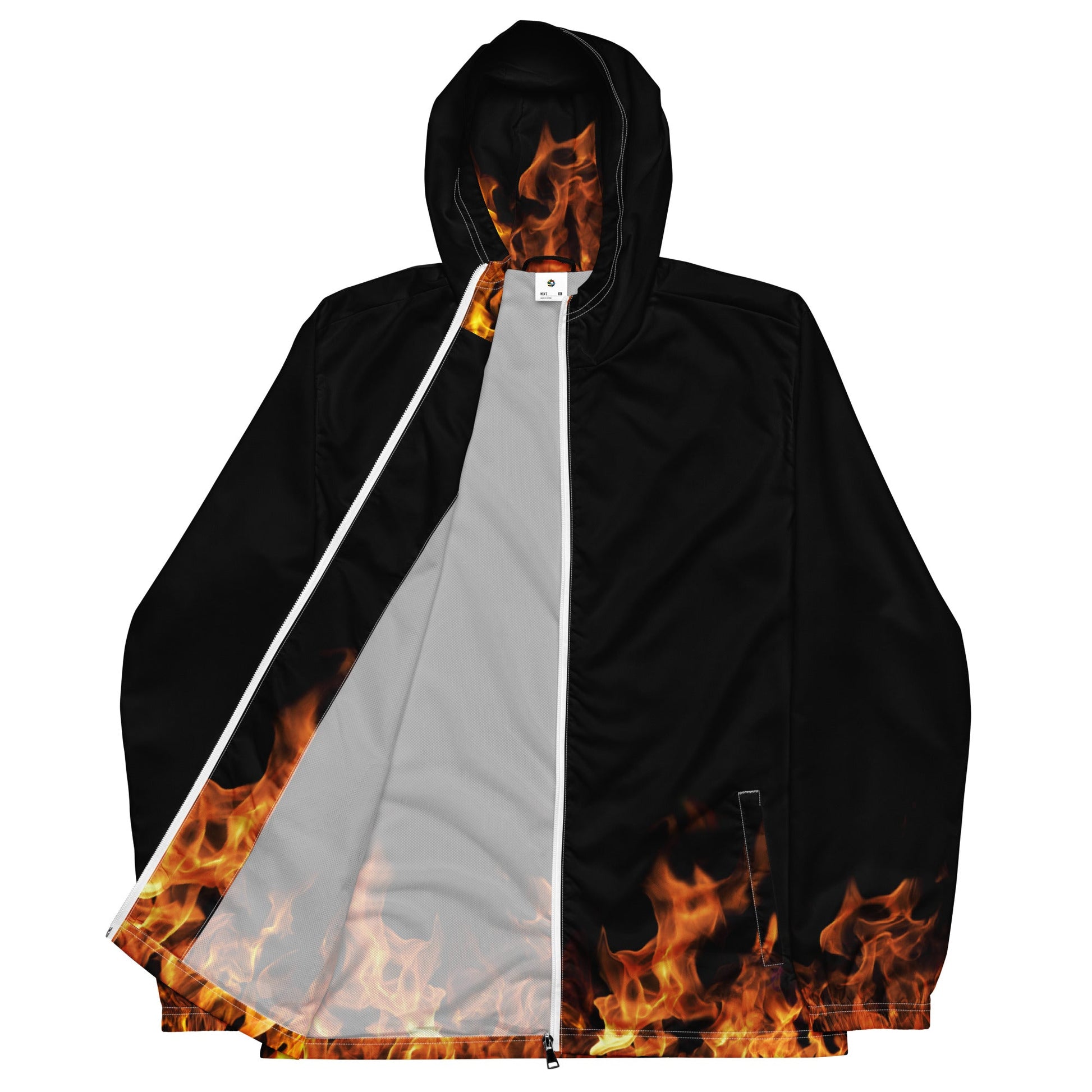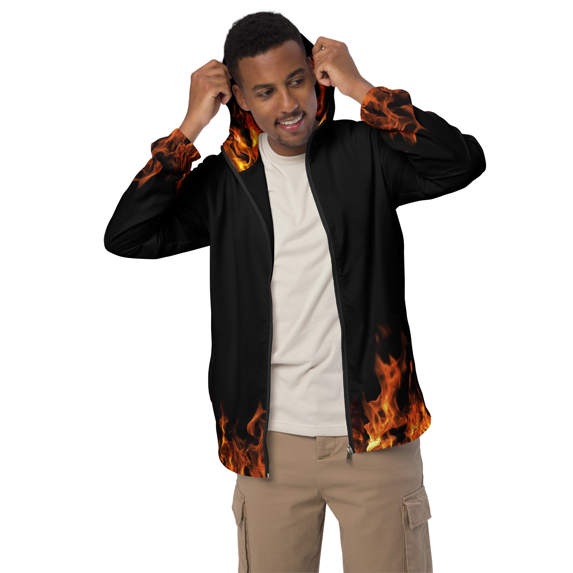 Turn up the heat with the Men's Black Windbreaker in Blazing Flames Print. This bold and lightweight jacket features a fiery flame design against a sleek black background, creating a striking and edgy look. Built for wind resistance and comfort, it’s perfect for making a statement in any weather. Whether you’re hitting the streets or the trail, this windbreaker combines functionality with a daring style.