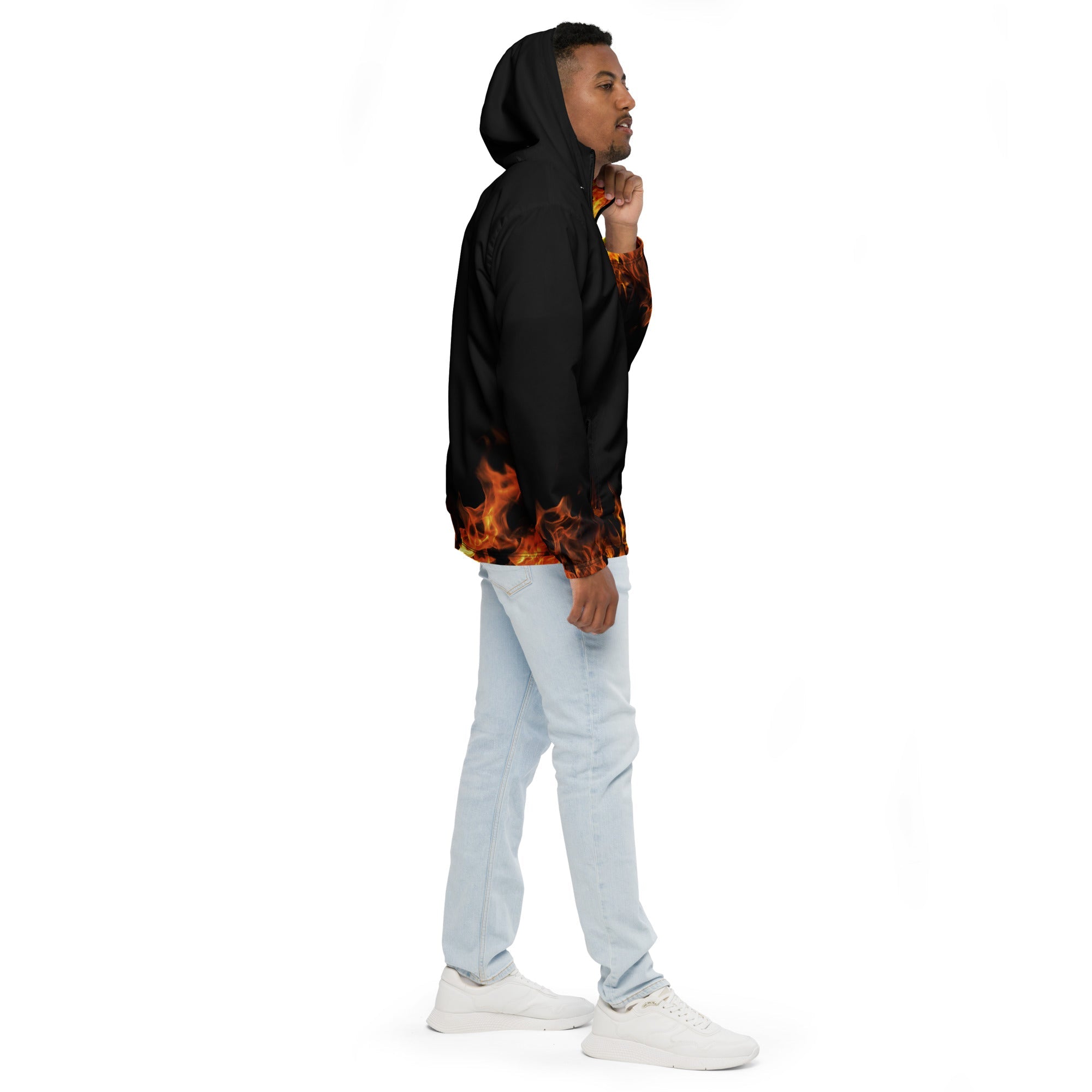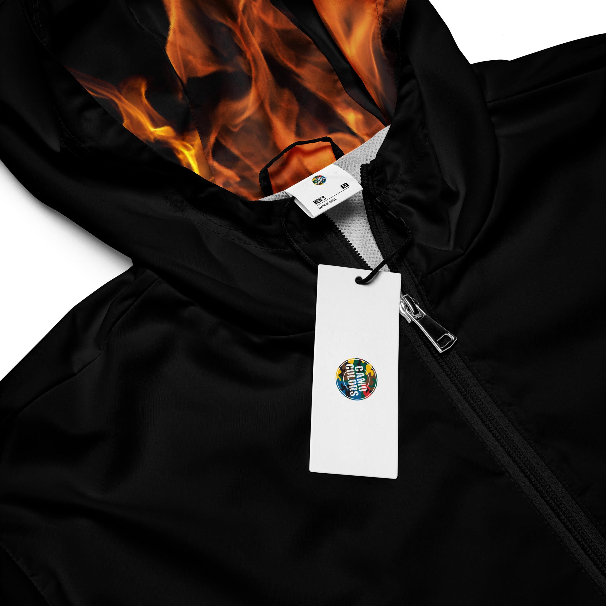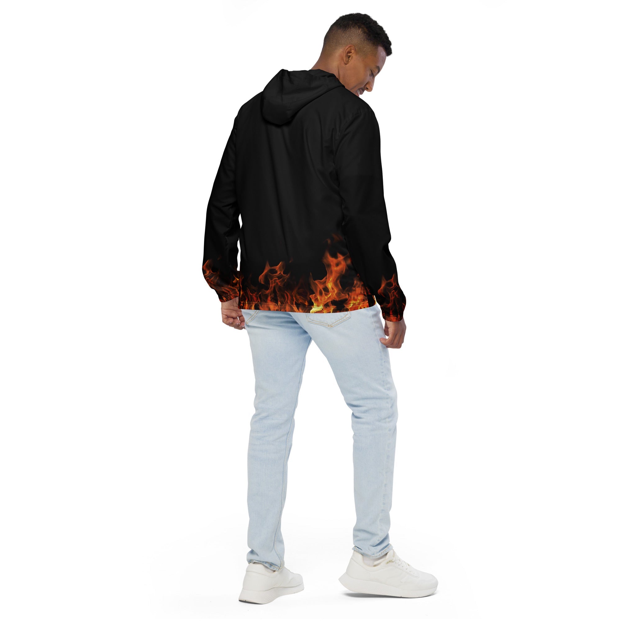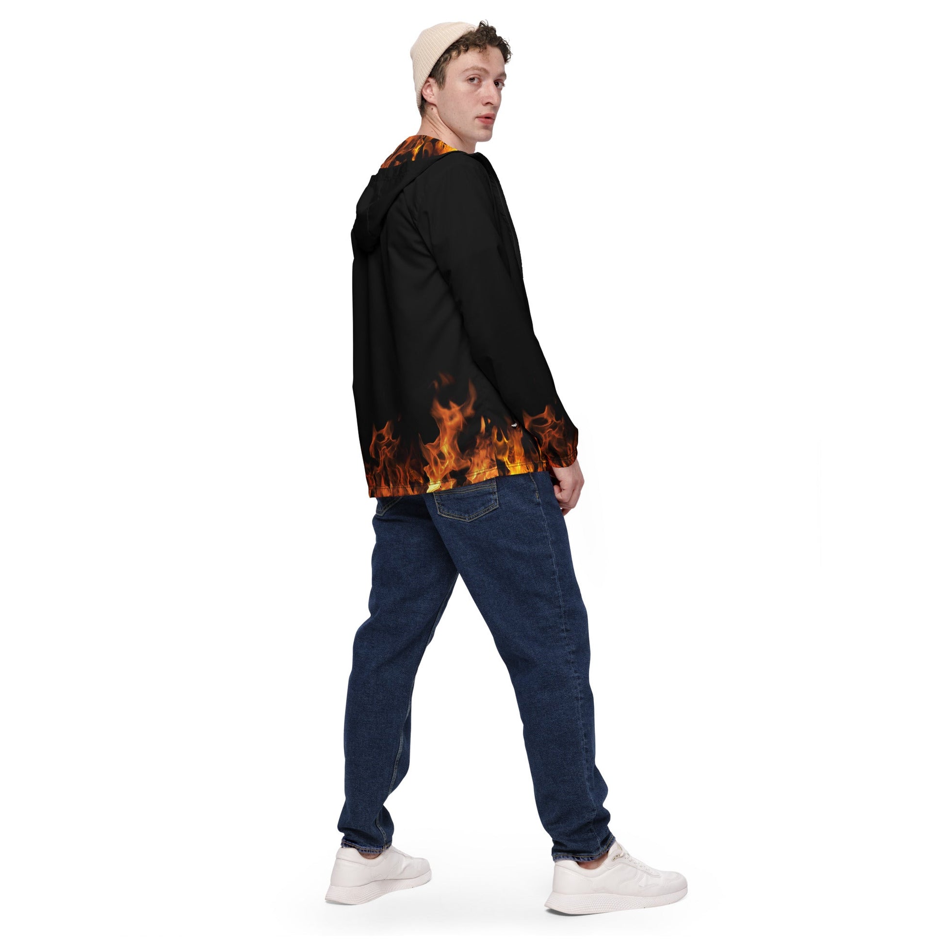 Turn up the heat with the Men's Black Windbreaker in Blazing Flames Print. This bold and lightweight jacket features a fiery flame design against a sleek black background, creating a striking and edgy look. Built for wind resistance and comfort, it’s perfect for making a statement in any weather. Whether you’re hitting the streets or the trail, this windbreaker combines functionality with a daring style.