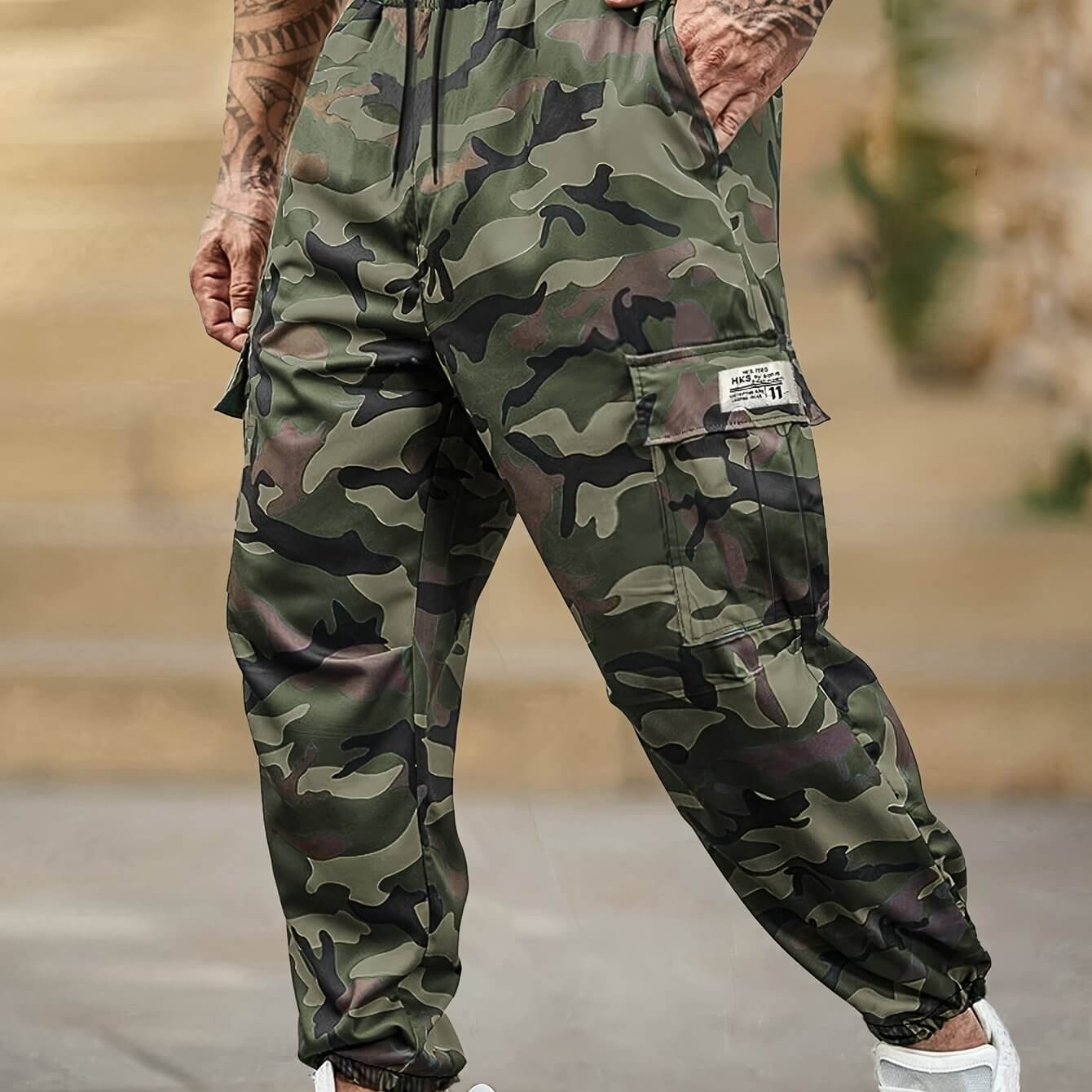 These Men's Camo Cargo Pants are perfect for outdoor activities with their drawstring waist and side pockets. Made from 100% polyester with a non-stretch fabric and regular fit, they are easy to care for and comfortable to wear. The camo pattern adds a stylish touch to these basics, making them suitable for weekend casual occasions.