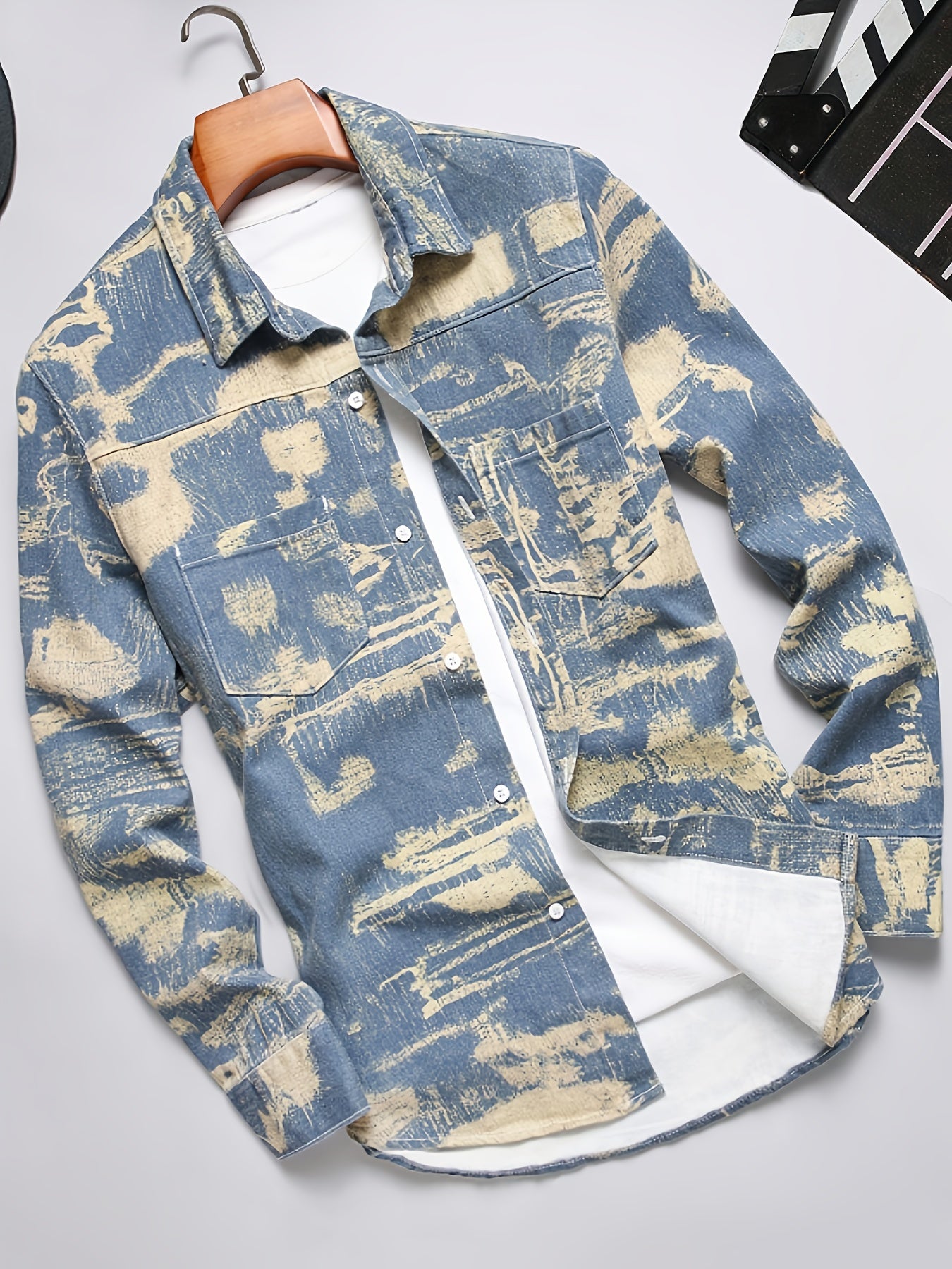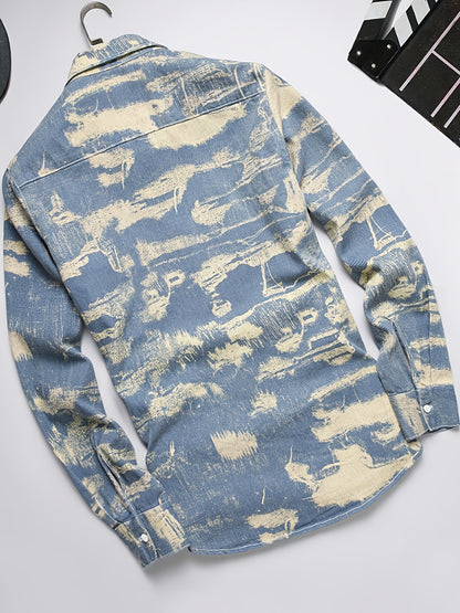 Men's Camo Denim Shirt | Casual Long Sleeve, Cotton Blend