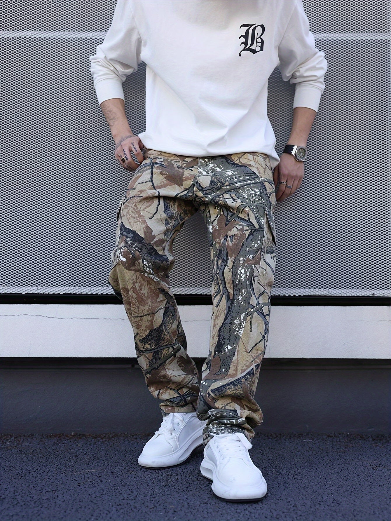 Introducing the Men's Camo Flap Pockets Denim Pants, perfect for the stylish and practical man. These pants feature a camo design and flap pockets for added functionality. The loose style allows for comfort and versatility. Upgrade your wardrobe with these must-have jeans.
