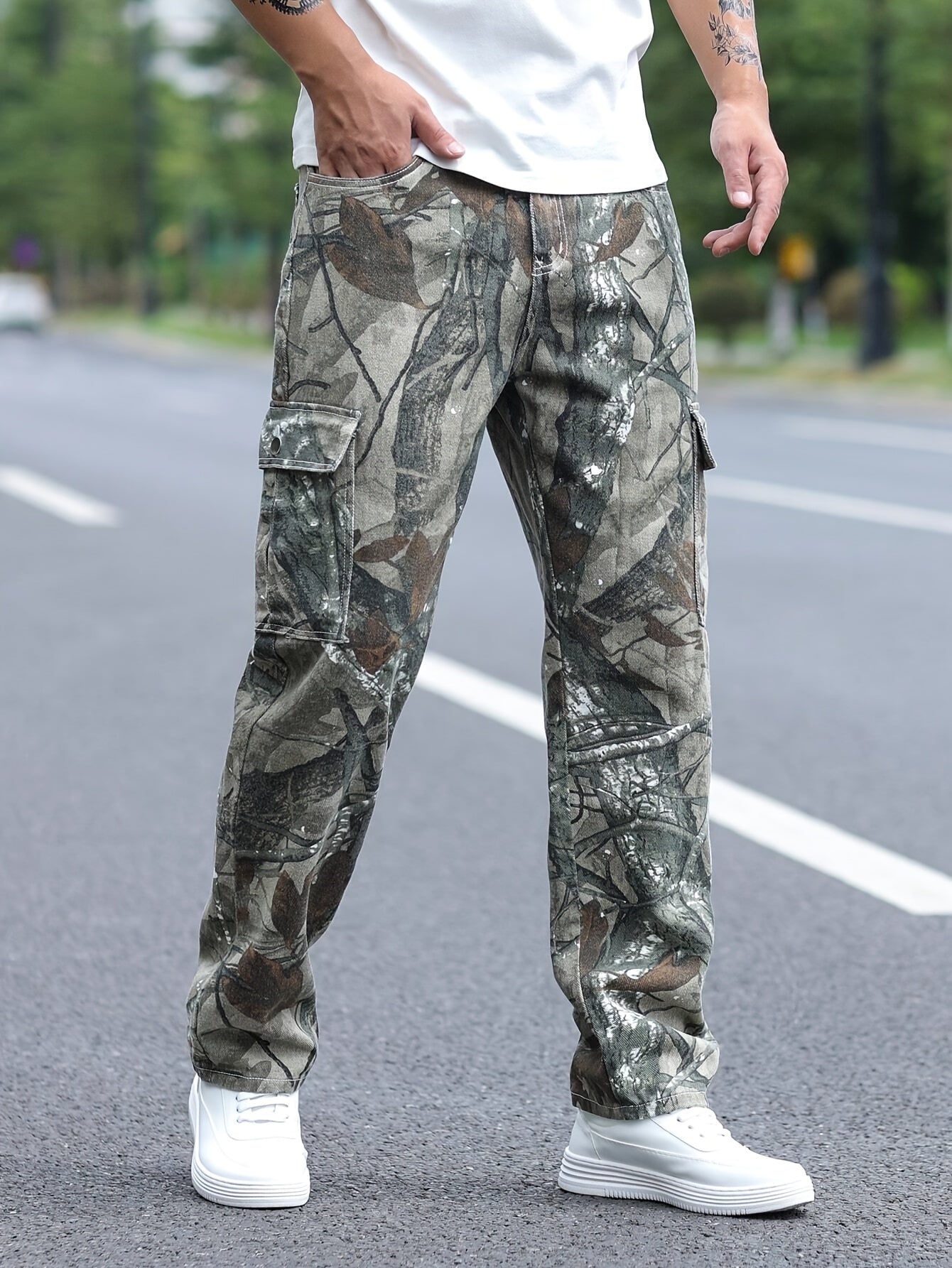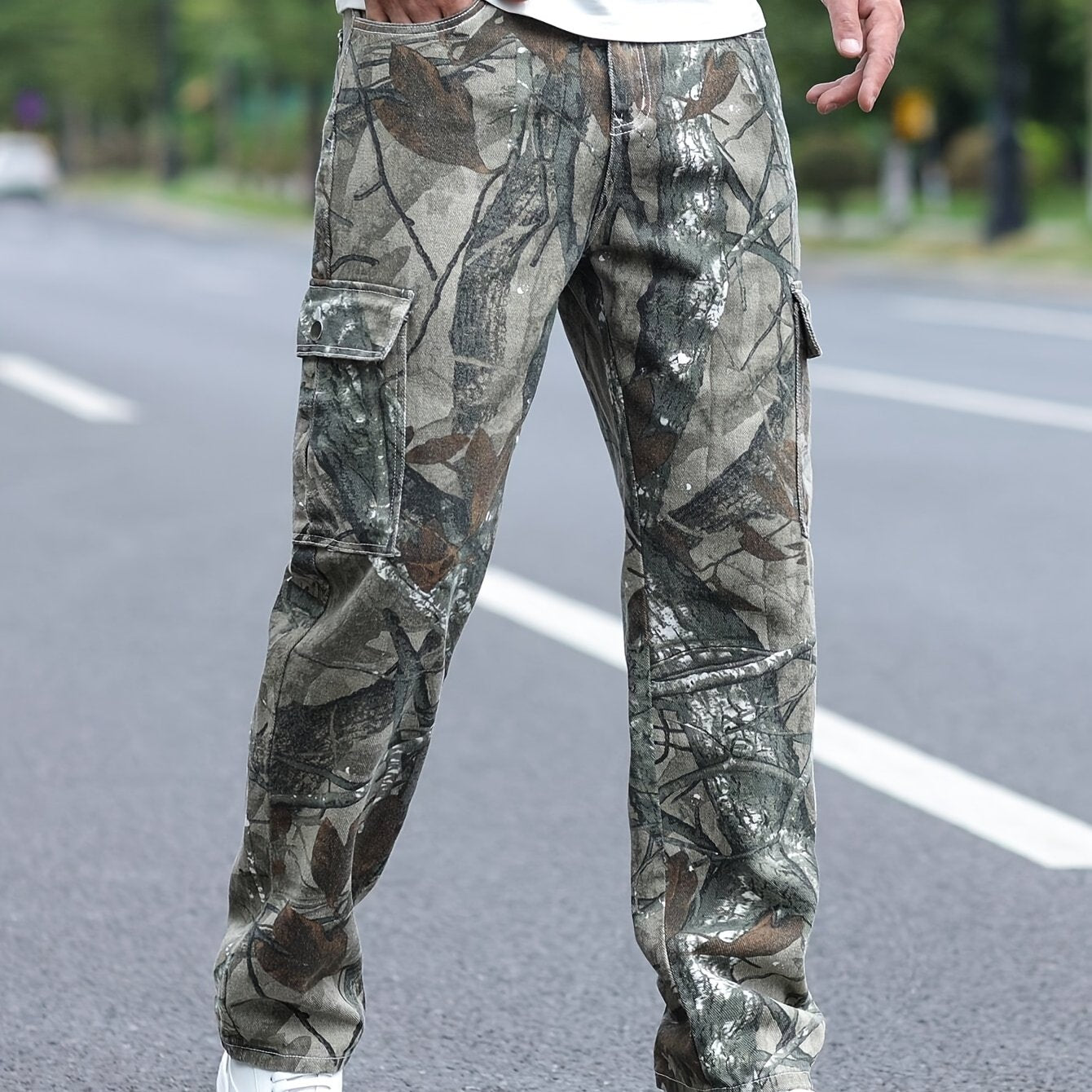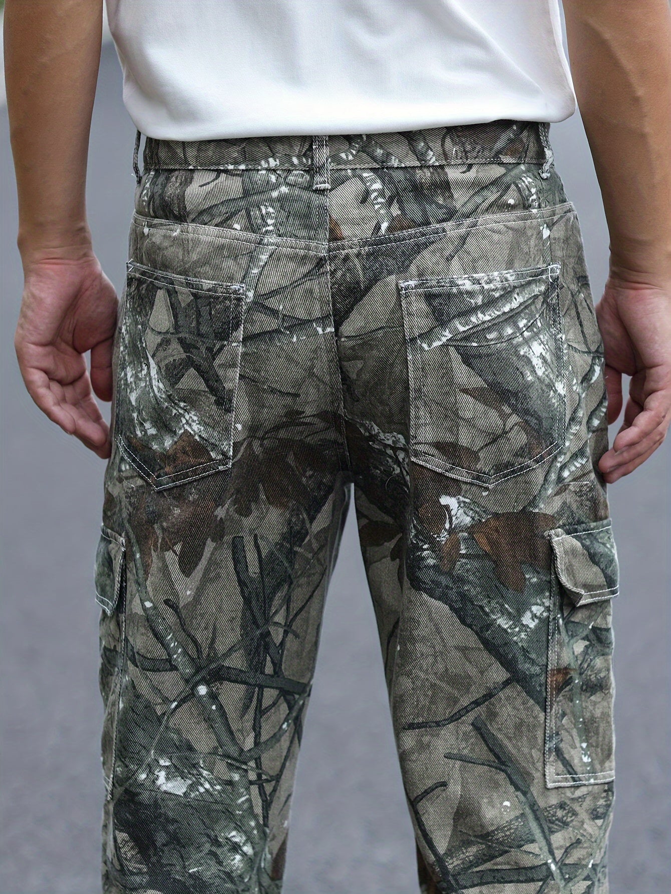Men's Camo Flap Pockets Denim Pants | Loose Style Jeans