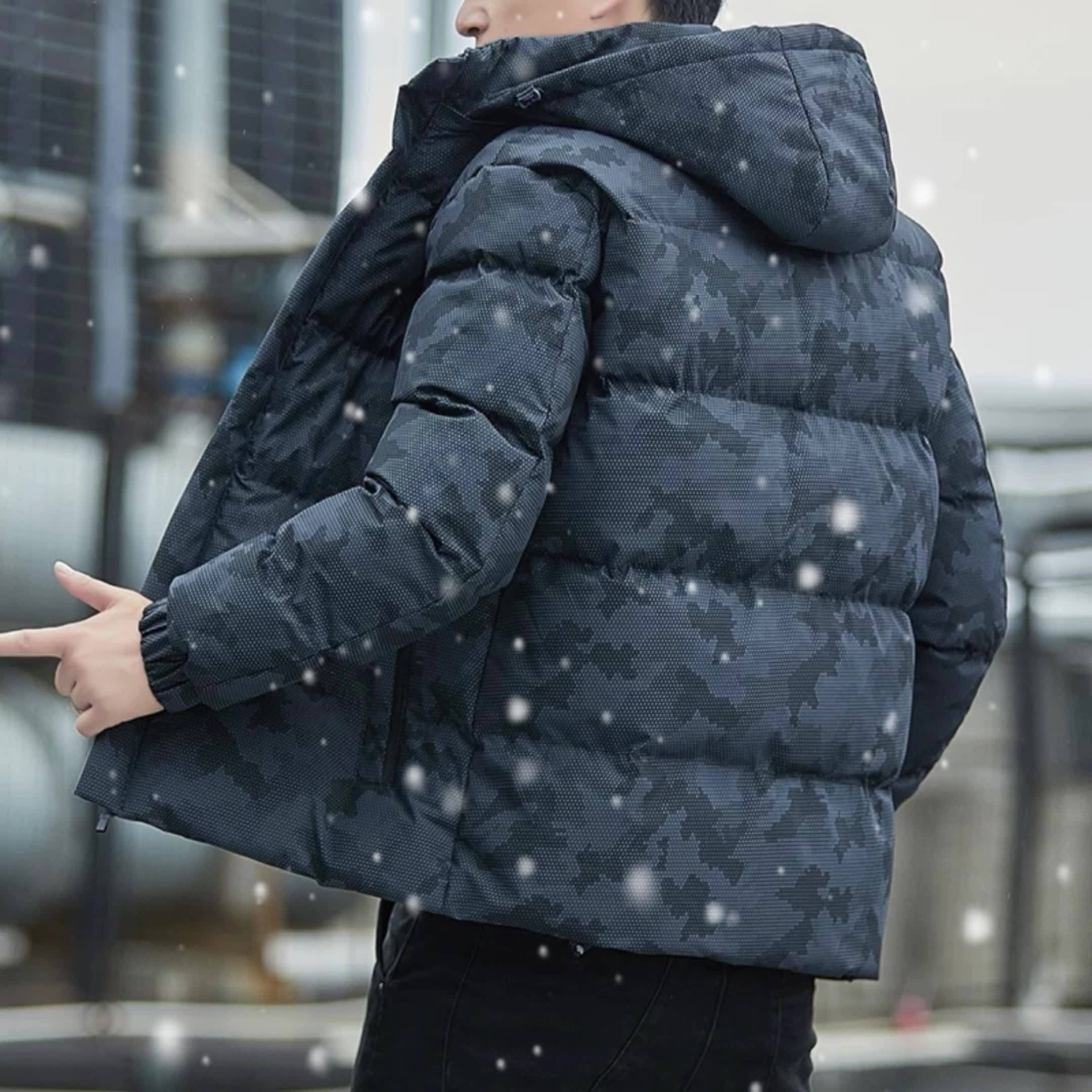 Stay warm and stylish with our Men's Camo Hooded Jacket, crafted from a high-quality down alternative that offers the warmth and comfort of real down without the weight. Made from durable polyester, this jacket is designed to withstand the elements while providing excellent insulation. The bold camouflage pattern adds a rugged touch, while the zipper detail enhances the jacket's modern, functional design. The adjustable hood provides extra protection from the cold, making it perfect for outdoor adventures or casual wear. Whether you're hiking, exploring, or simply enjoying a chilly day, this camo hooded jacket combines style and practicality.