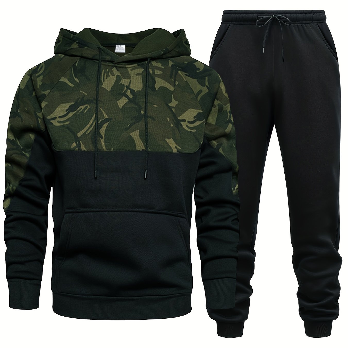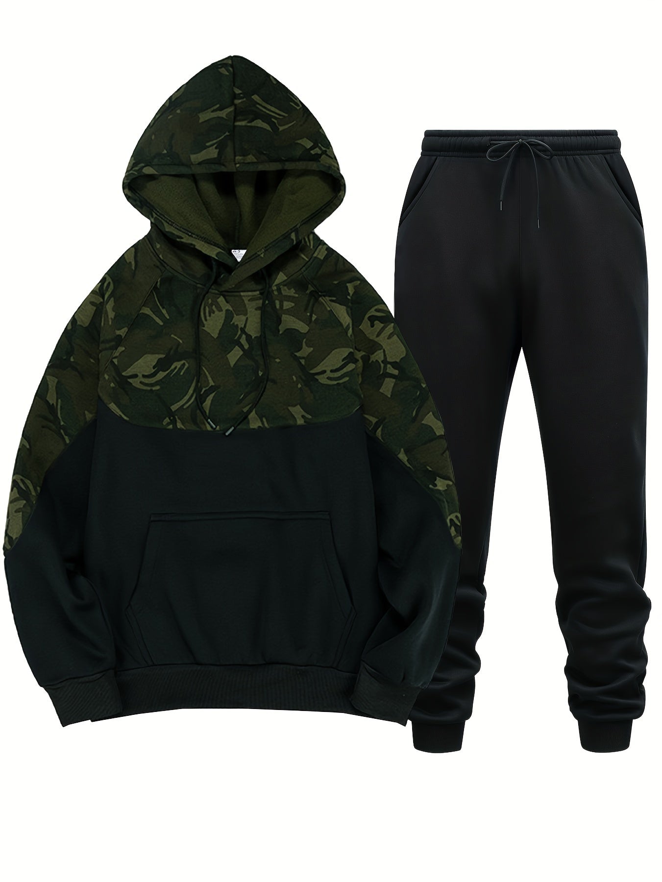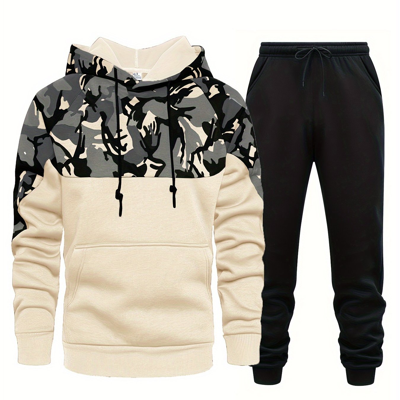 Men's Camo Hoodie & Sweatpants Set | Black, Apricot, Army Green