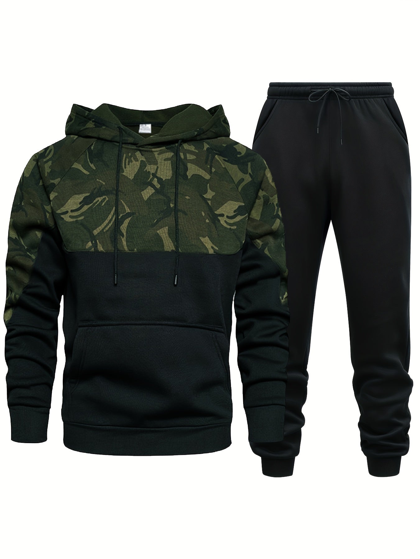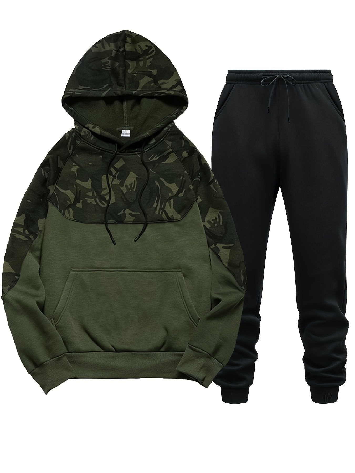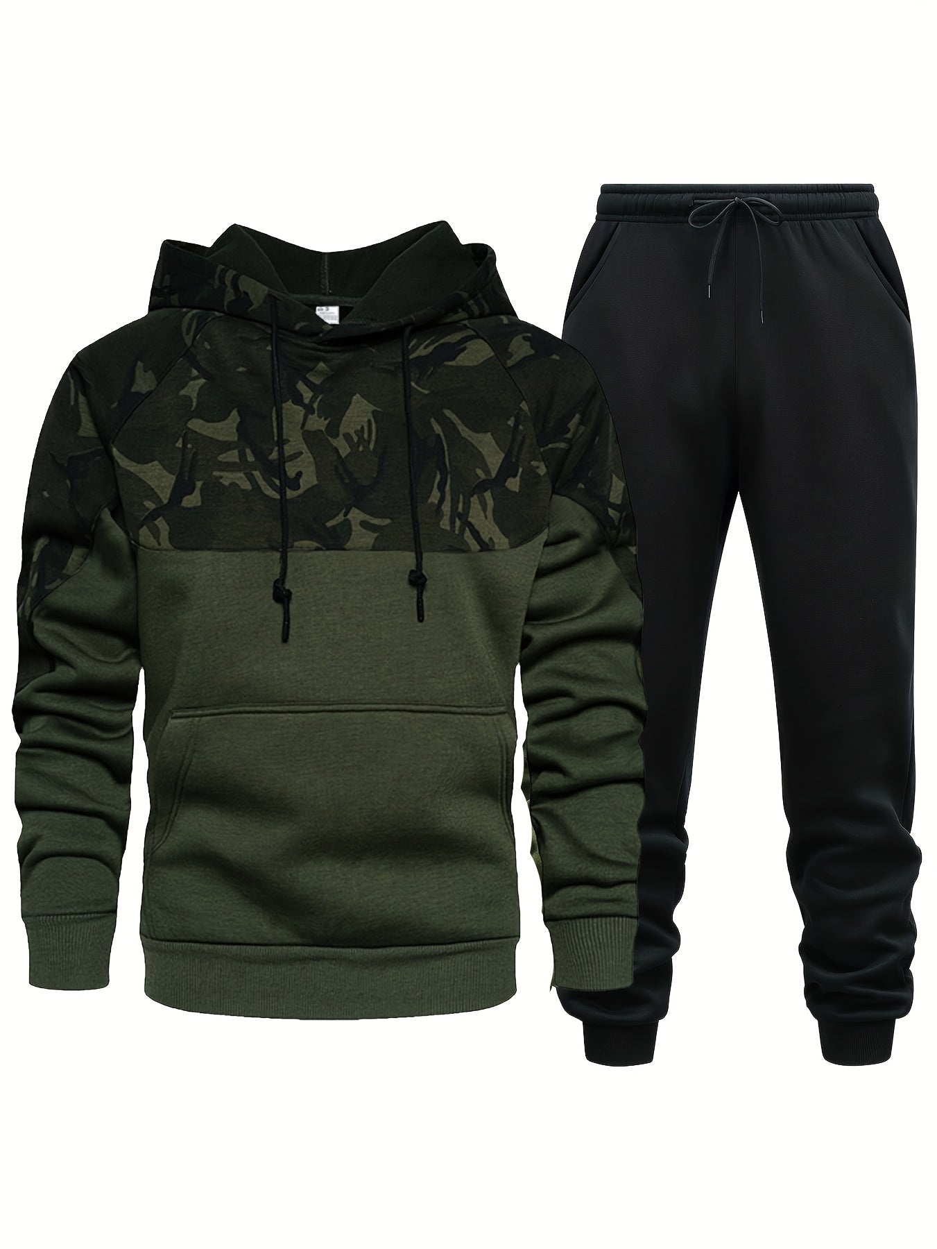 Men's Camo Hoodie & Sweatpants Set | Black, Apricot, Army Green