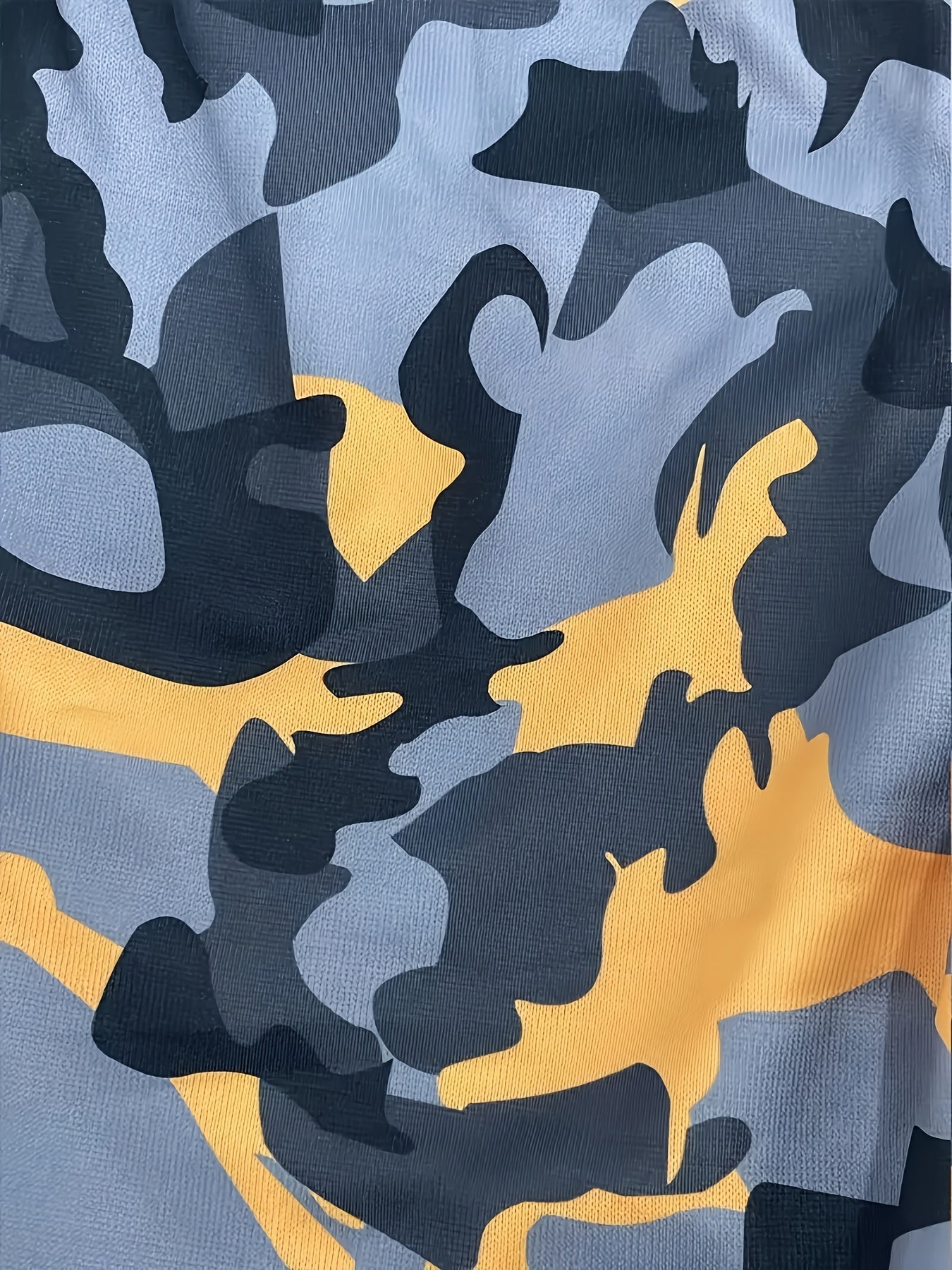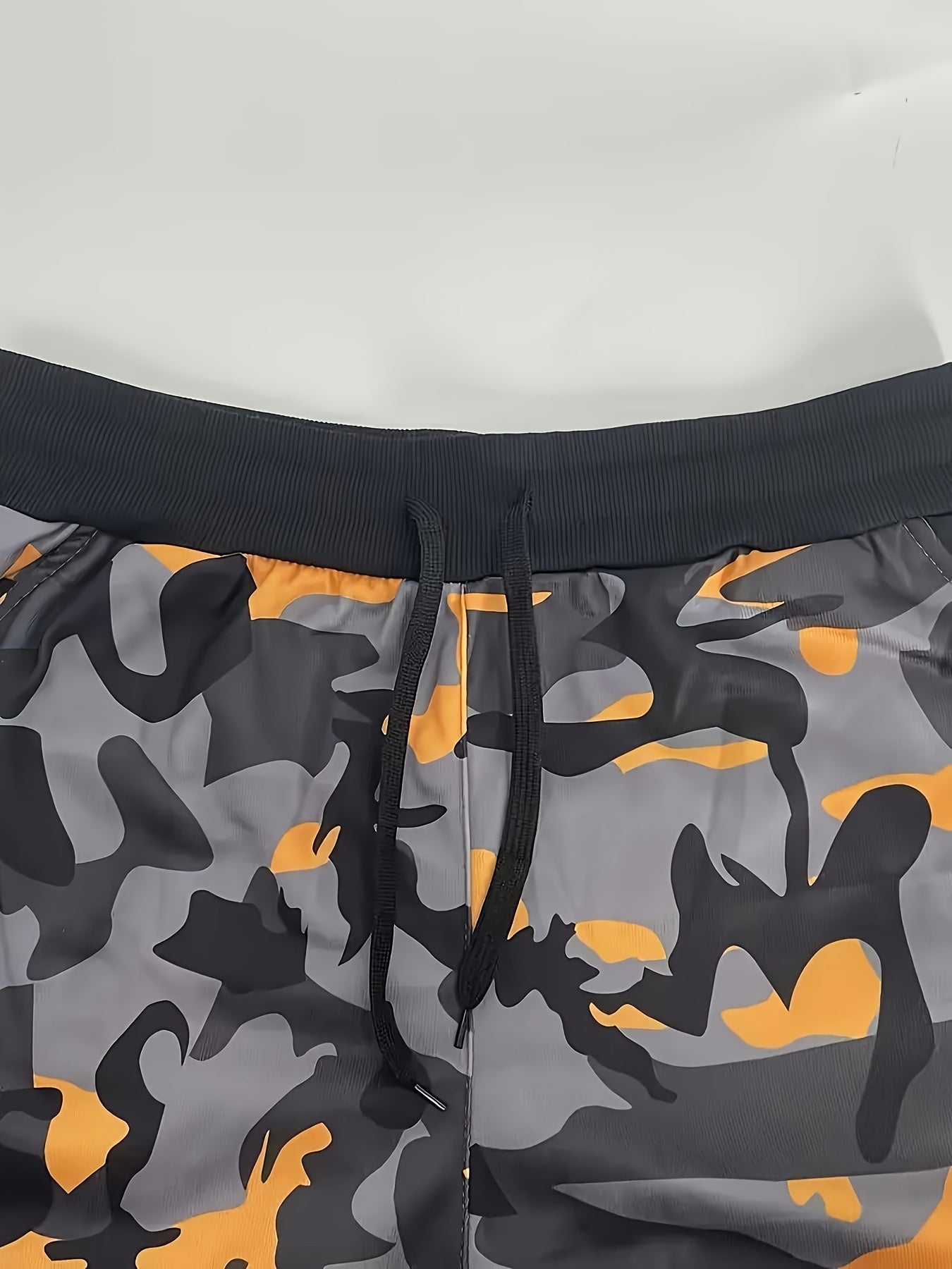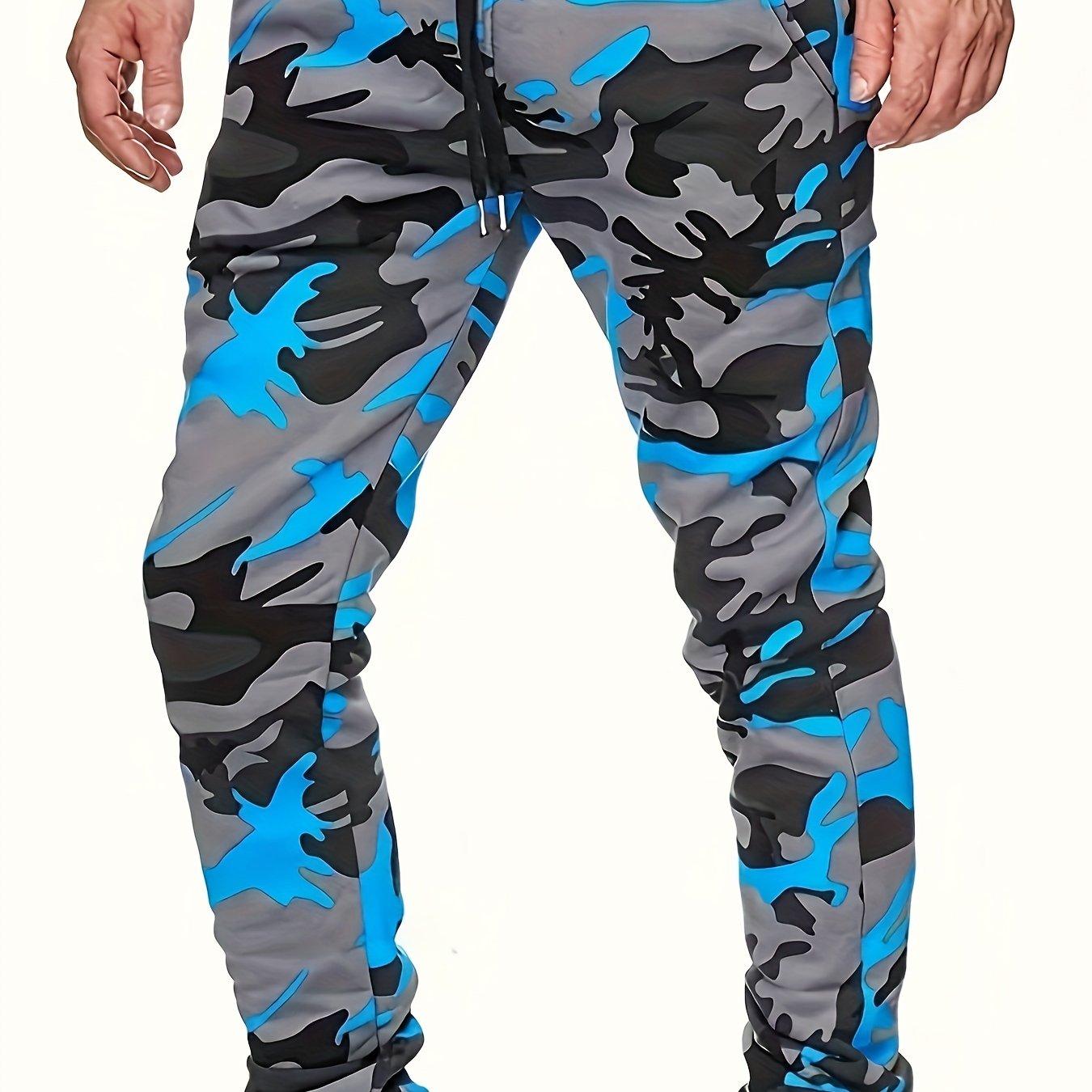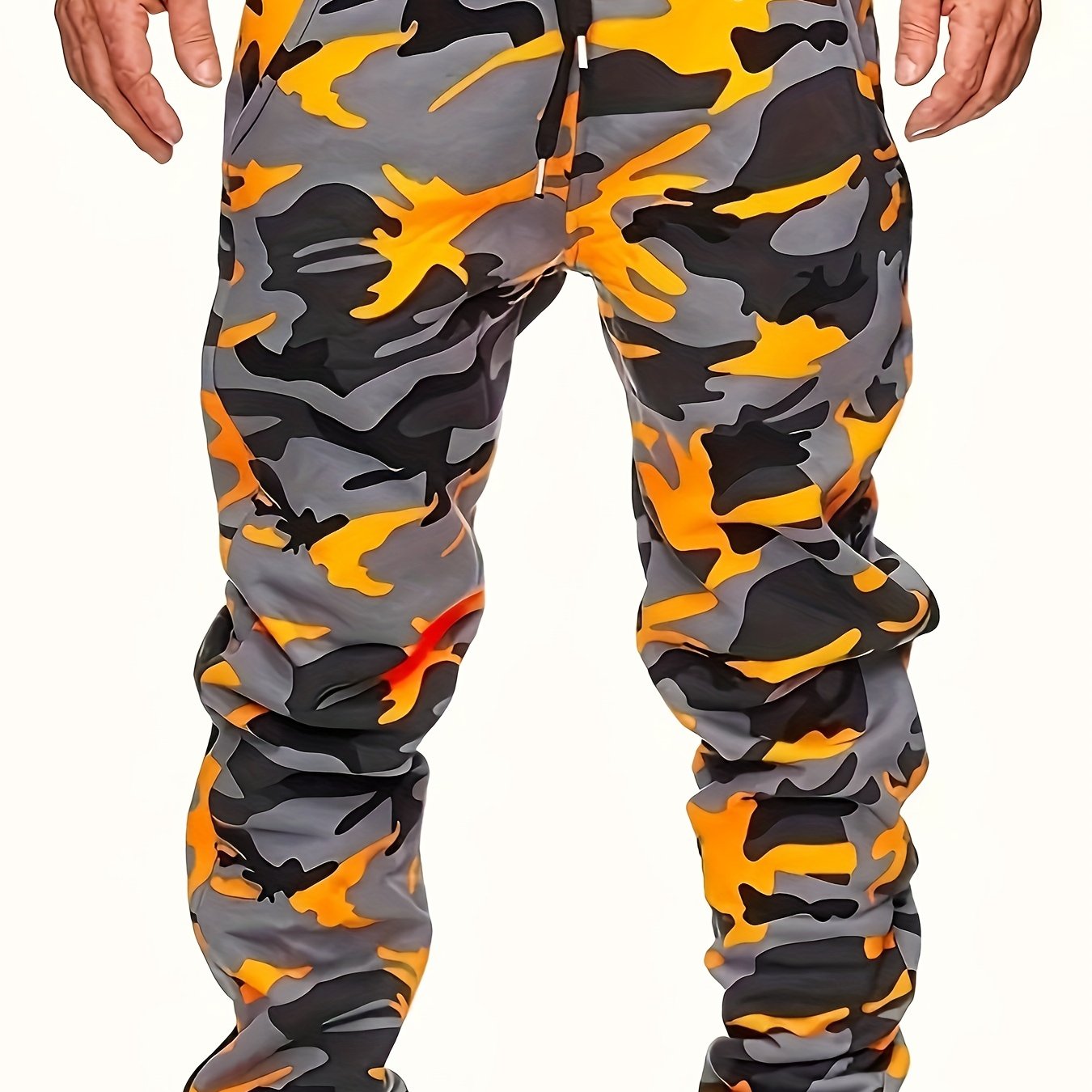These men's joggers feature a stylish camo design in five versatile colors: yellow, grey, orange, blue, and green. Stay comfortable and on-trend during any activity with the soft and durable fabric. Perfect for everyday wear or athletic endeavors.