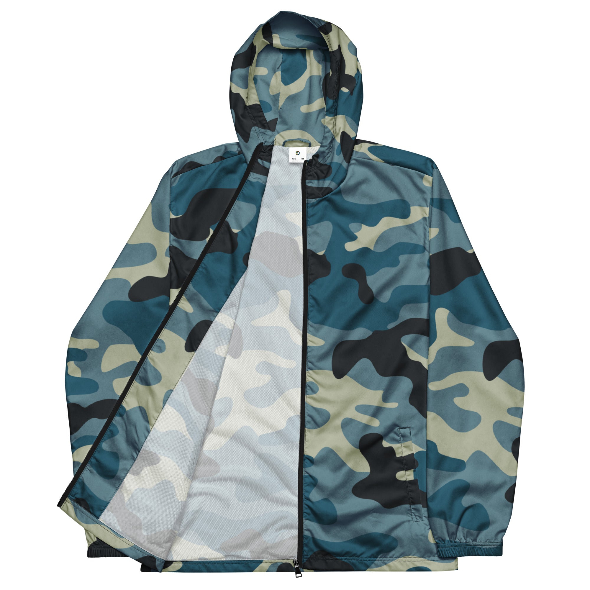 Men's Camo Windbreaker in Shades of Blue and Charcoal