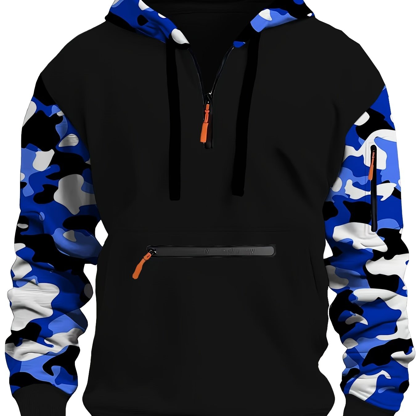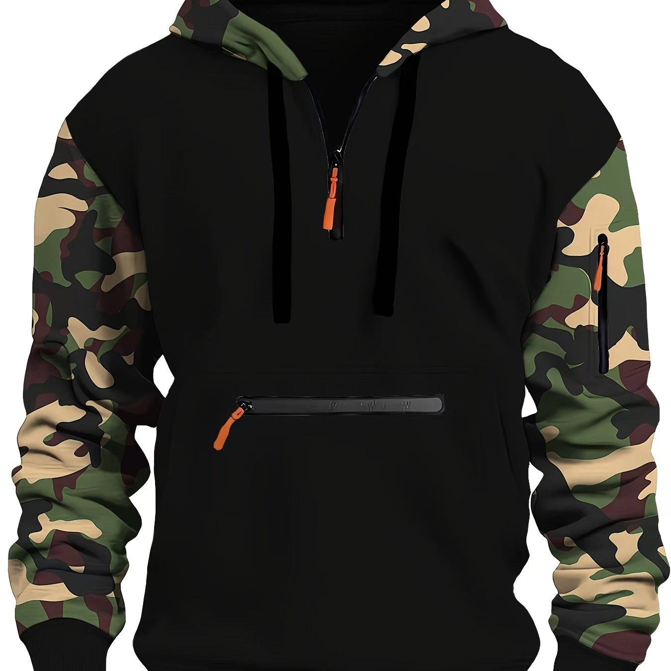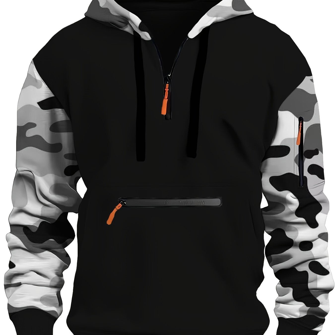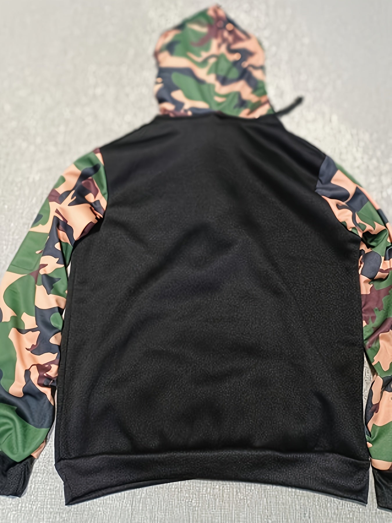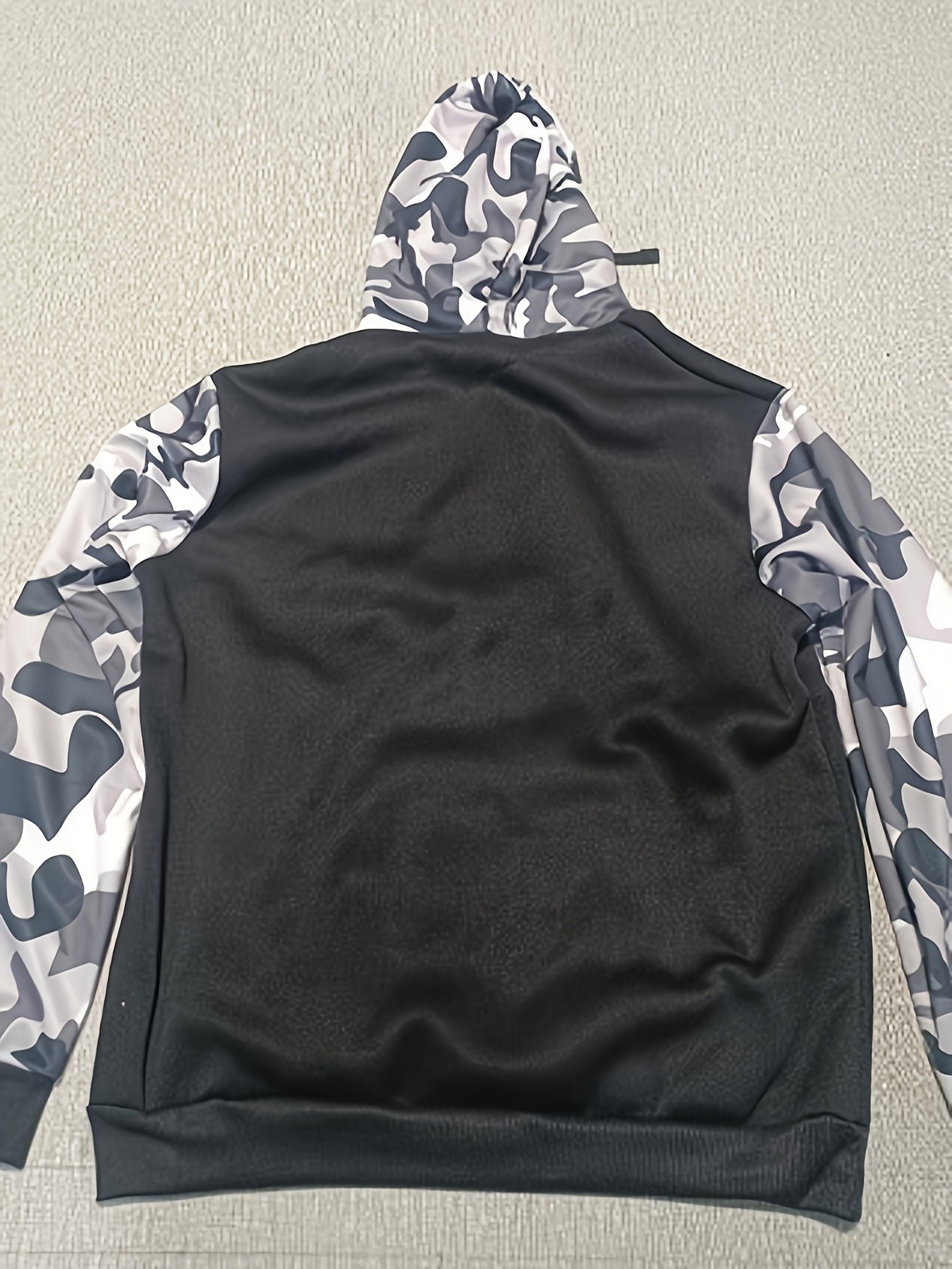 This Men's Camouflage Patchwork Hooded Sweatshirt combines comfort and style, making it an ideal choice for the fall and winter seasons. The camouflage patchwork design adds a trendy edge, while the crew neck and zipper details provide extra versatility for daily wear.