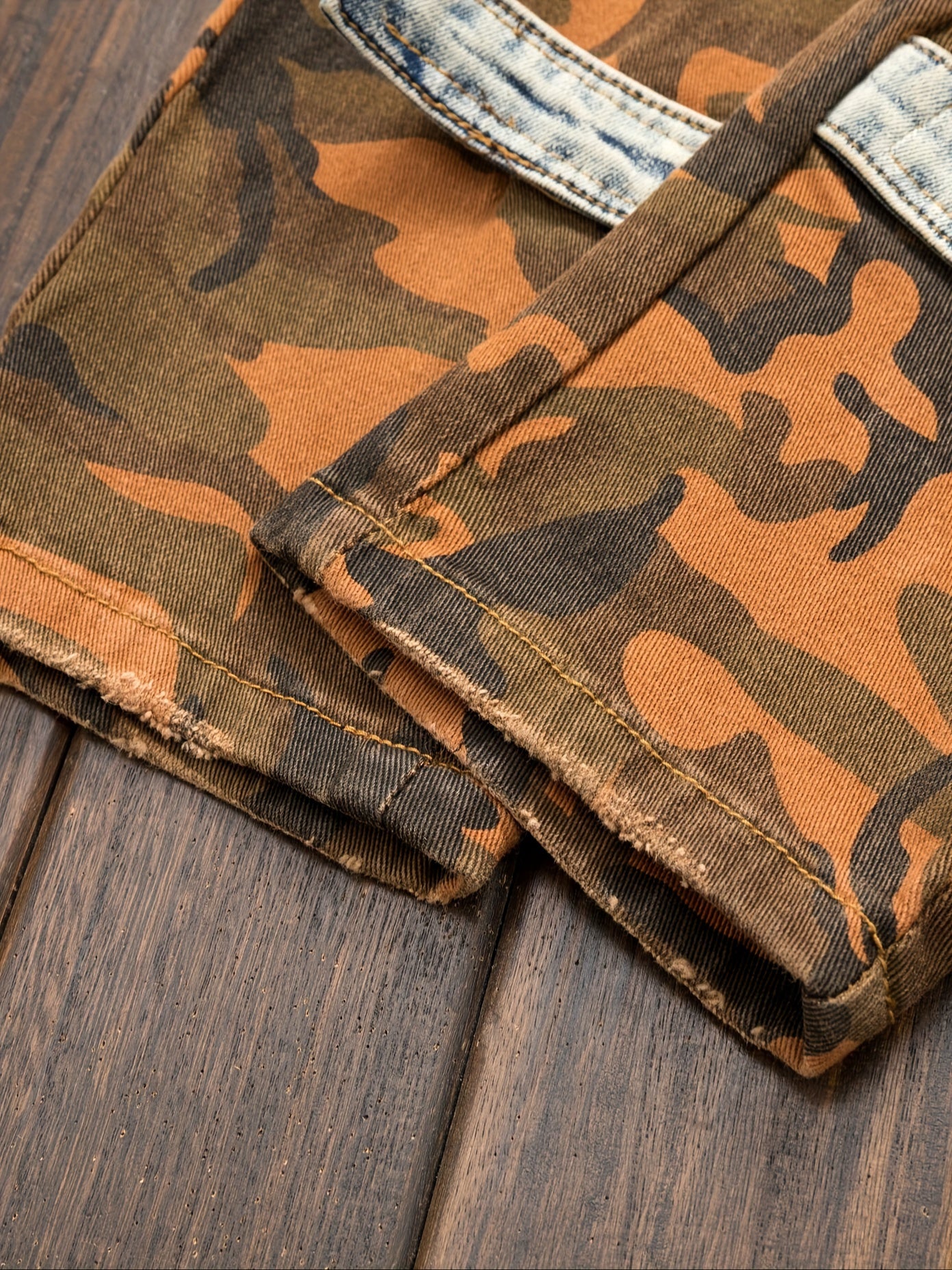 Men's Camo Light Stretch Skinny Fit Trousers | Patchwork Denim