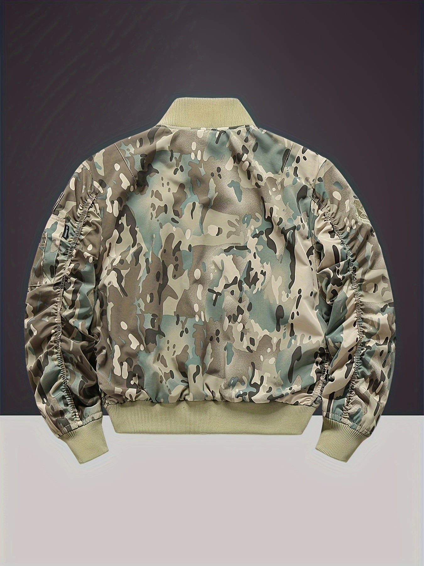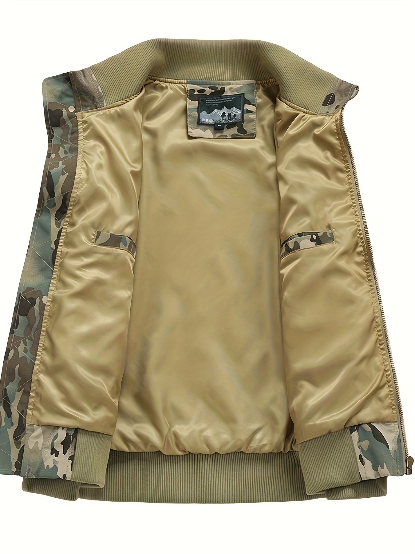 Stay stylish and comfortable with our Men's Casual Stand Collar Camouflage Print Jacket. Made with 100% polyester and featuring a baseball collar and zipper closure, this short length jacket is perfect for casual occasions. Machine washable for easy maintenance. Look effortlessly cool with this classic style.