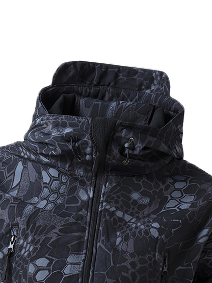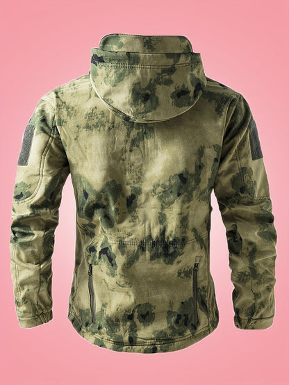 Men's Military Camo Jacket | Hooded Windbreaker with Zippered Pockets, Removable Hood