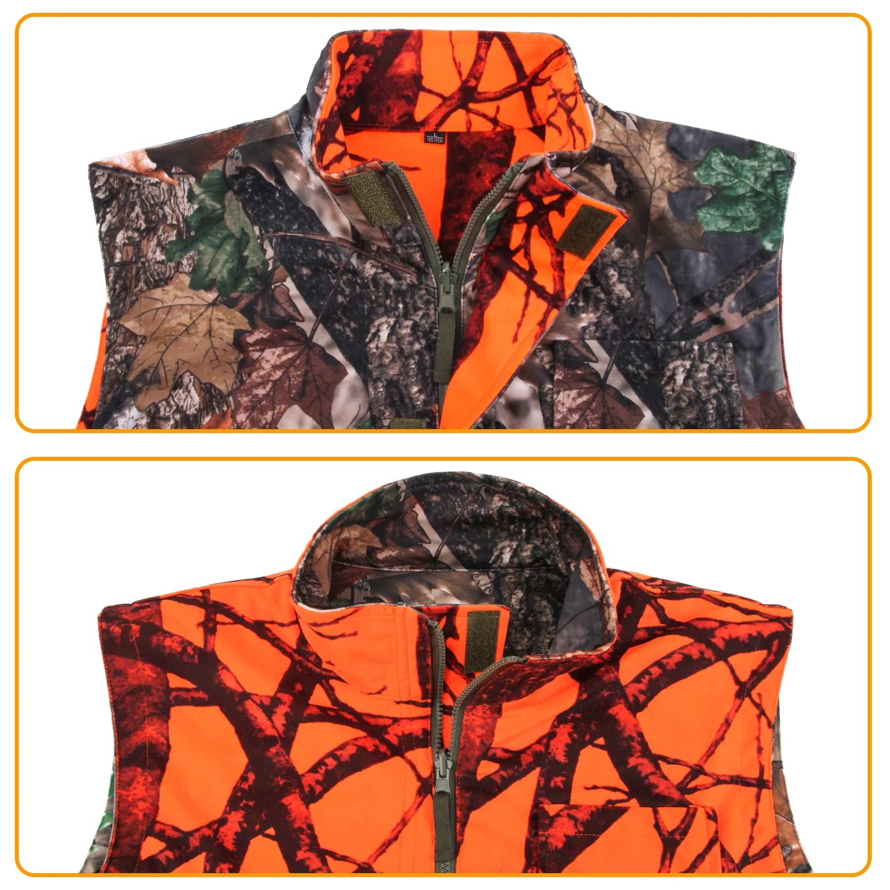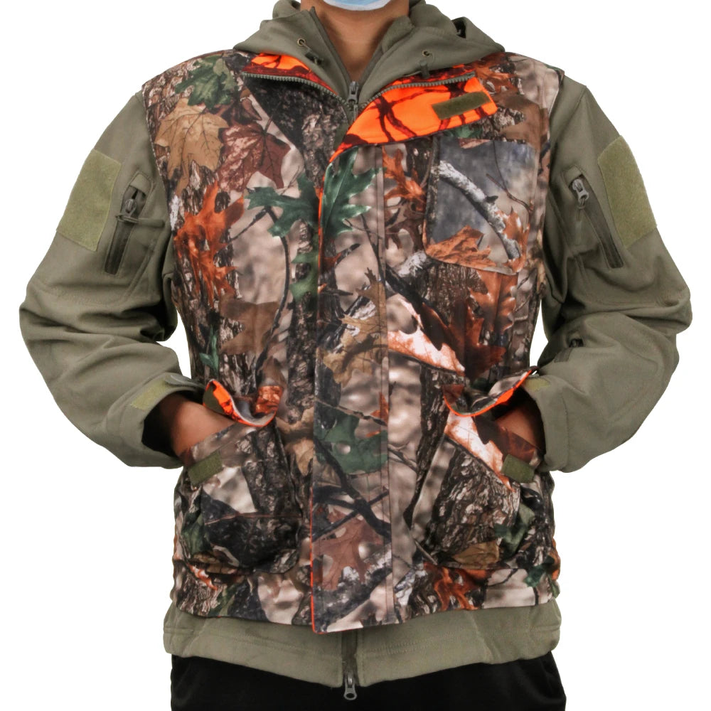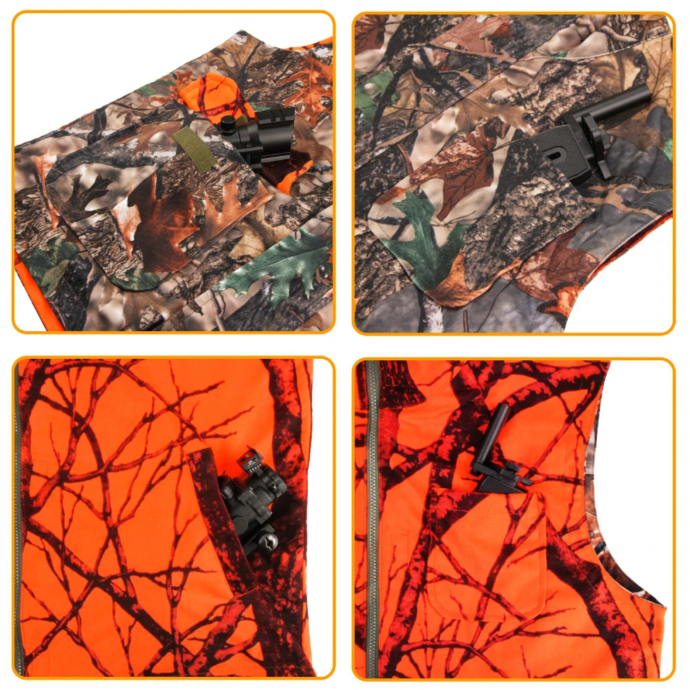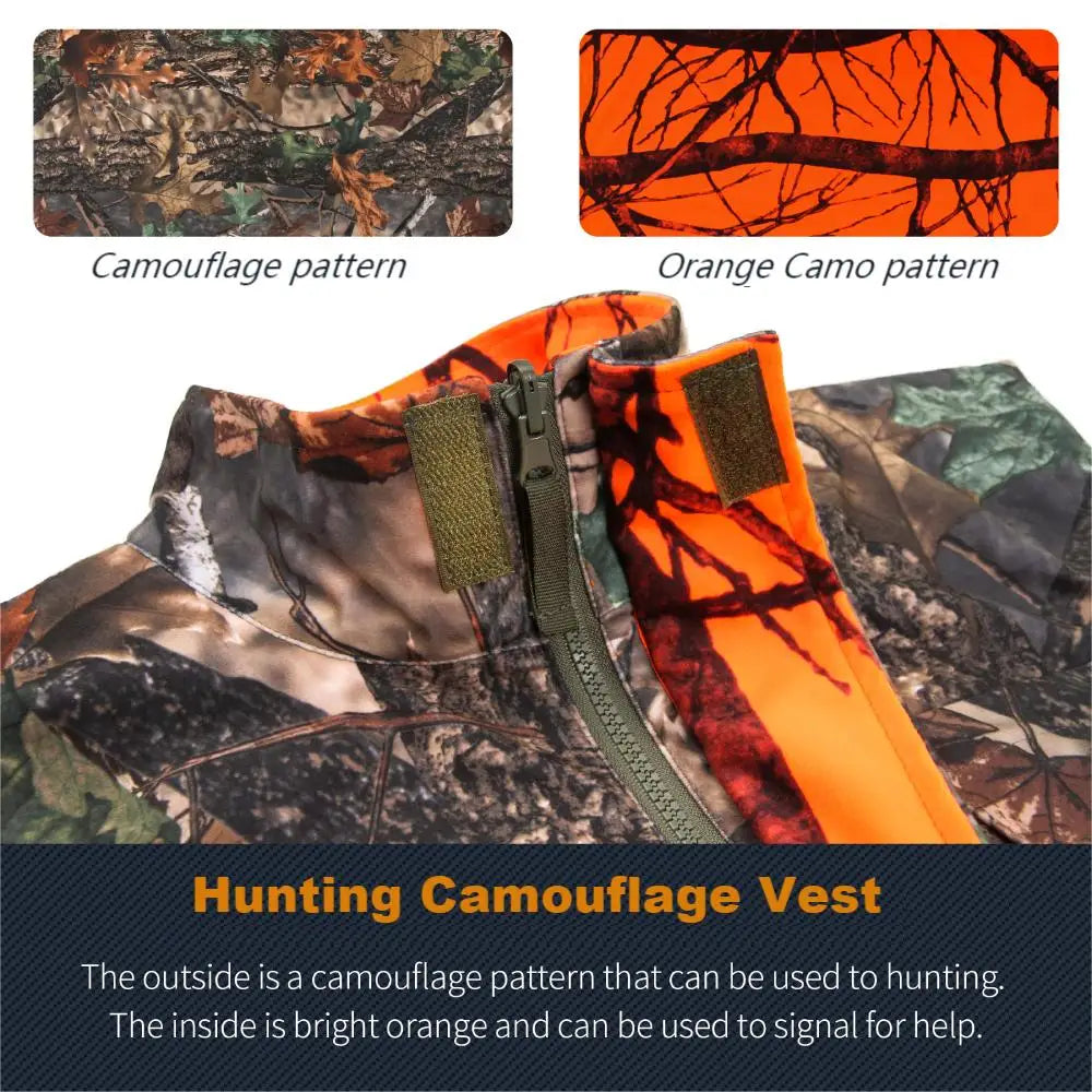 Men's Orange Camouflage Hunting Vest: Sleeveless, Multi-Pocket