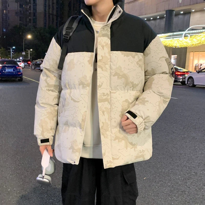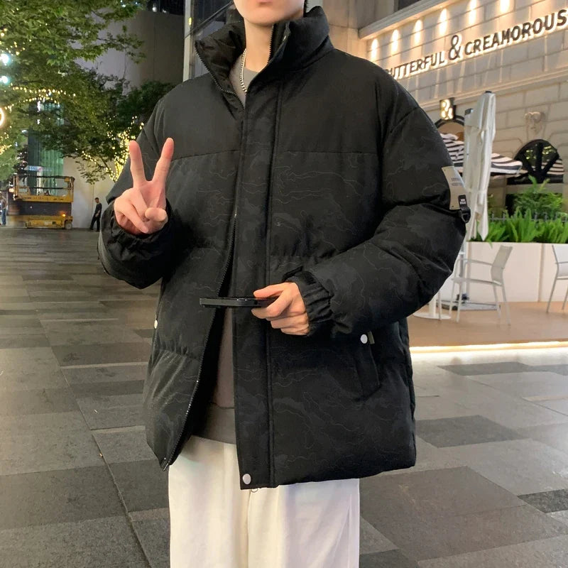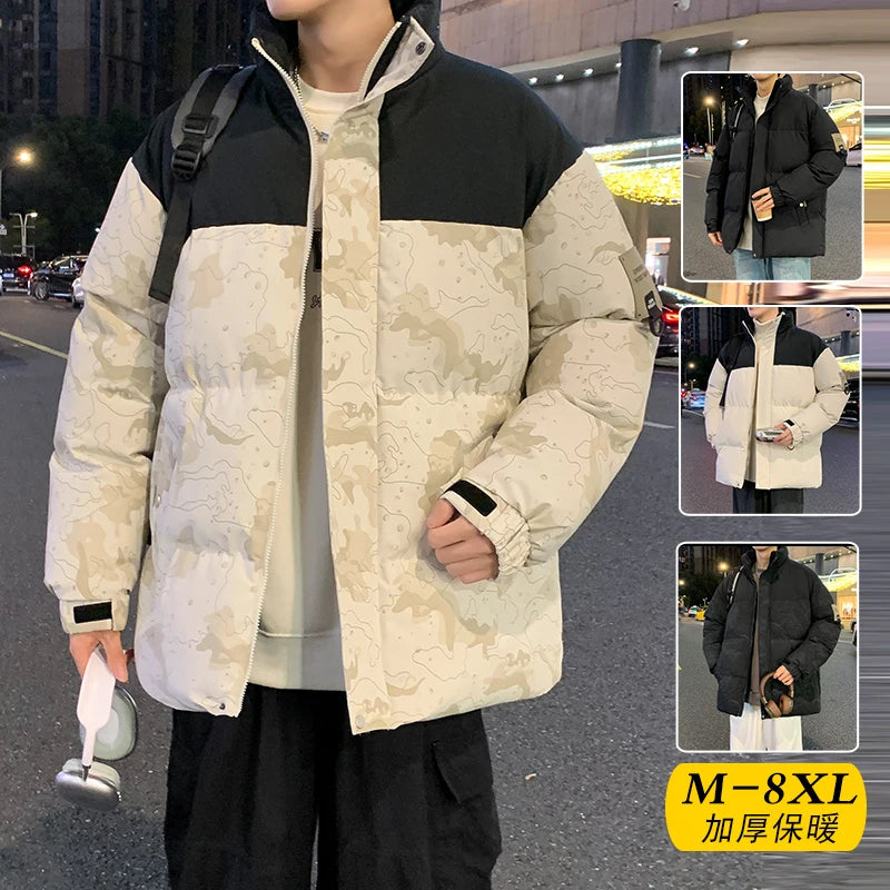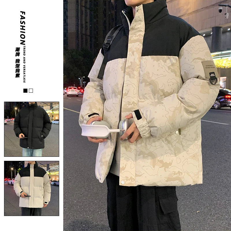 Stay warm and stylish with the Men's Oversized Camouflage Quilted Jacket—a must-have for winter. Designed for comfort and warmth, this thick, padded coat is perfect for casual wear, featuring a loose fit that provides ease of movement and a modern, street-style look. The stand collar adds extra protection against chilly winds, making it an excellent choice for cold weather.