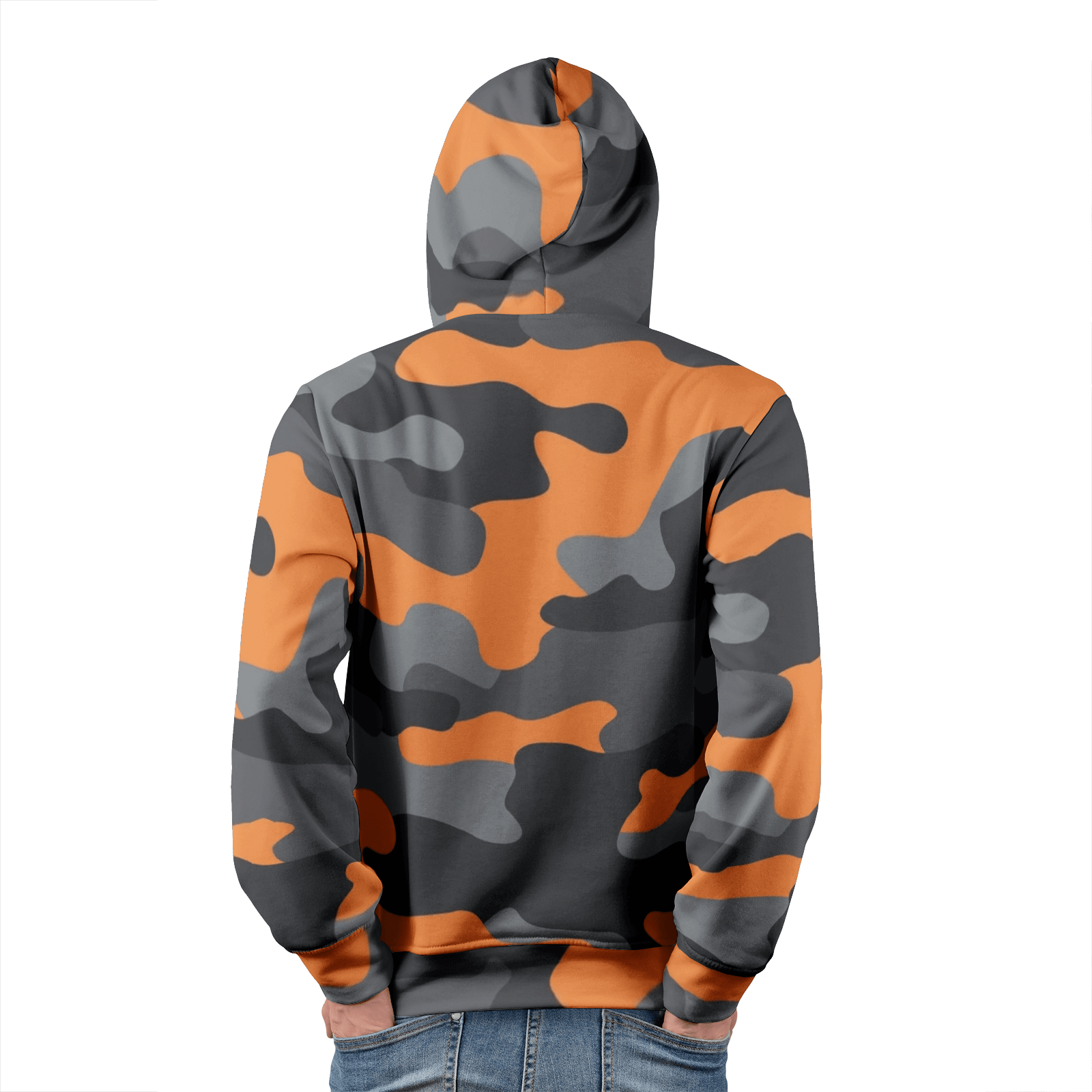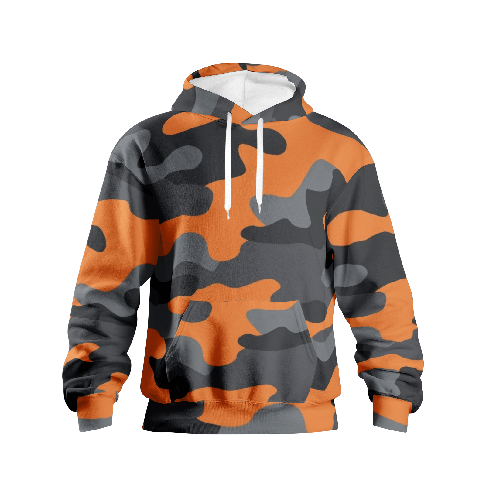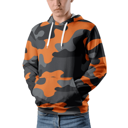 Men's Pullover Hoodie | Orange, Black and Gray Camouflage