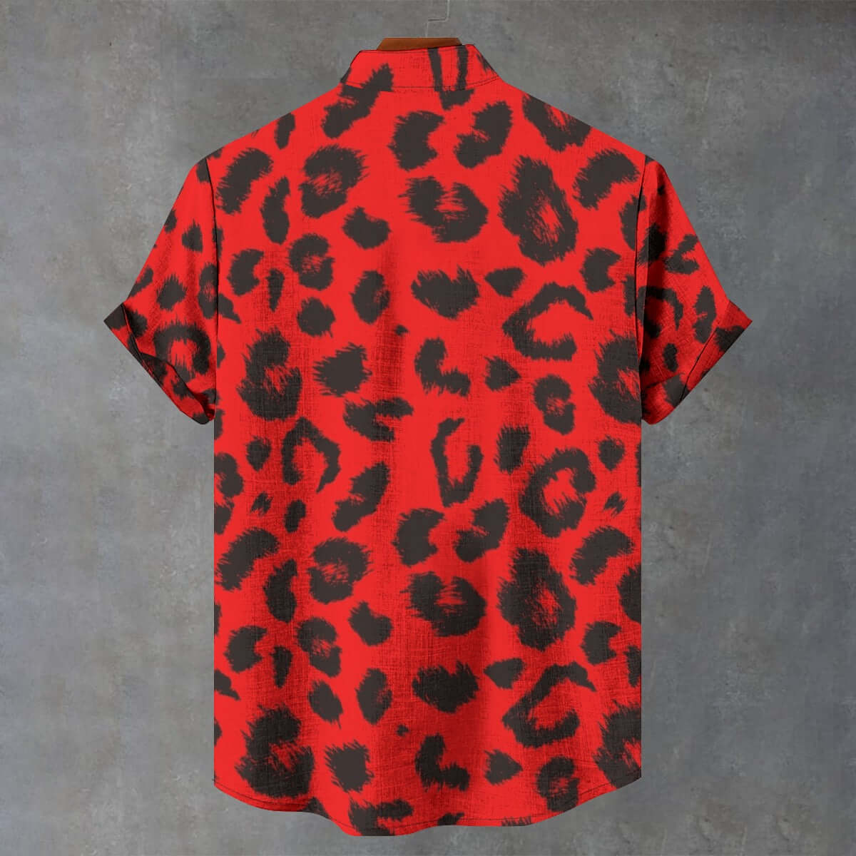 Command attention with our Men's Red Leopard Print Short Sleeve Shirt. Crafted from high-quality cotton, this vibrant shirt feels wonderfully soft against your skin, ensuring unparalleled comfort while being environmentally friendly. The refined small stand-collar design adds a touch of elegance, and the contemporary curved hem brings a dynamic and stylish element. Pair this bold red leopard print shirt with your favorite casual wear to effortlessly highlight your unique and daring taste. Get yours now!