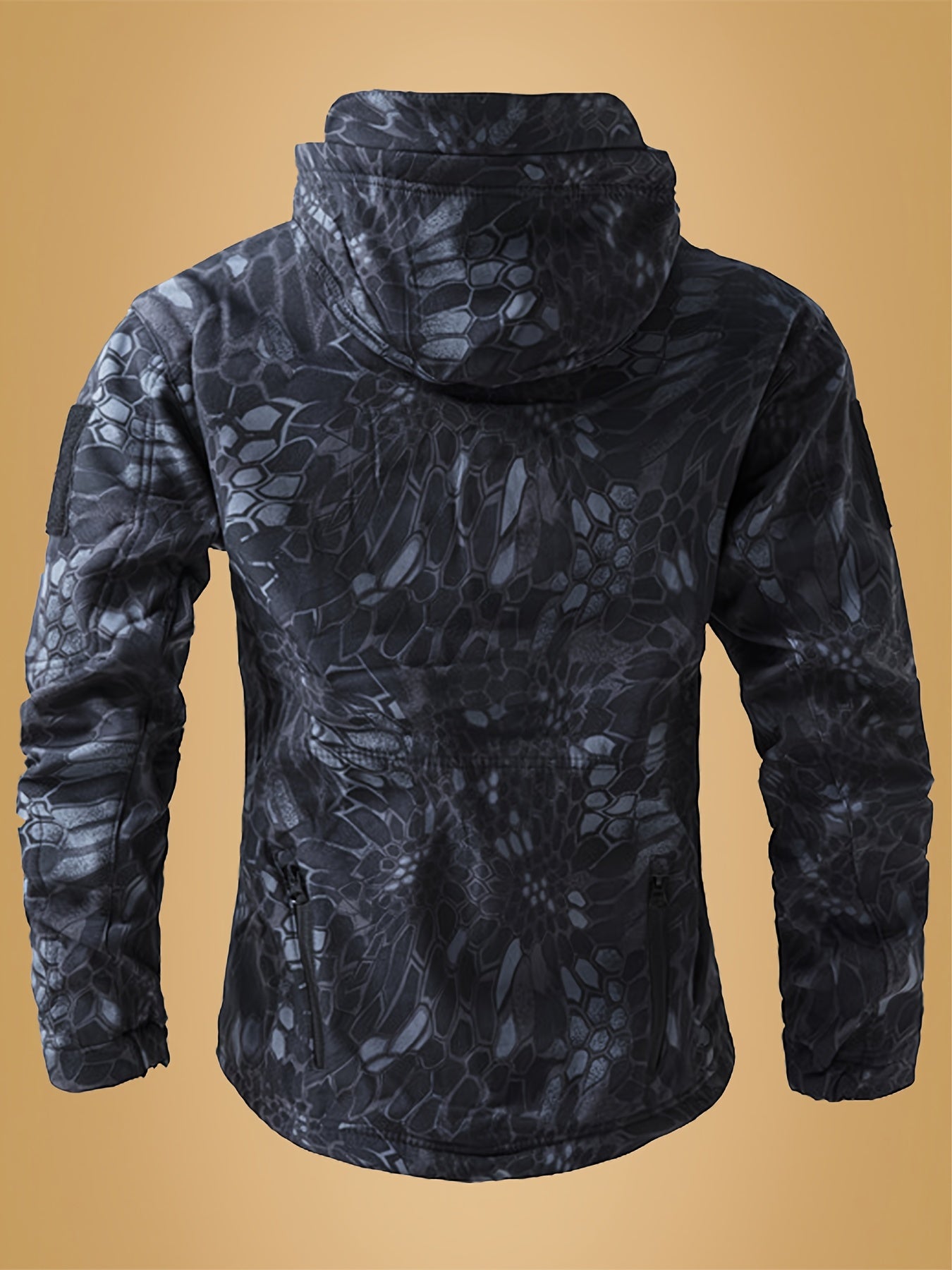 Men's Tactical Camo Windbreaker | Waterproof, Mid-Length Military Jacket with Hood