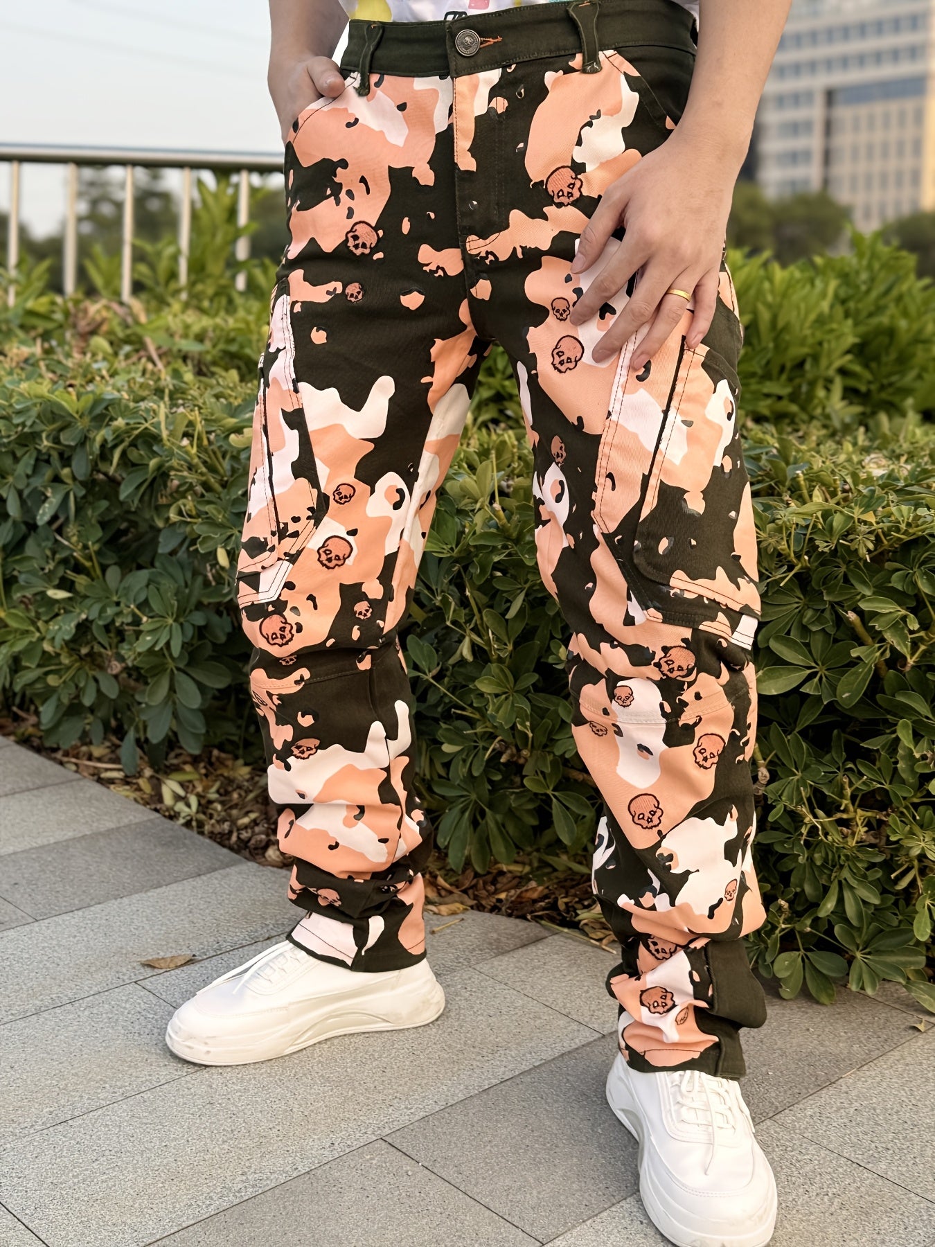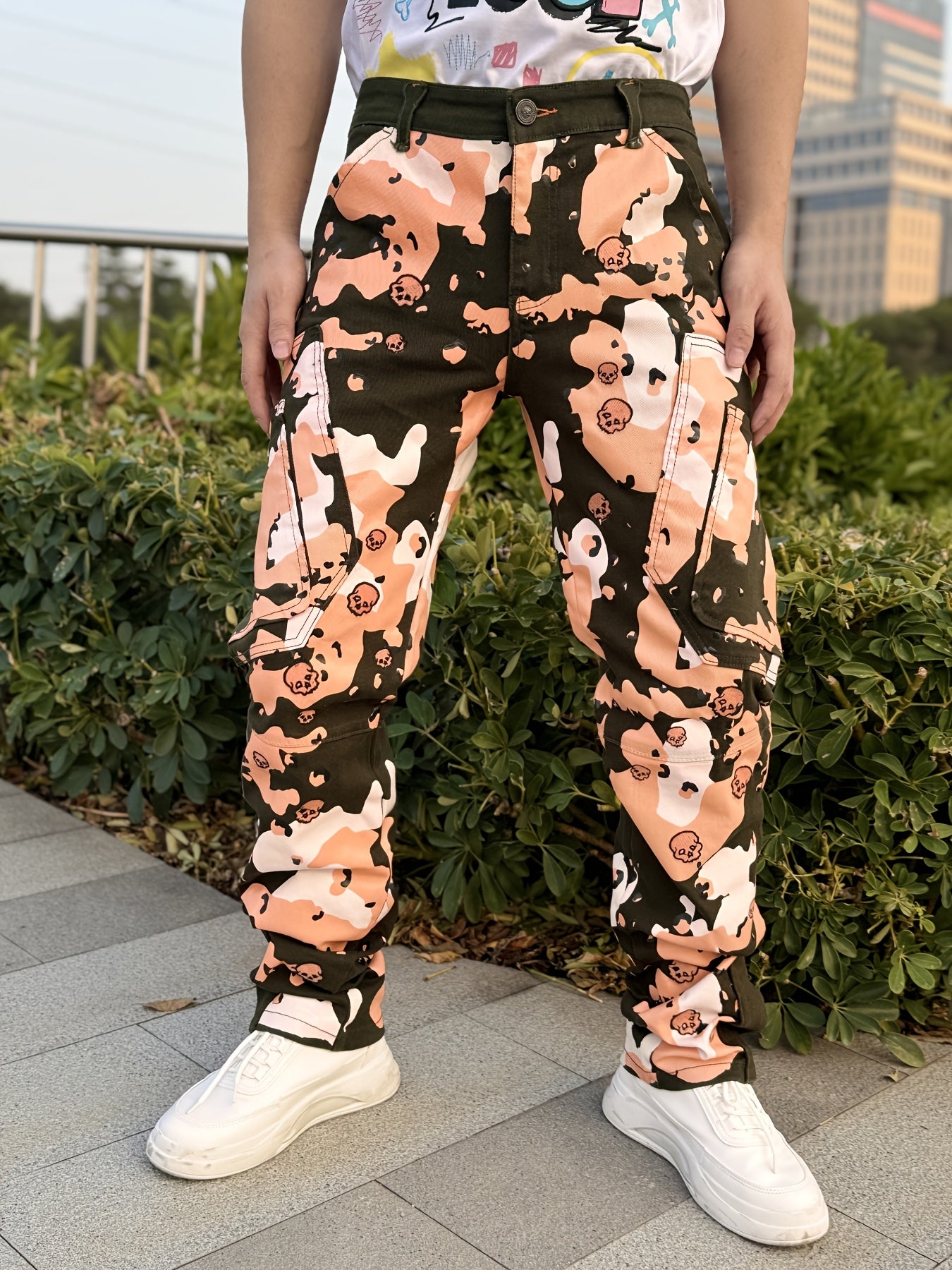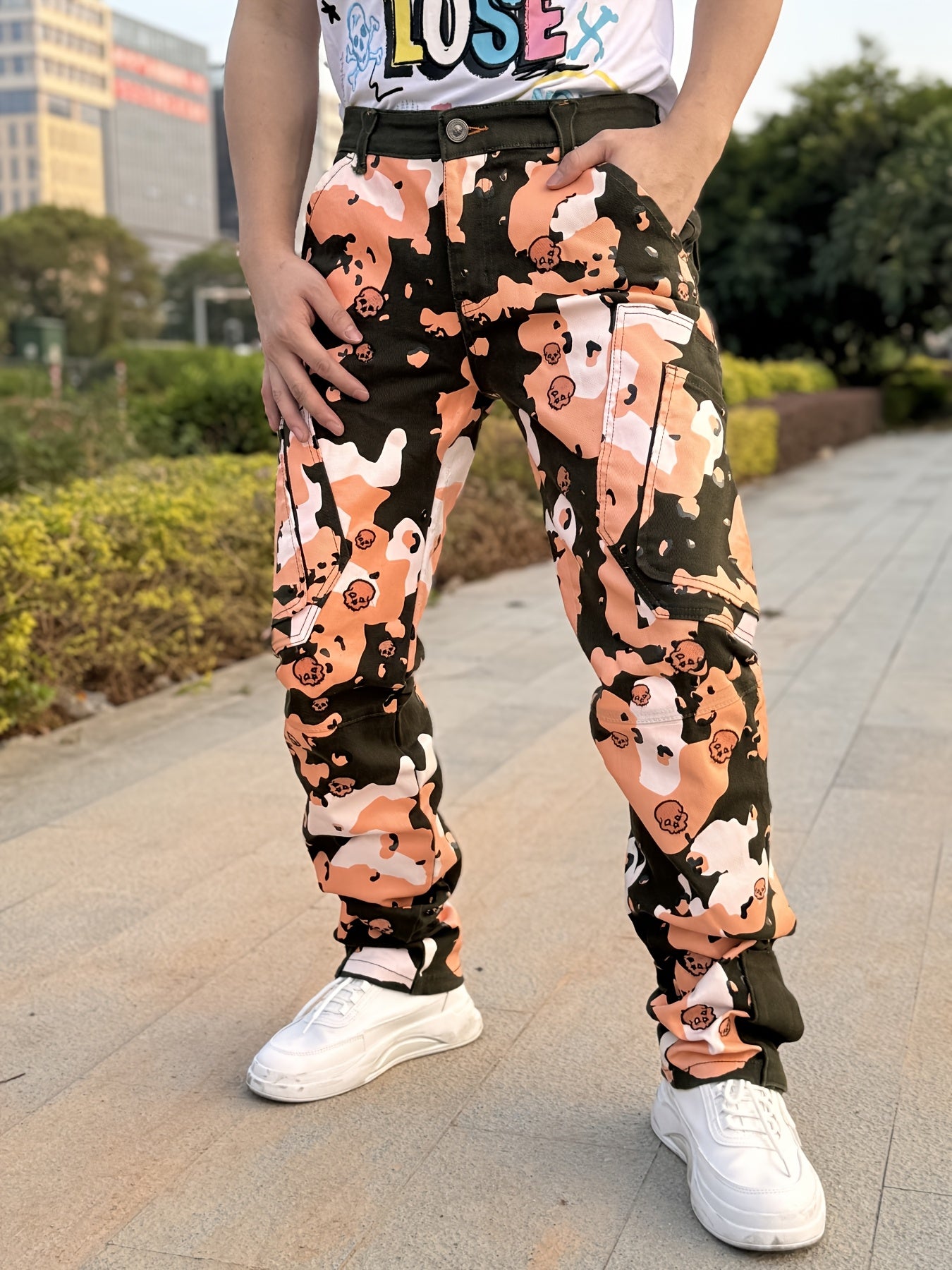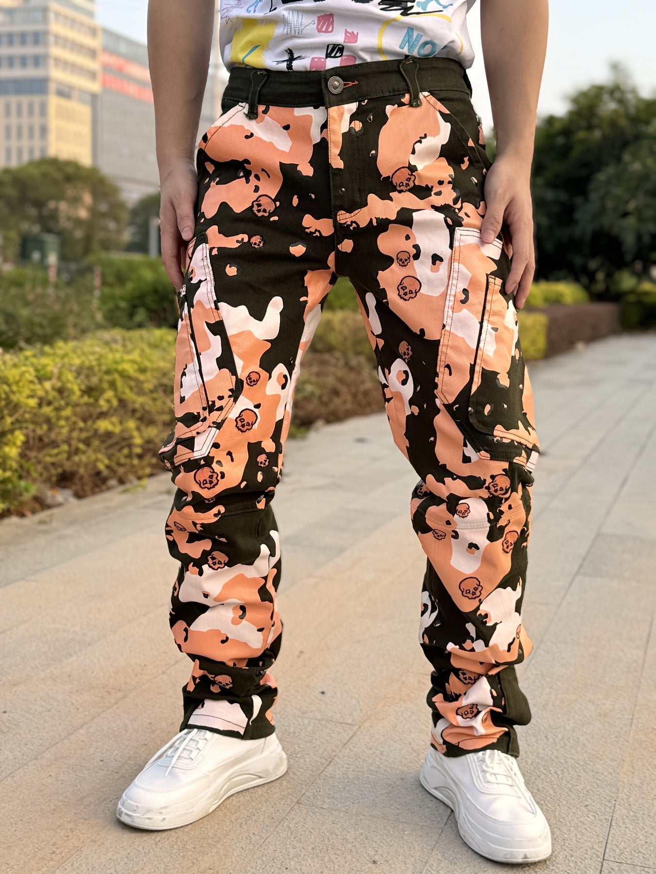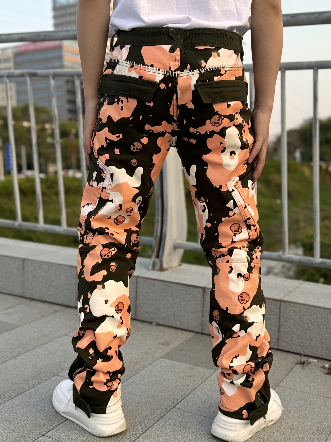 Our Men's Twill Stretch Pants offer a bold combination of style and comfort. Featuring a full print design and intricate bone embroidery, these pants make a unique fashion statement. The stretch twill fabric provides flexibility and ease of movement, ensuring comfort throughout the day. Equipped with a foot zipper, these pants offer a modern, adjustable fit, perfect for customizing your look. Ideal for casual outings or streetwear, these pants blend edgy style with practical features, making them a must-have for anyone looking to elevate their wardrobe with trendy, high-quality design.