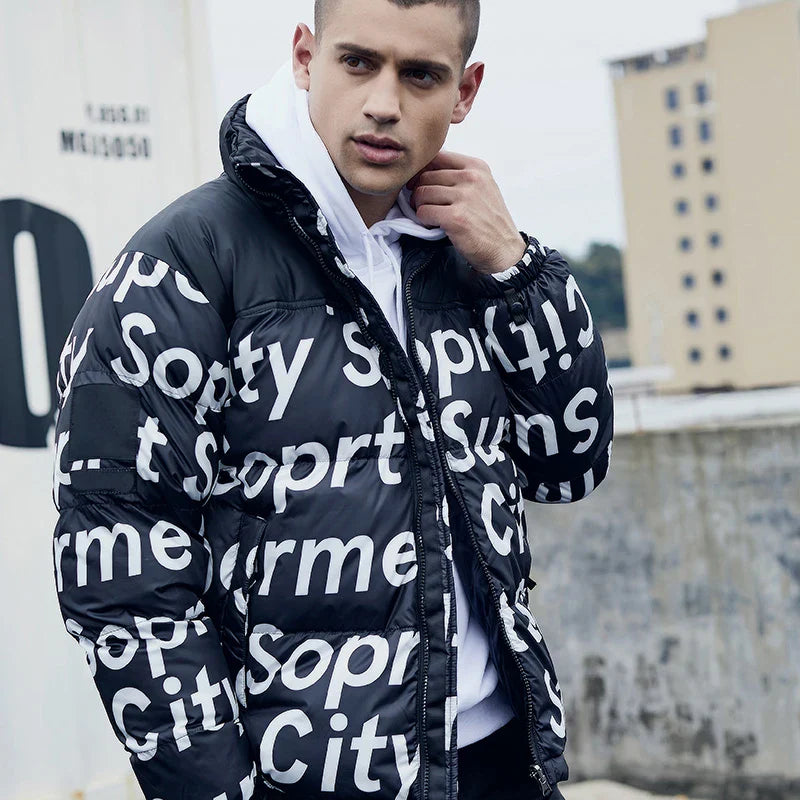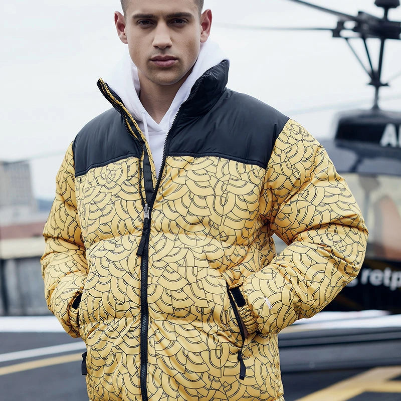 Men's Yellow Hip-Hop Print Winter Jacket