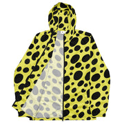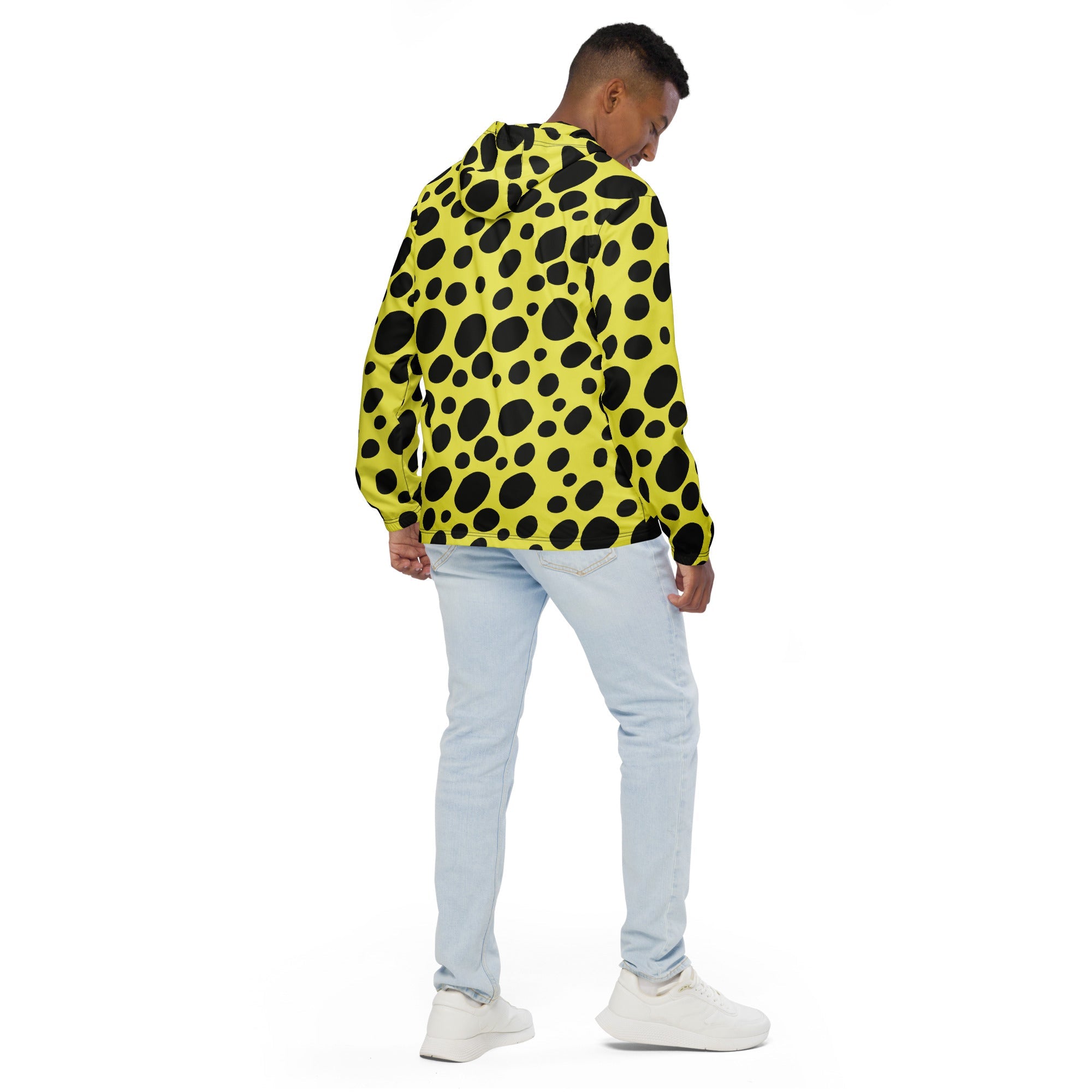 Stay stylish and protected from the elements with this Men's Yellow Windbreaker. The black grunge spots add a touch of edginess to the design. Made for superior wind and water resistance, this windbreaker will keep you comfortable and dry in any weather. Perfect for the modern man on the go.