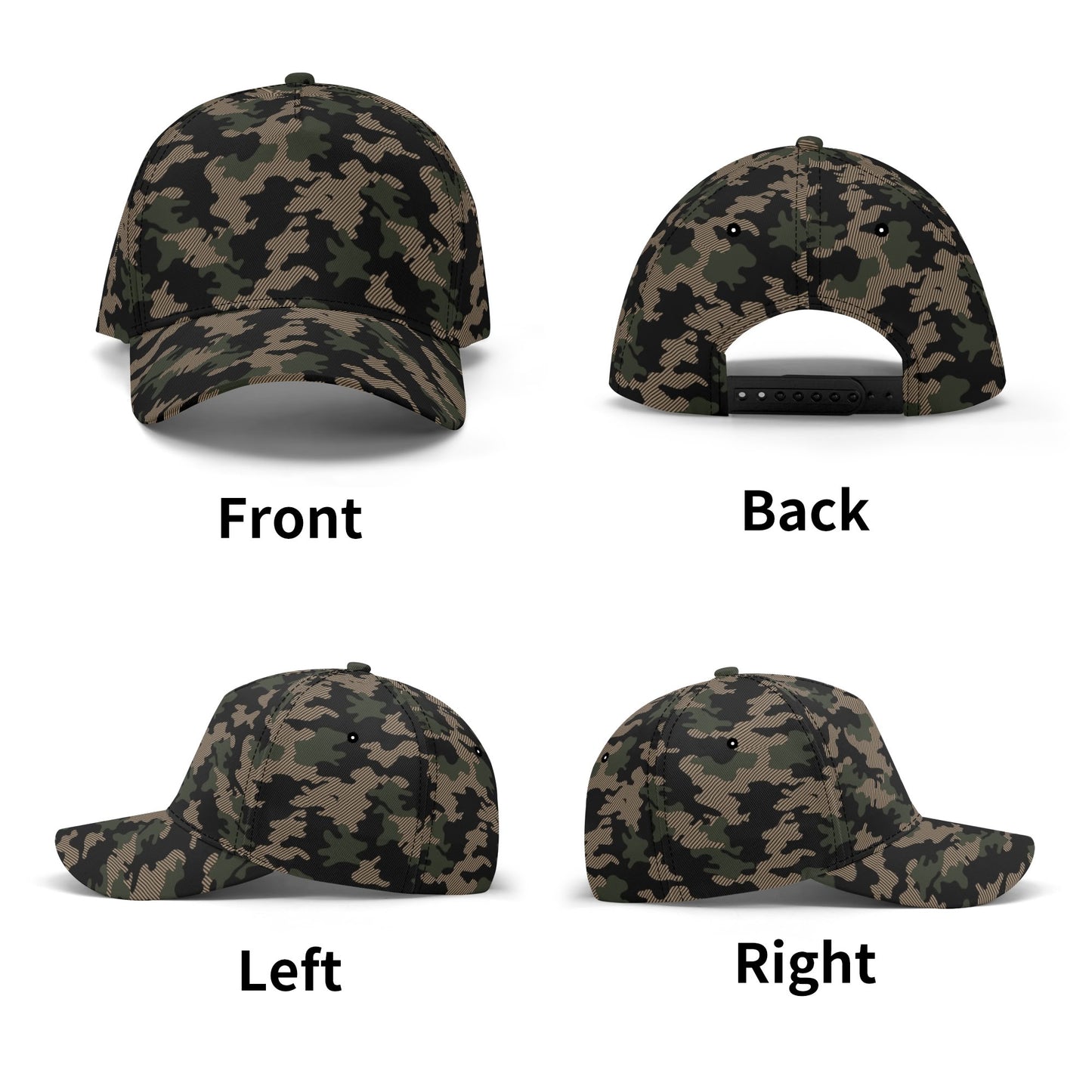 Stay cool and stylish with our Military Green Baseball Cap in Dark Jungle & Black Camouflage. Made with durable materials, this cap is perfect for any outdoor adventure. Its unique camouflage design adds a touch of tactical style to your look. Stay protected and blend in with nature while wearing this high-quality cap.